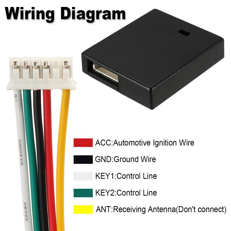 The receiver has corresponding bit line marking ACC stickers for automotive ignition wire, GND wire, KEY1 and KEY2 side control line, I will connect the corresponding line, if only one host navigation control line of part, please receive the box with green and white line at the same time and receive navigation, For yellow receiving antenna. Please install after straightened as close to the steering wheel as possible, away from the location of the navigation host without fixed wiring.
