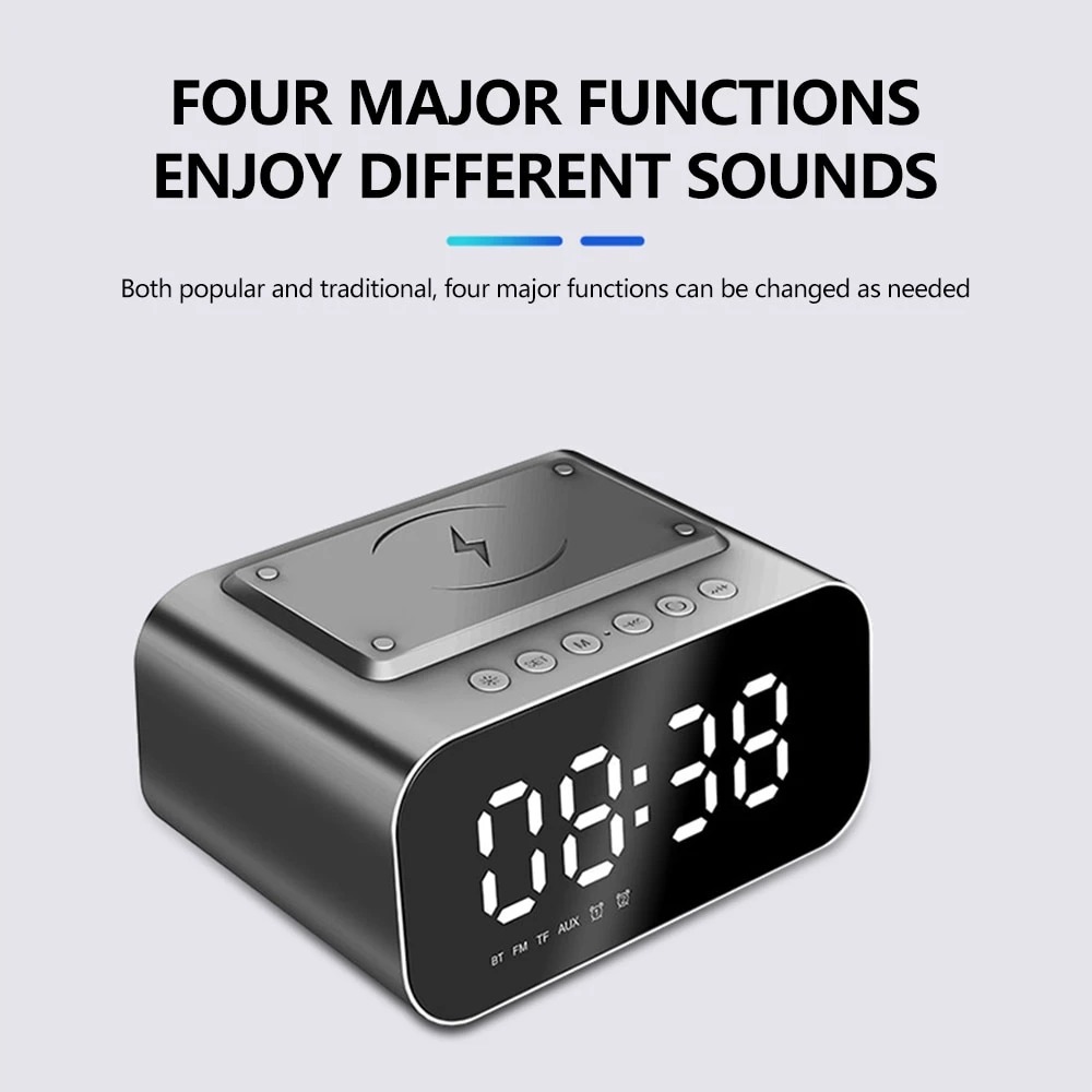 Light weight and portable, this digital clock has versatile functions such as it can display time, supports wireless charging your mobile phone, playing music, listen to the broadcast, and more. Its compact and simple style makes it match well with any decorative style house.