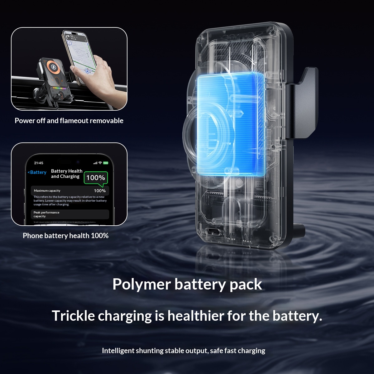 Additional features: 360-degree rotation, wireless charging, USB charging port, electric clamping