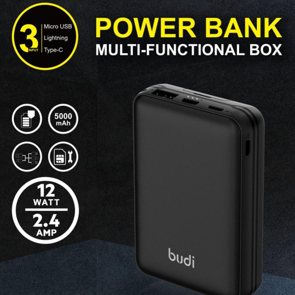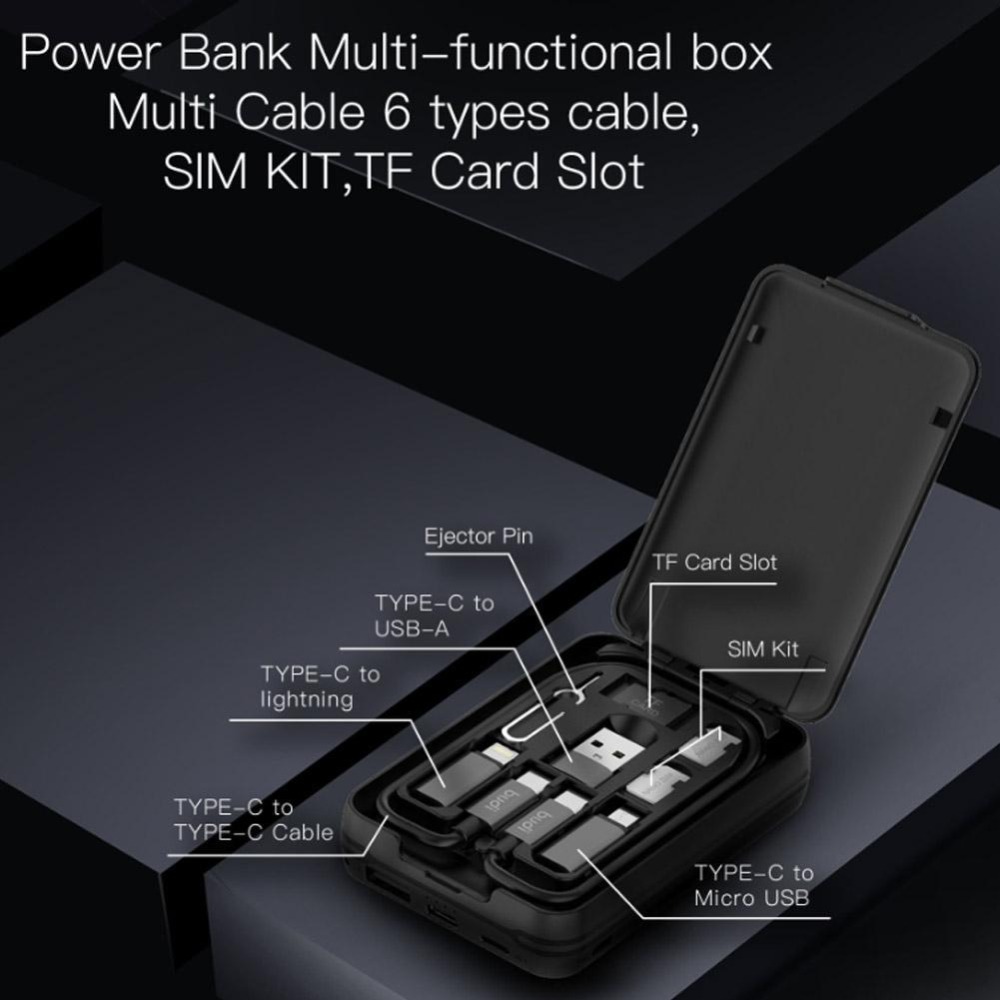 Multi-functional budi box Accumulators and spare battery charger (5000mhA Accumulators and spare battery charger, Multi cable with 6 types of cable, SIM KIT)