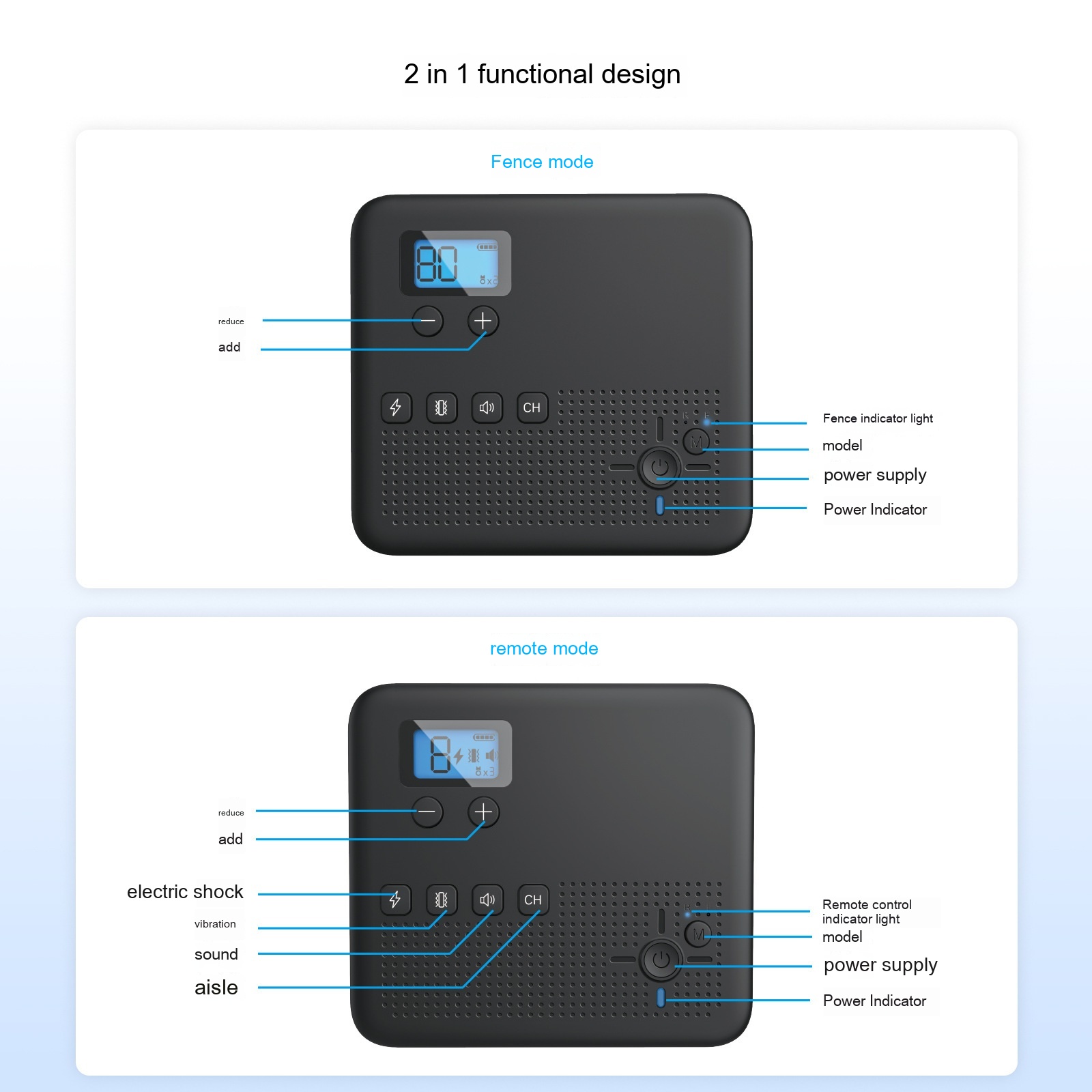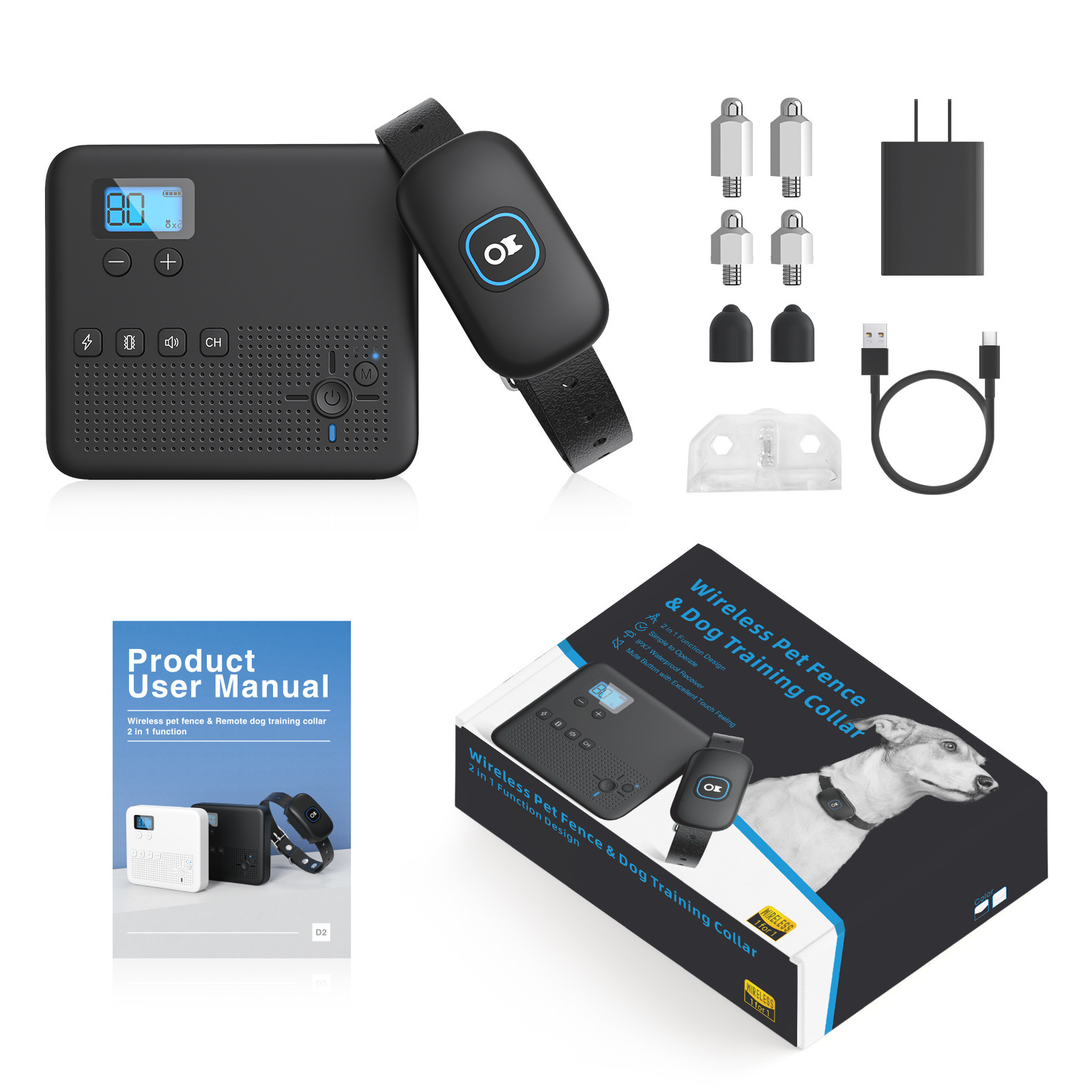 1. Remote pet wireless electronic fence+remote dog trainer, 2-in-1, one click switching, easy to operate.