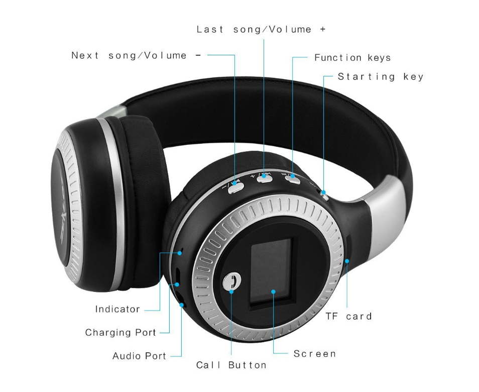 -CHARGING: when you finish using the power of headphone and charge the headphone for the first time, the indicator will light long and the red indicator will go out after fully charged.