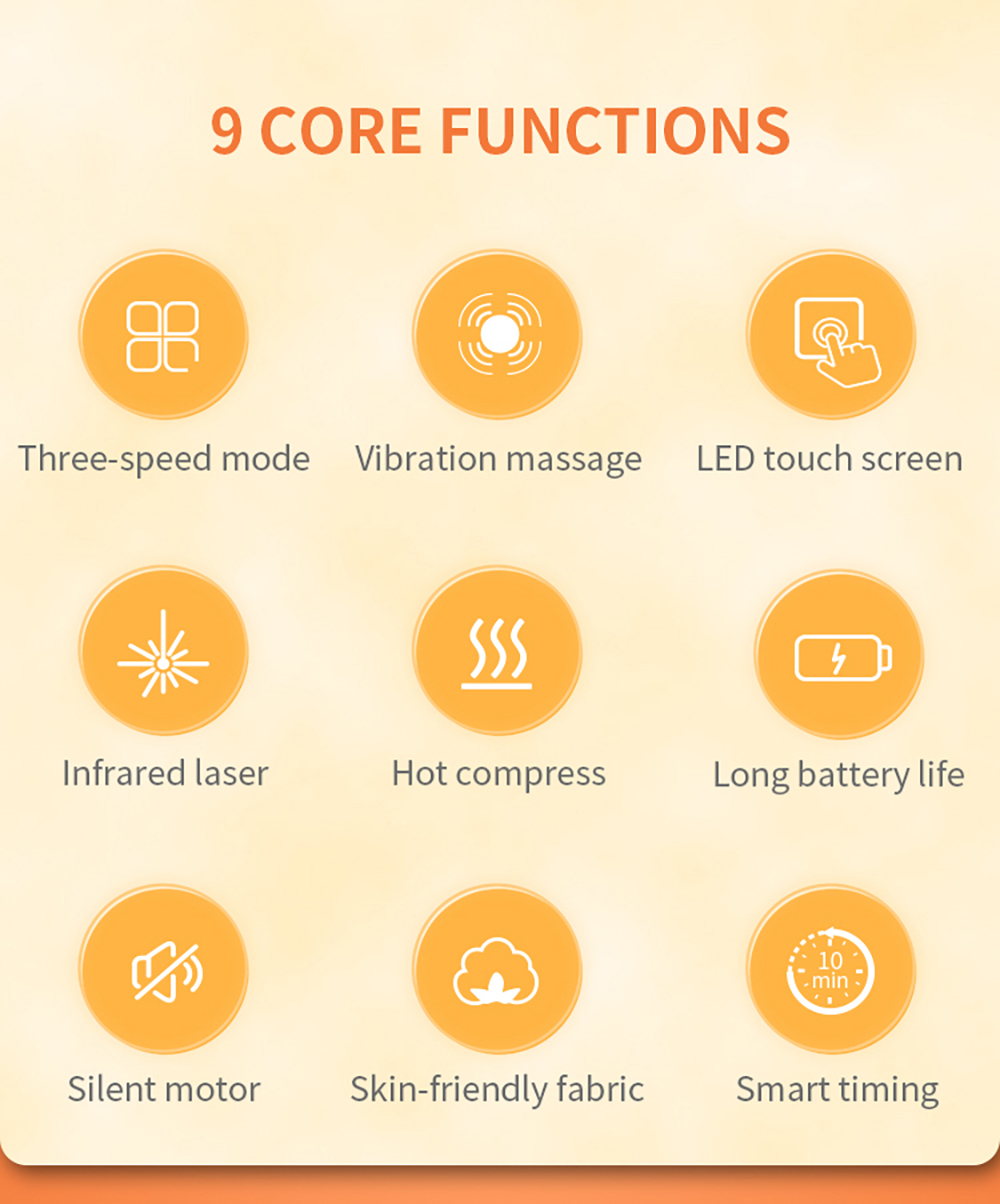 Product function: intelligent massage, red light, hot compress, air pressure massage