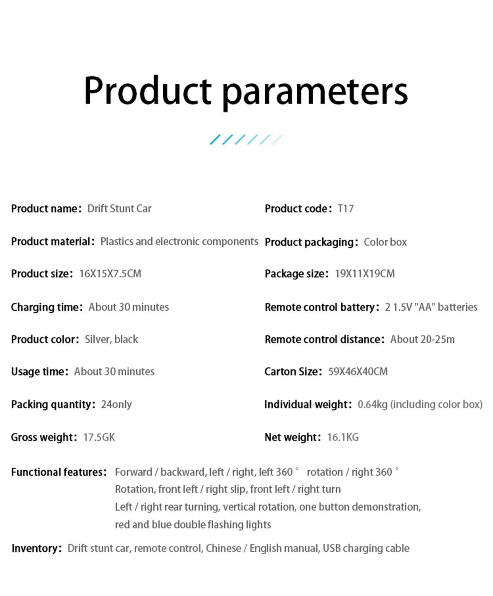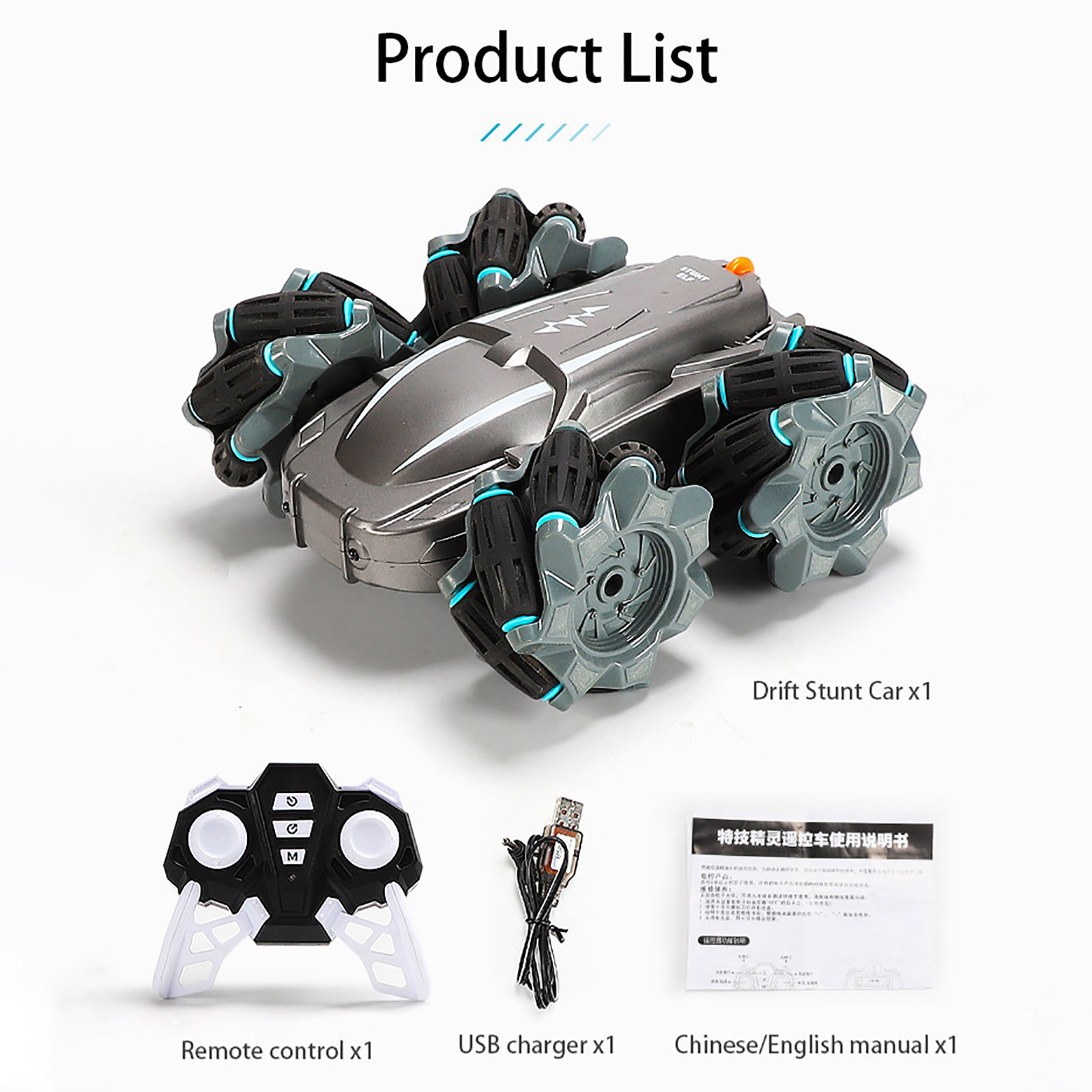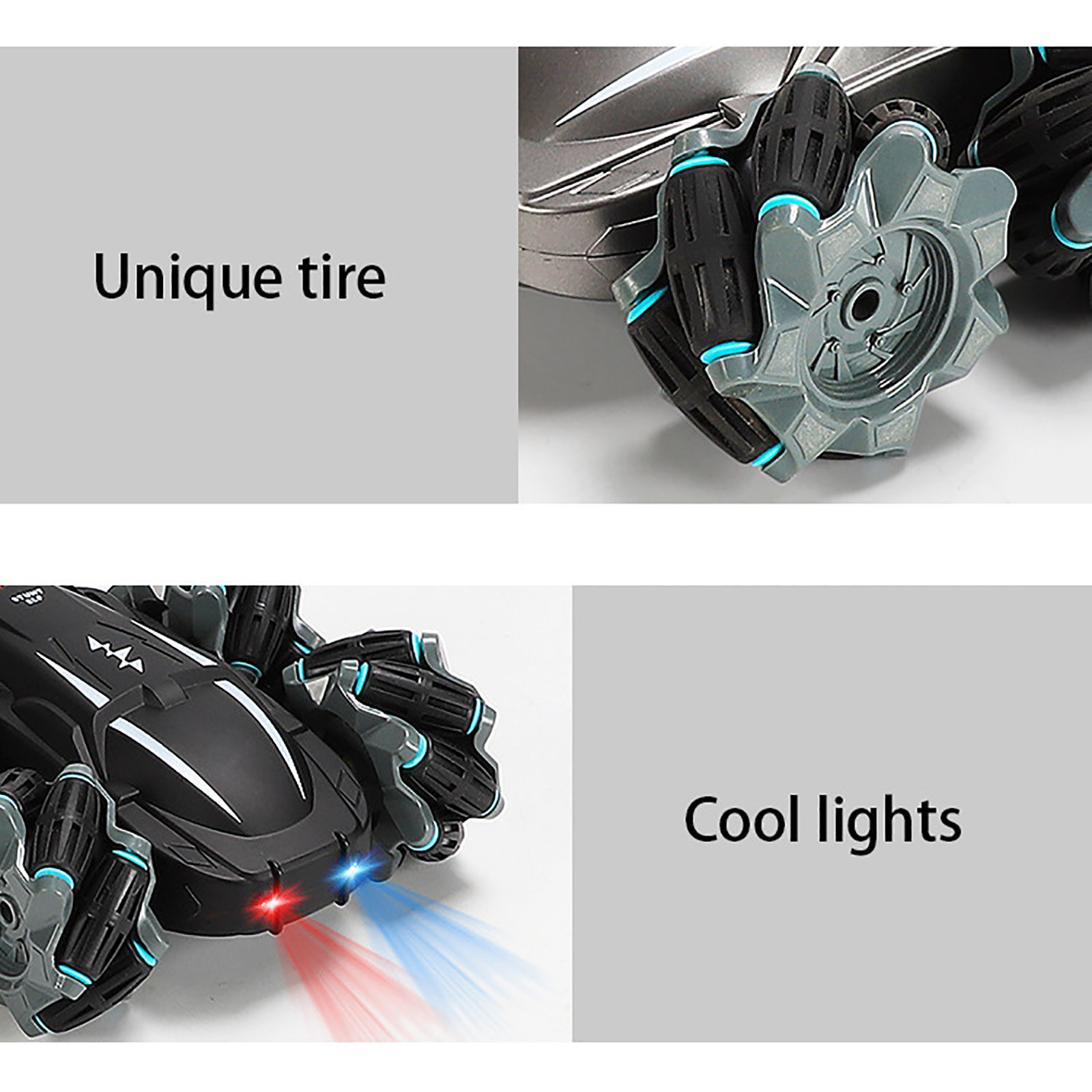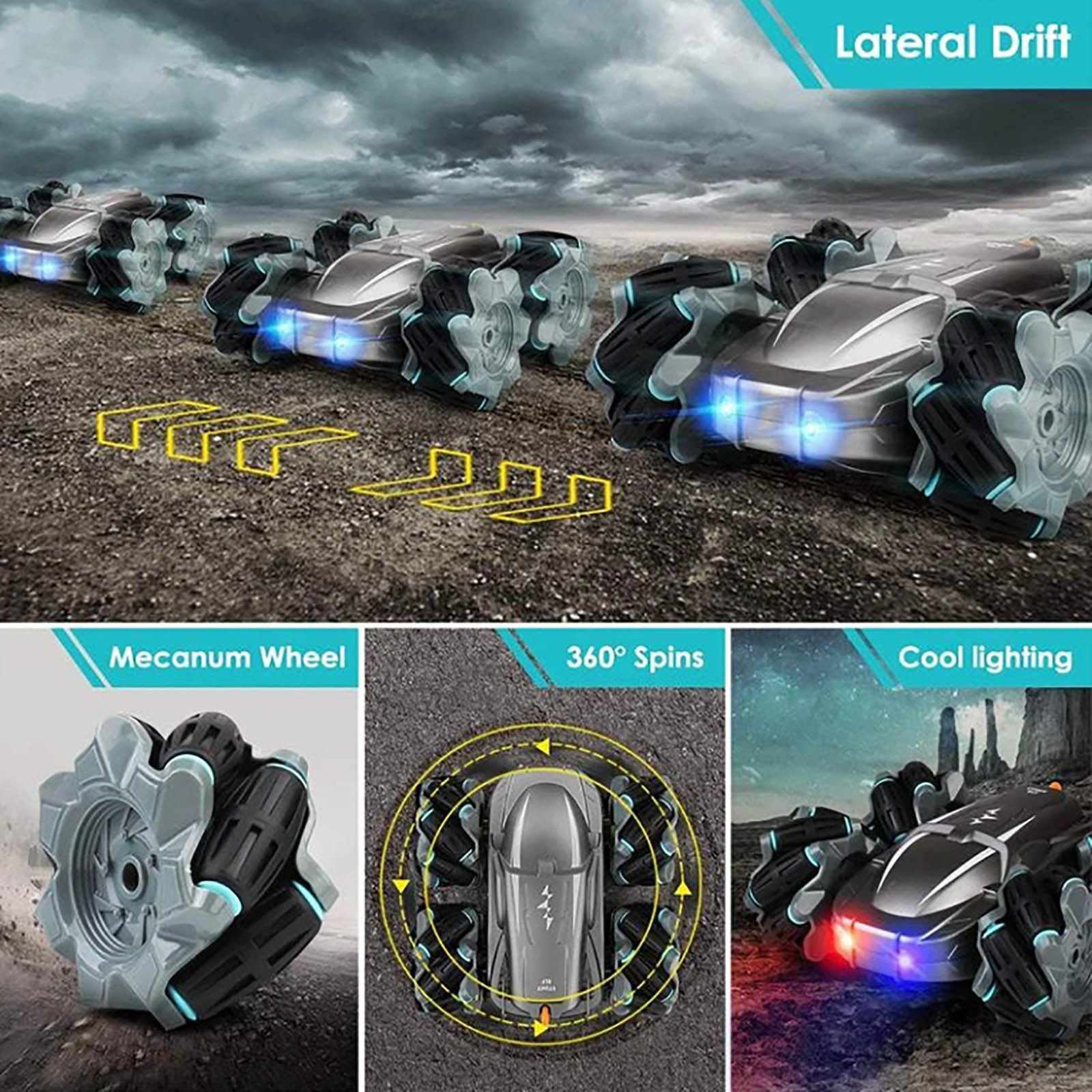 1. Best Gift for Kids: This is a great multi-function stunt RC car.It can rotate 360° clockwise/counterclockwise and drift 45° in the left front/right front, It can also drift horizontally left/right and move forward/backward. For children over 6 years old, this must be a very Amazing and Great gift.