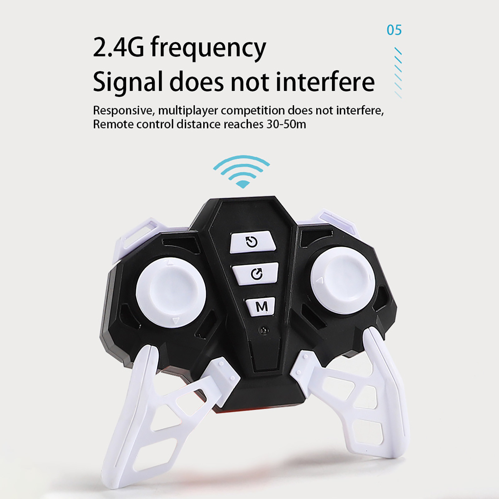 4. Excellent Anti-interference: With a fully functional 2.4Ghz wireless remote control, you can easily control this stunt car within fifty meters.Because of its anti-interference, it can achieve multi-player simultaneous running without remote confusion.