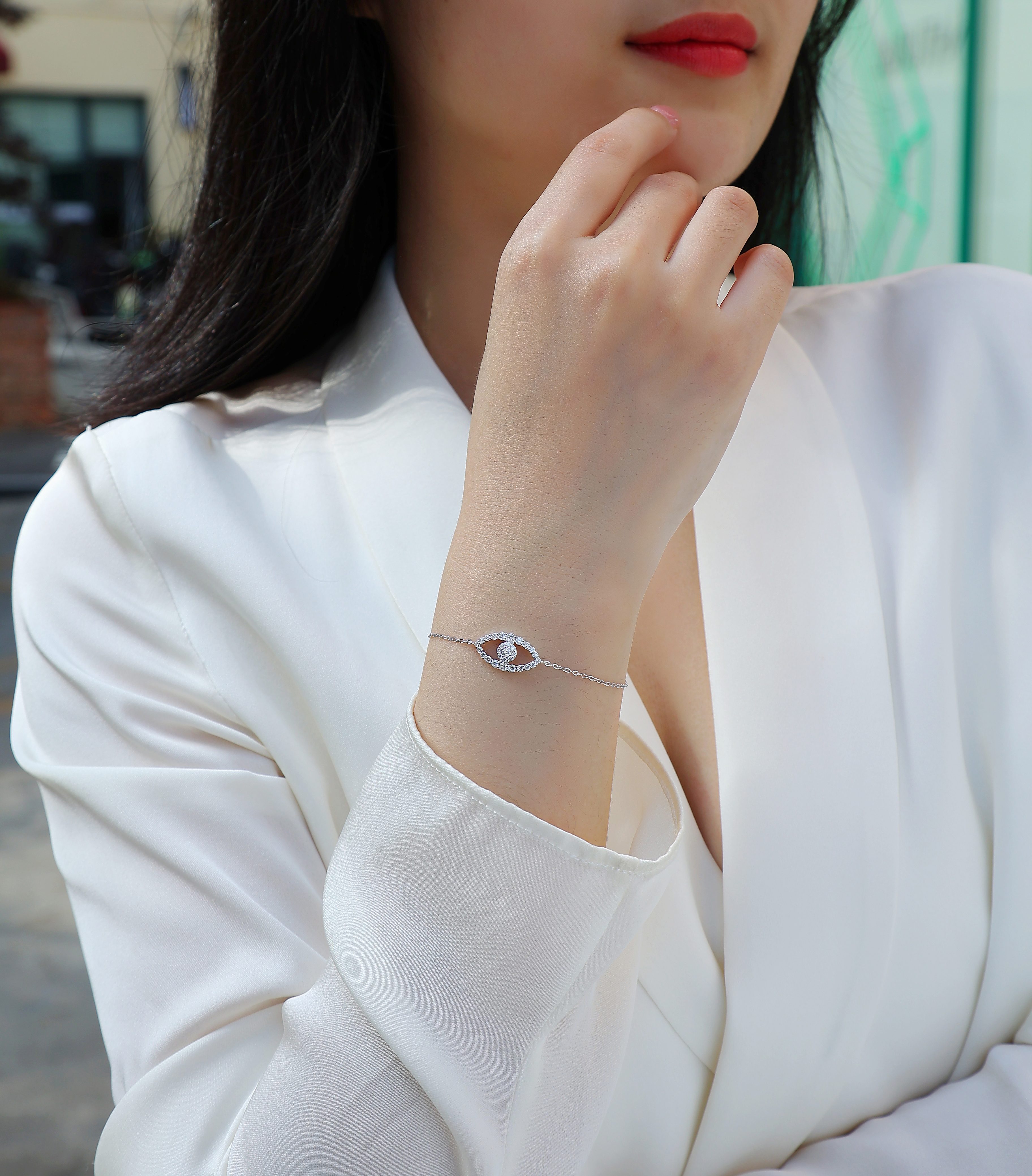 Wish Fairy - A Fashionable And Light Luxury Jewelry Silver Bracelet And Bracelet Set With Top-quality Moissanite, S925 Silver Electroplated Platinum
