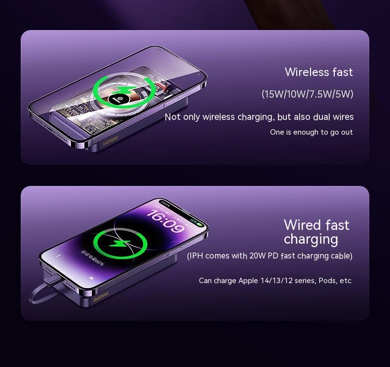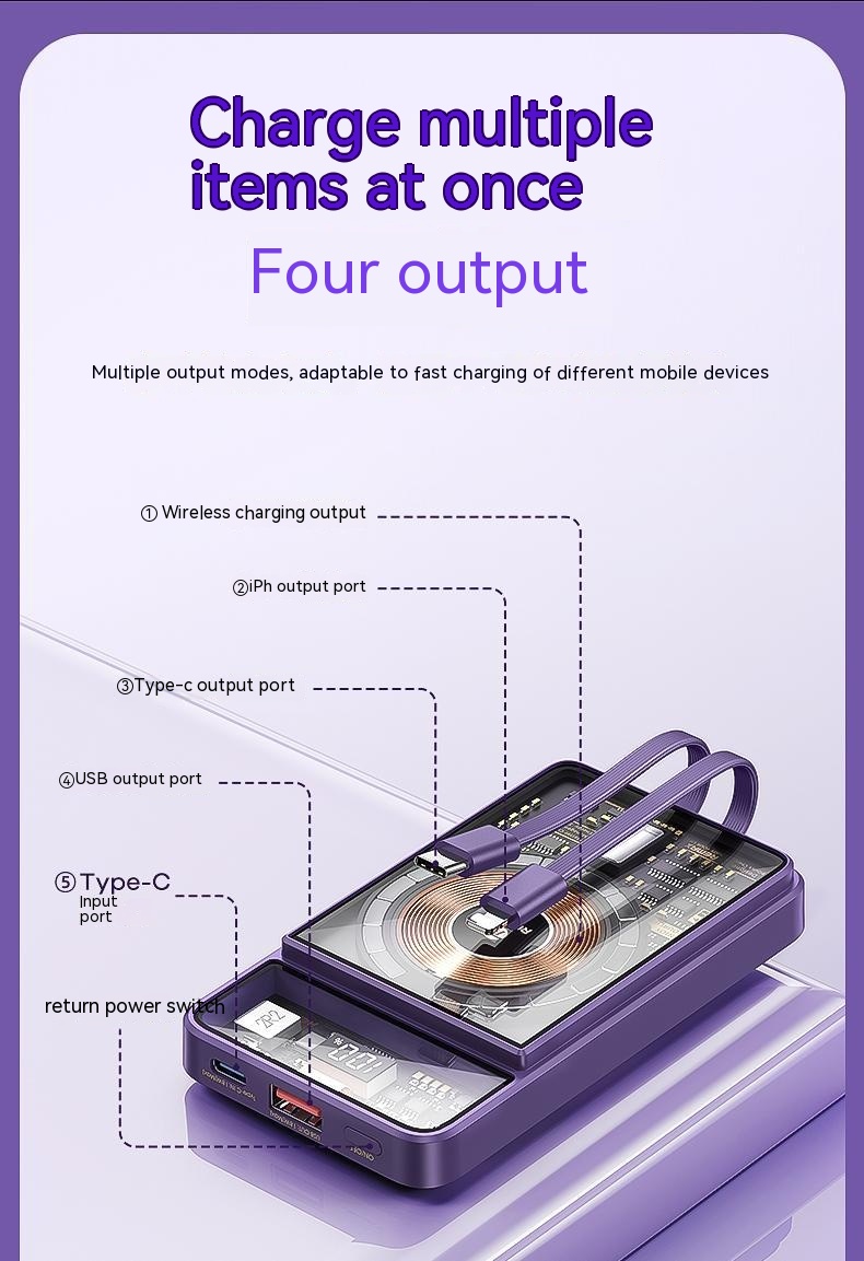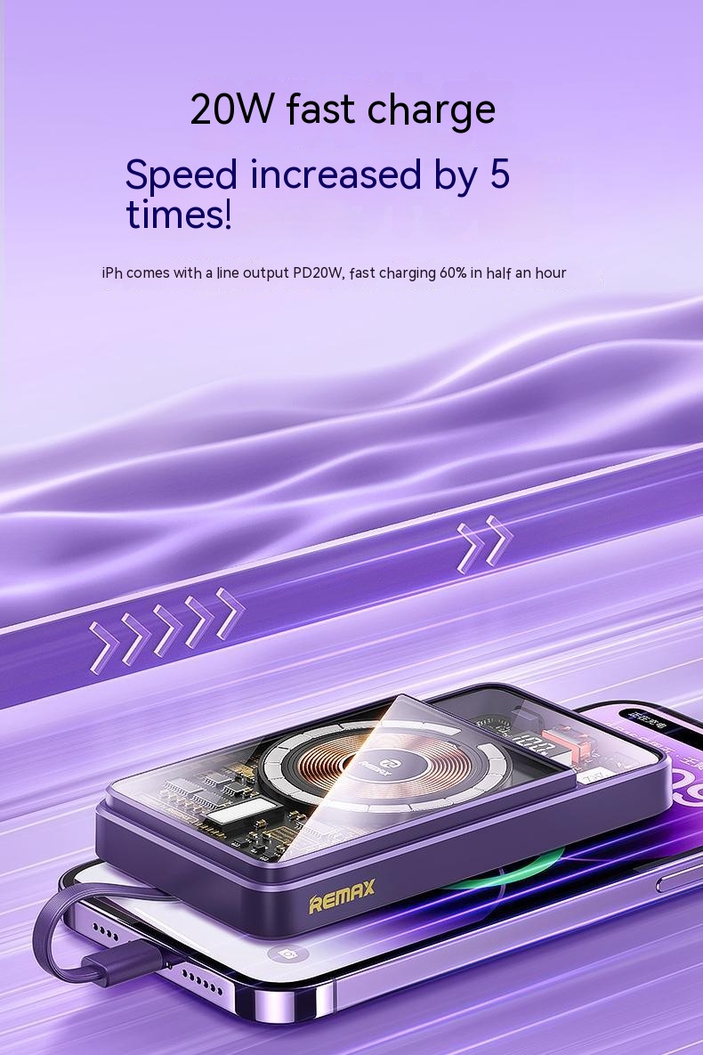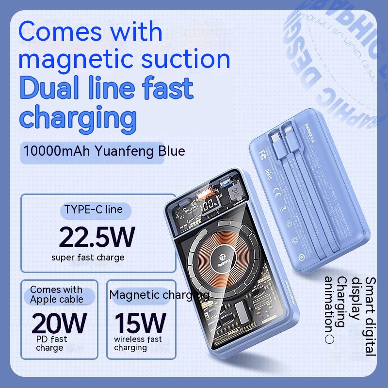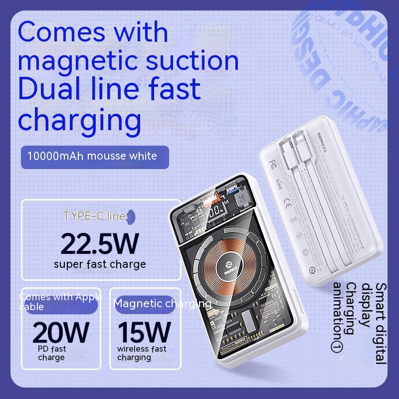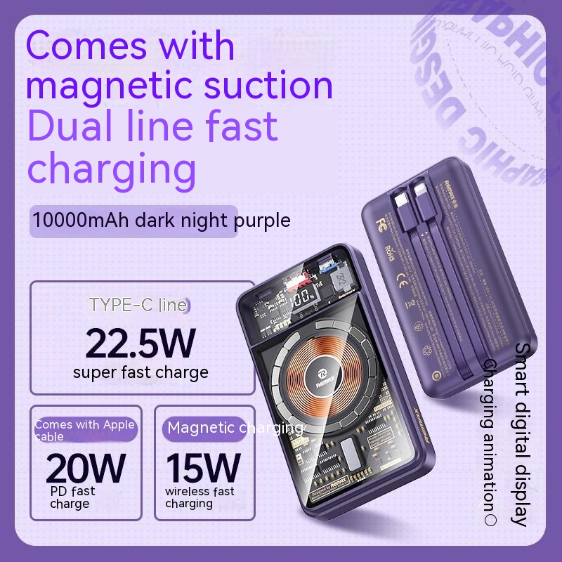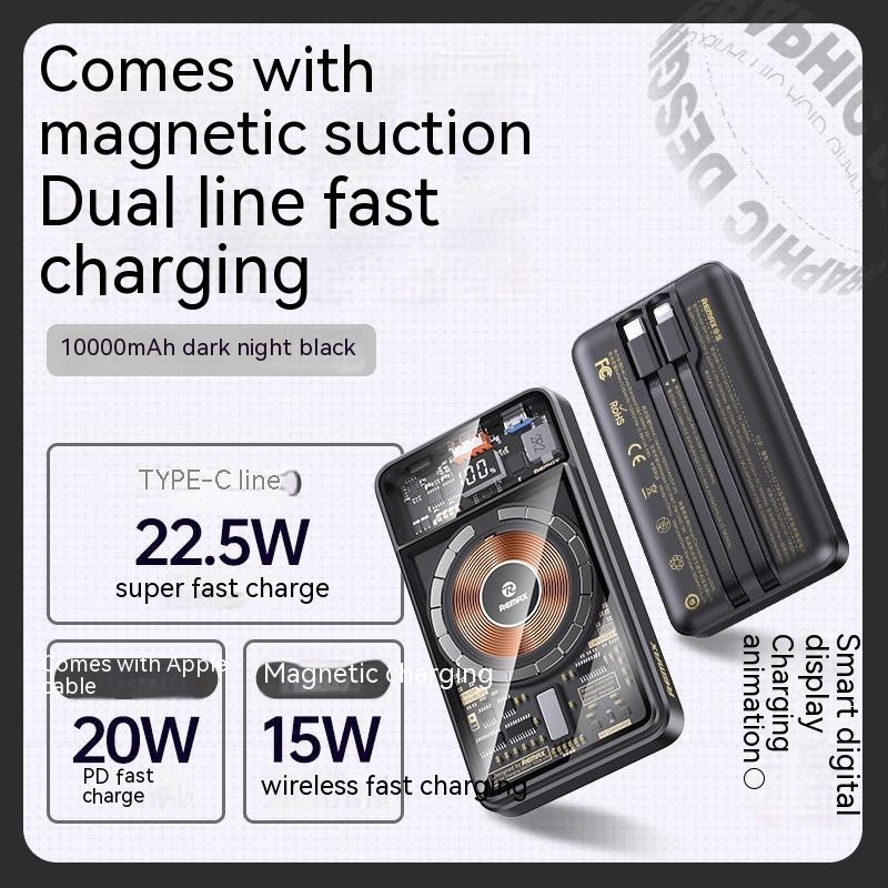 With Cable Magnetic Suction Wireless Charger Large Capacity Portable Power
