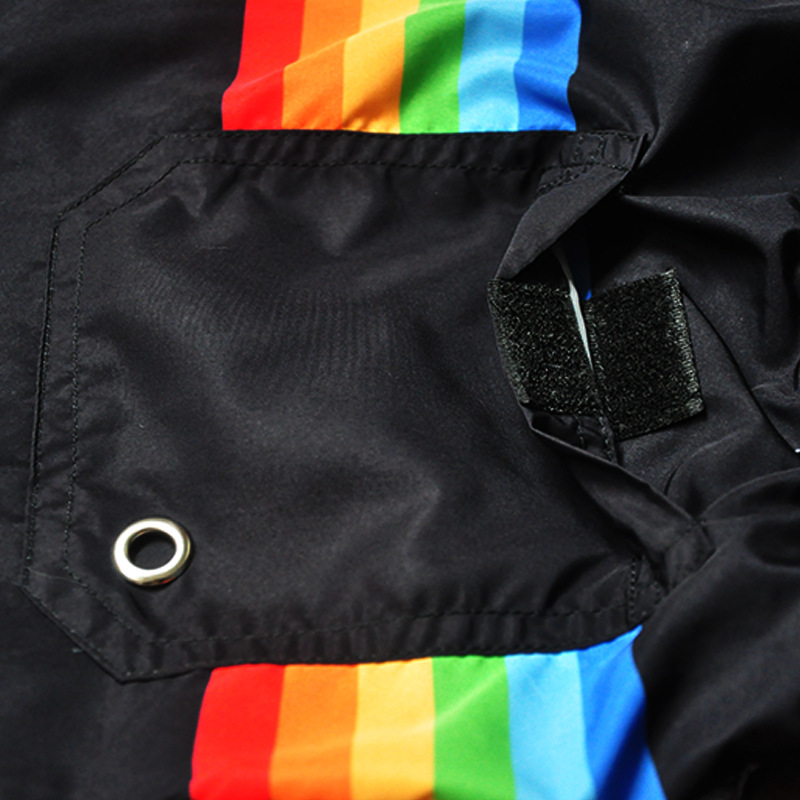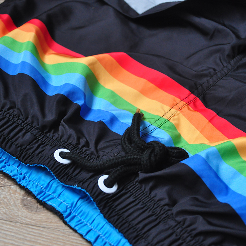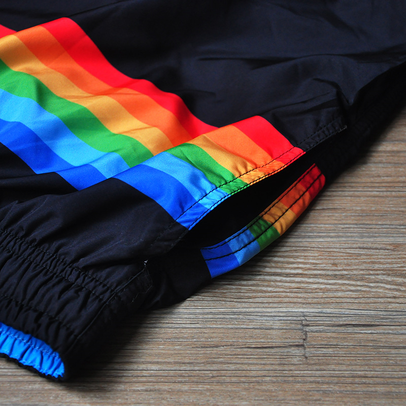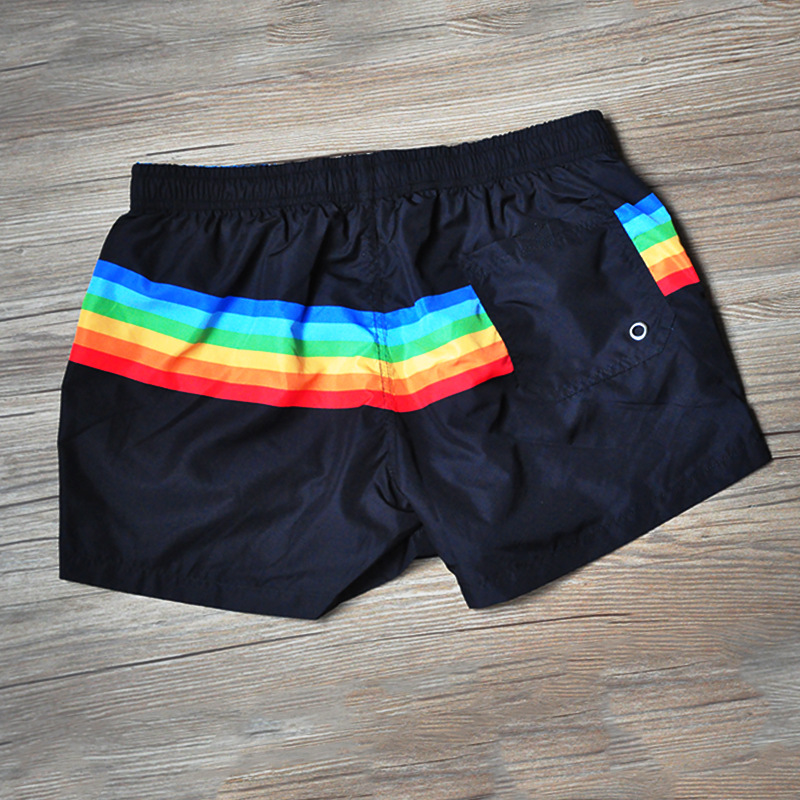 Name: Men's rainbow striped beach shorts, mesh lining black shorts