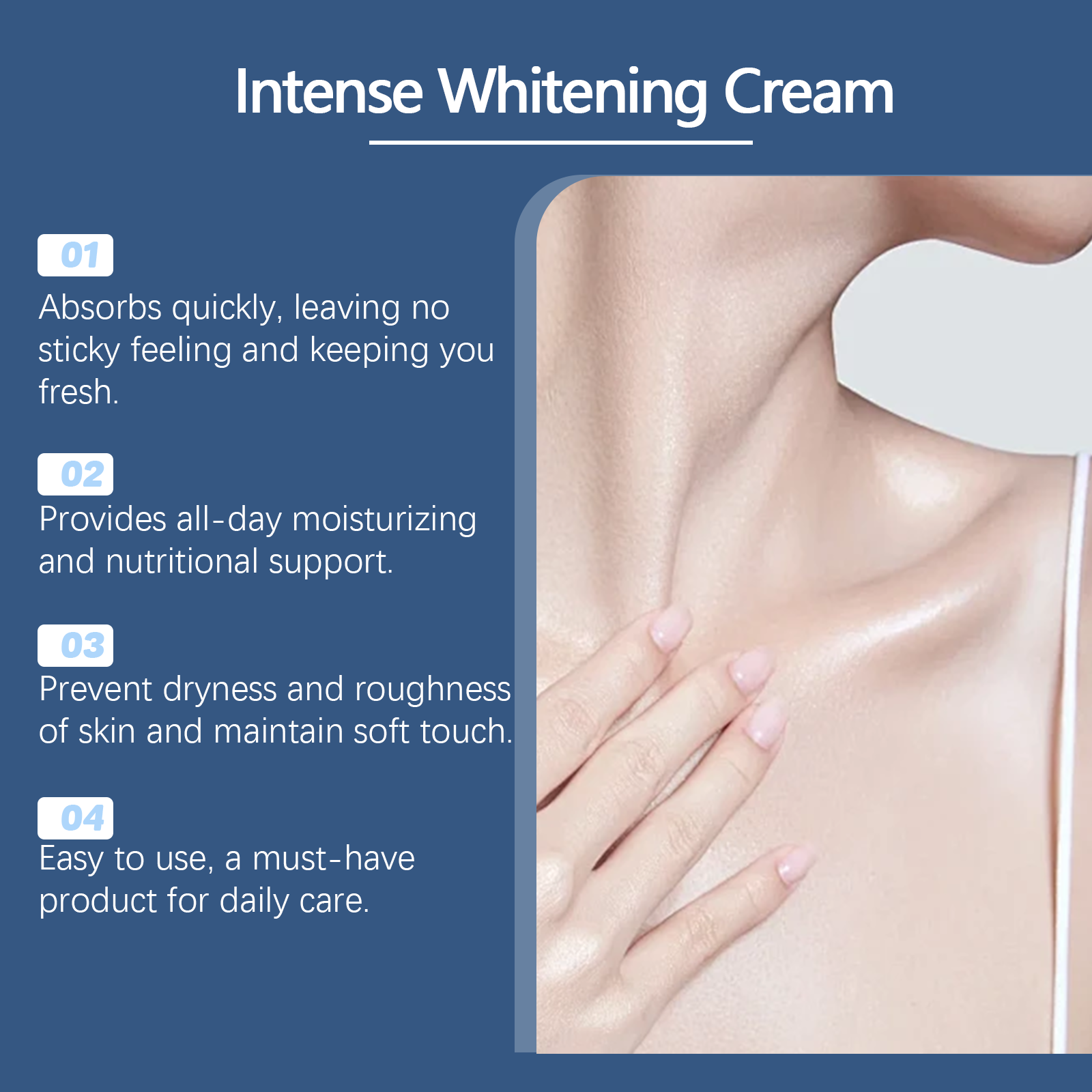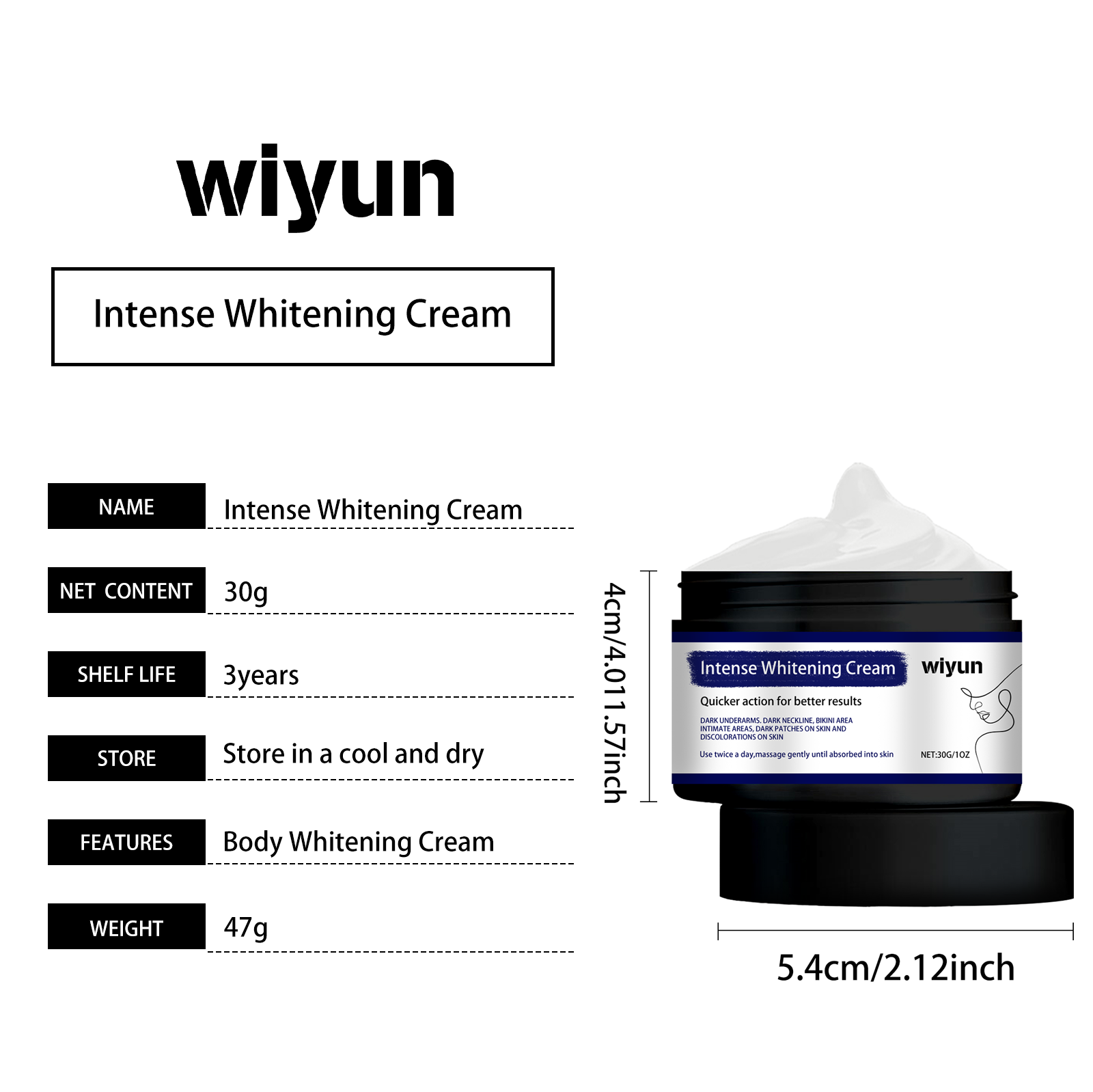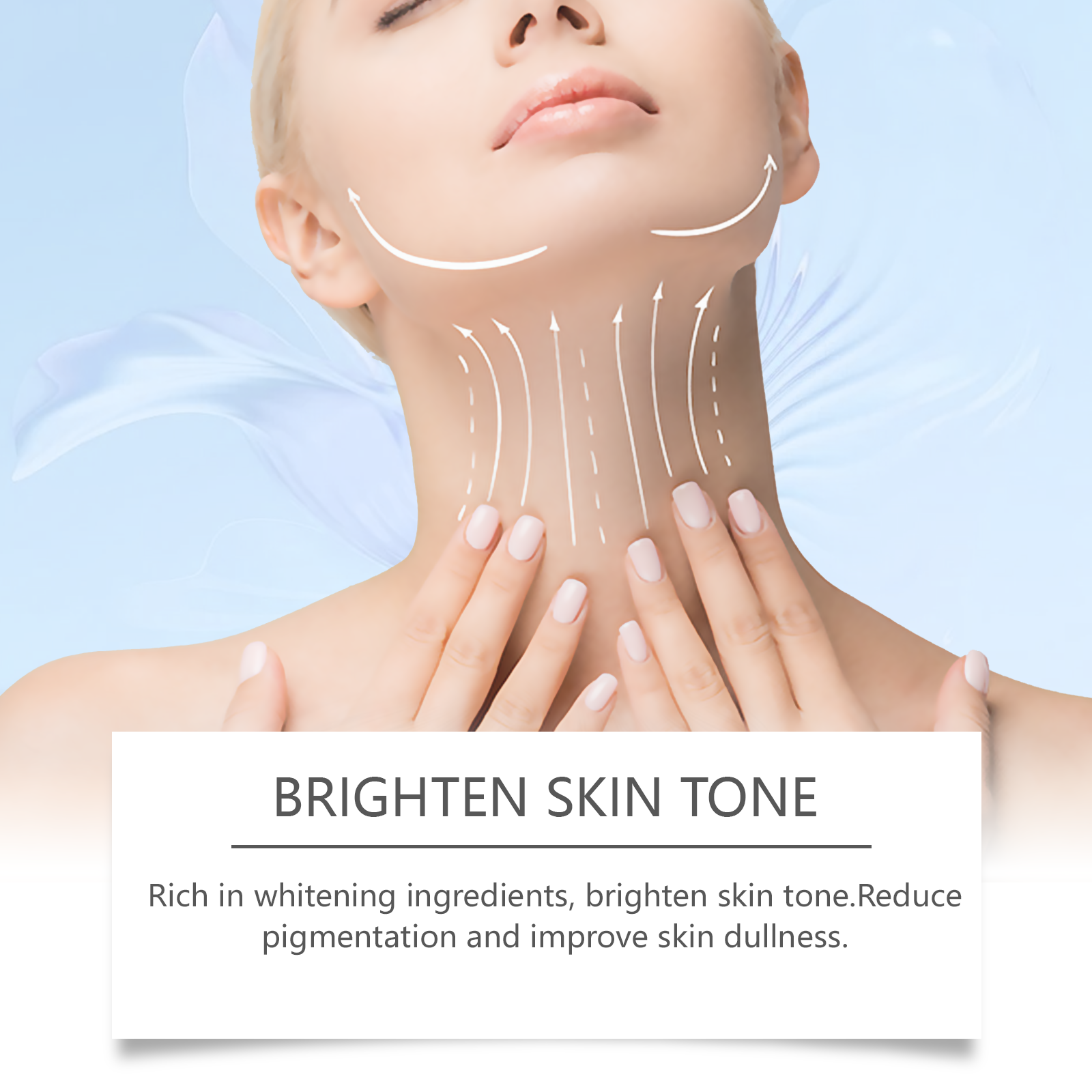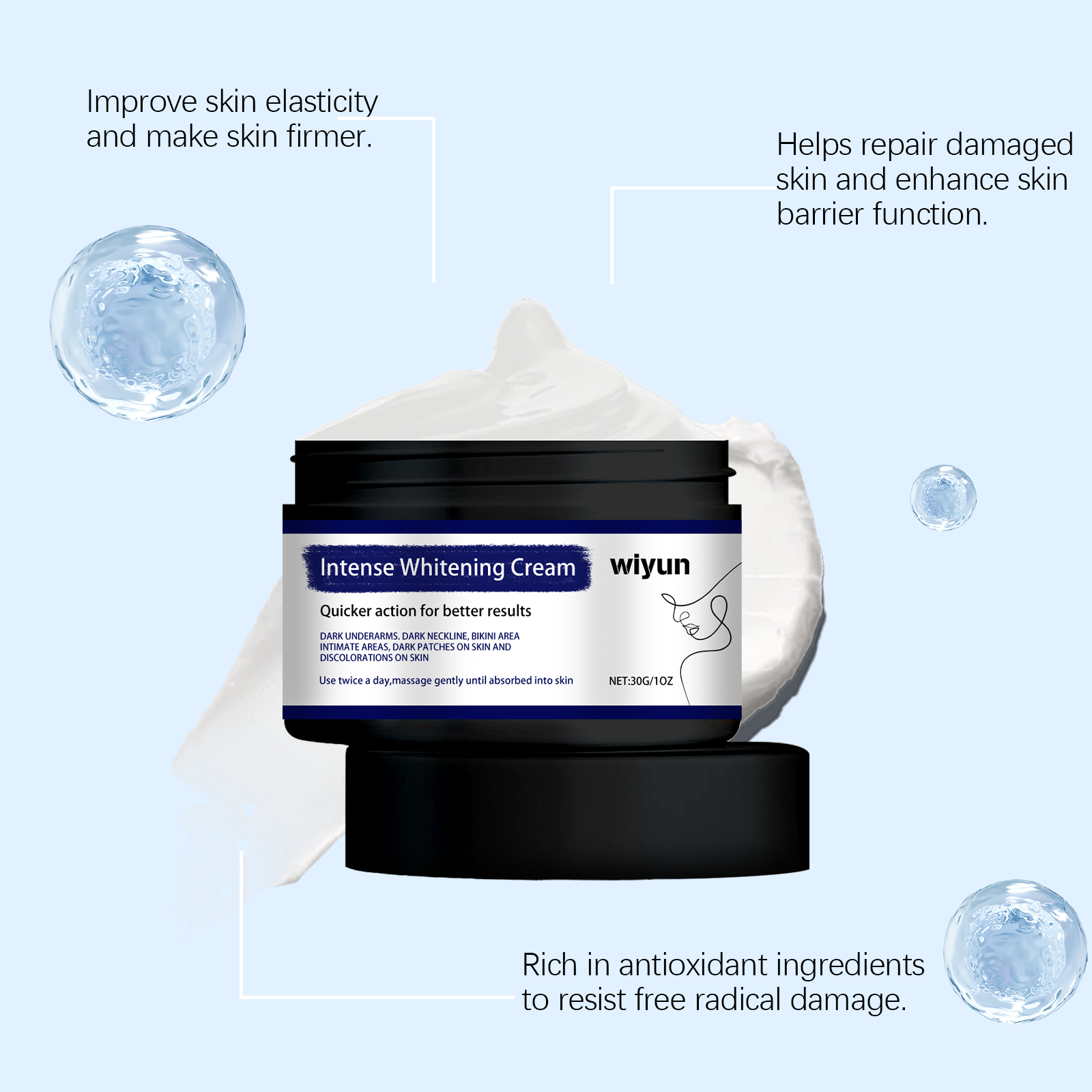Our body brightening cream contains licorice root extract, arbutin, and hyaluronic acid. It can effectively remove dark spots, even skin tone, whiten skin; Deeply moisturize the skin and provide lasting moisture. Its application method is simple: 1. Thoroughly clean and dry the skin; 2. Apply appropriate amount to neck, armpit and private area evenly. 3. Massage gently to promote full absorption. Rich in whitening ingredients, brightening skin. Reduces pigmentation and improves skin dullness.