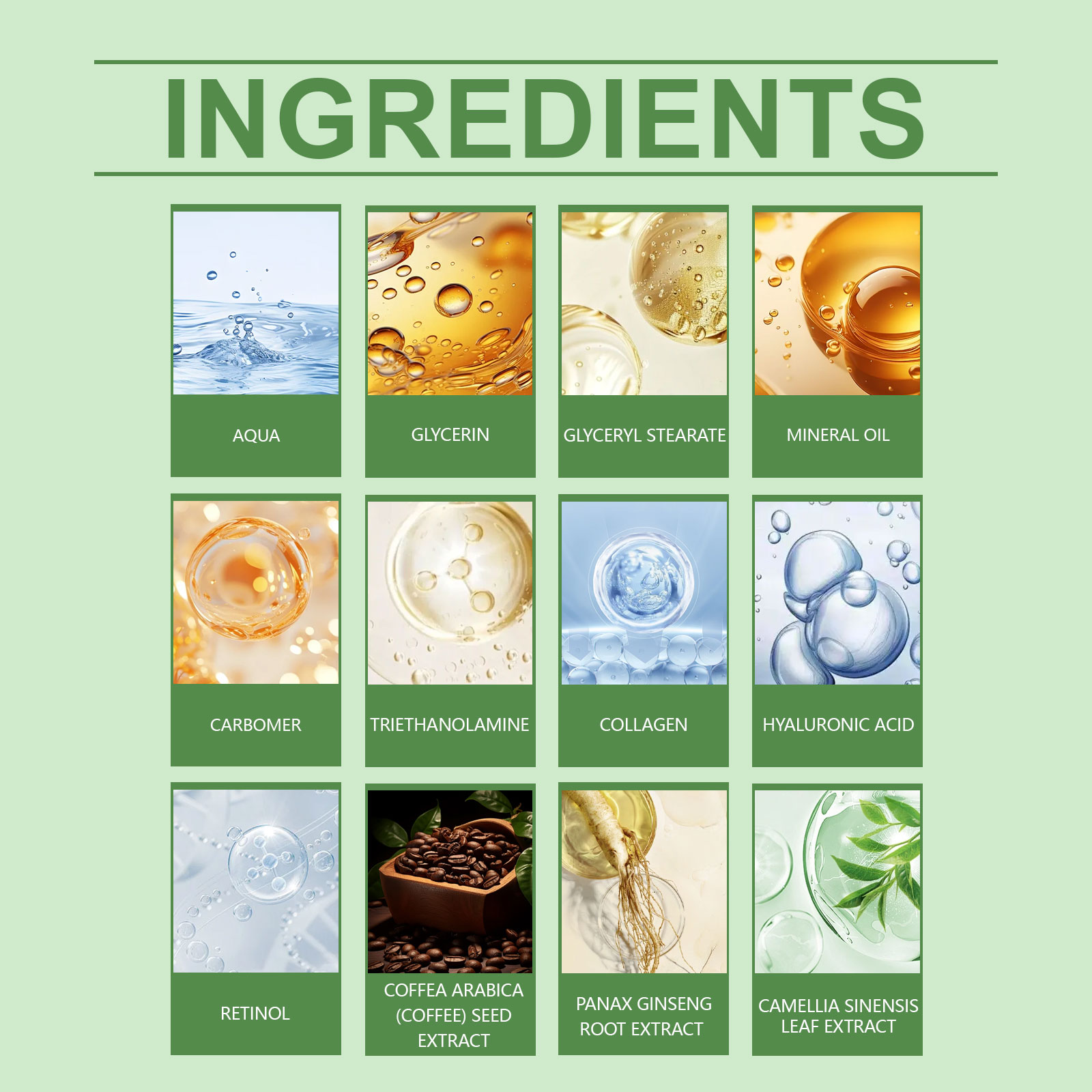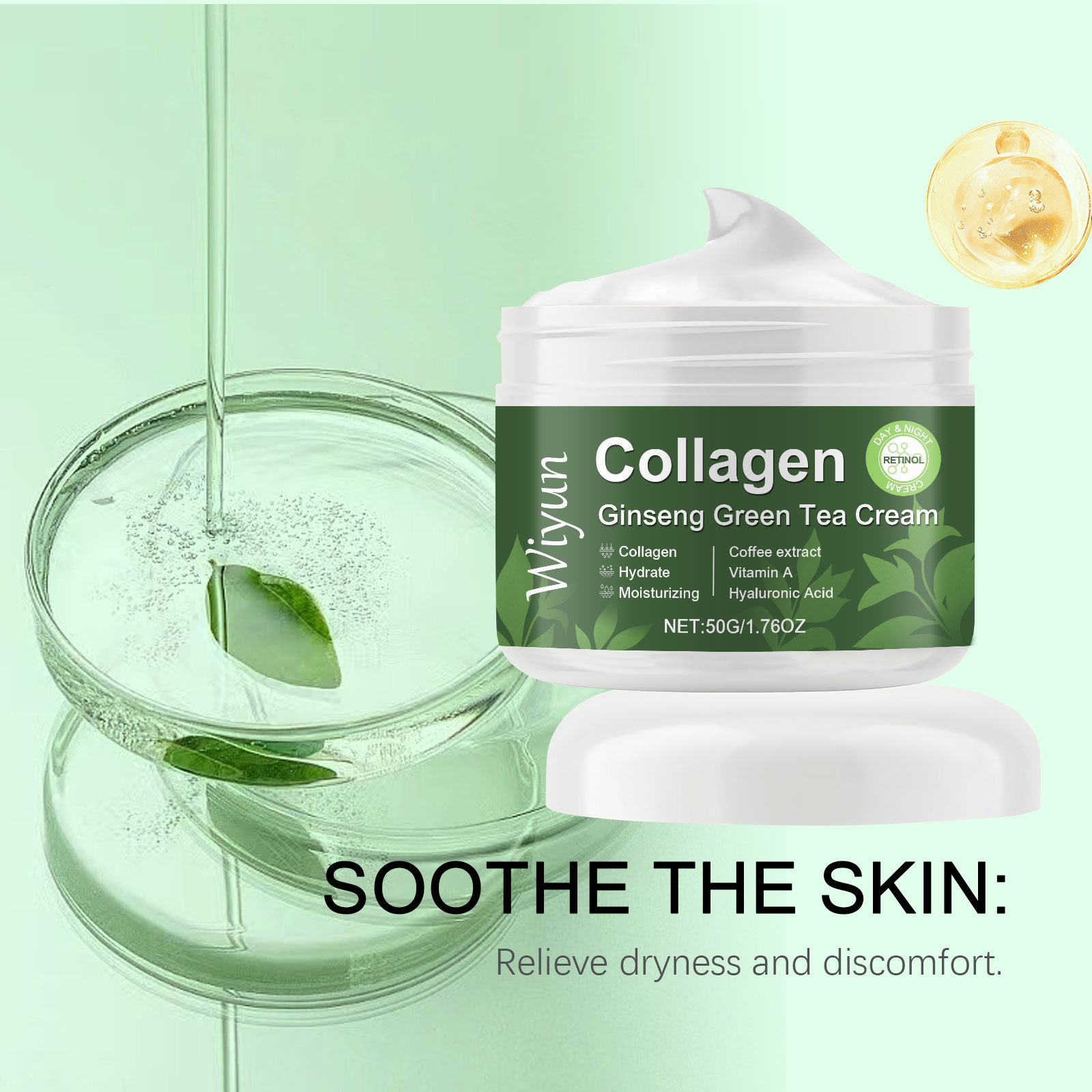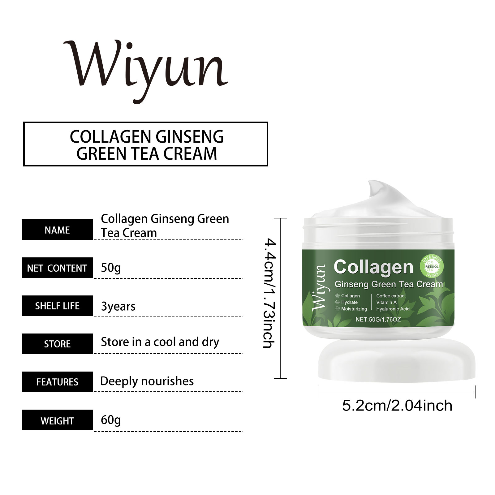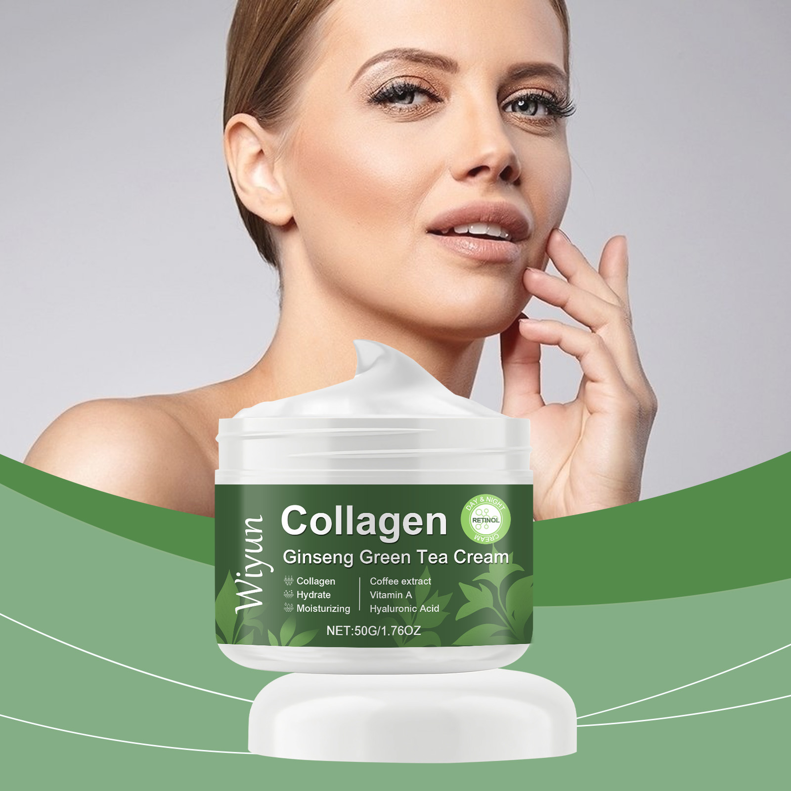 Our collagen ginseng green tea moisturizer is carefully blended with glycerin, glycerin stearate and mineral oil. Designed to help skin firm and smooth. Easy to use: Thoroughly clean and dry your skin. Take appropriate amount of this product, evenly apply to facial skin, gently massage to promote better absorption. And can be easily applied and evenly covered to improve the overall condition of the skin.