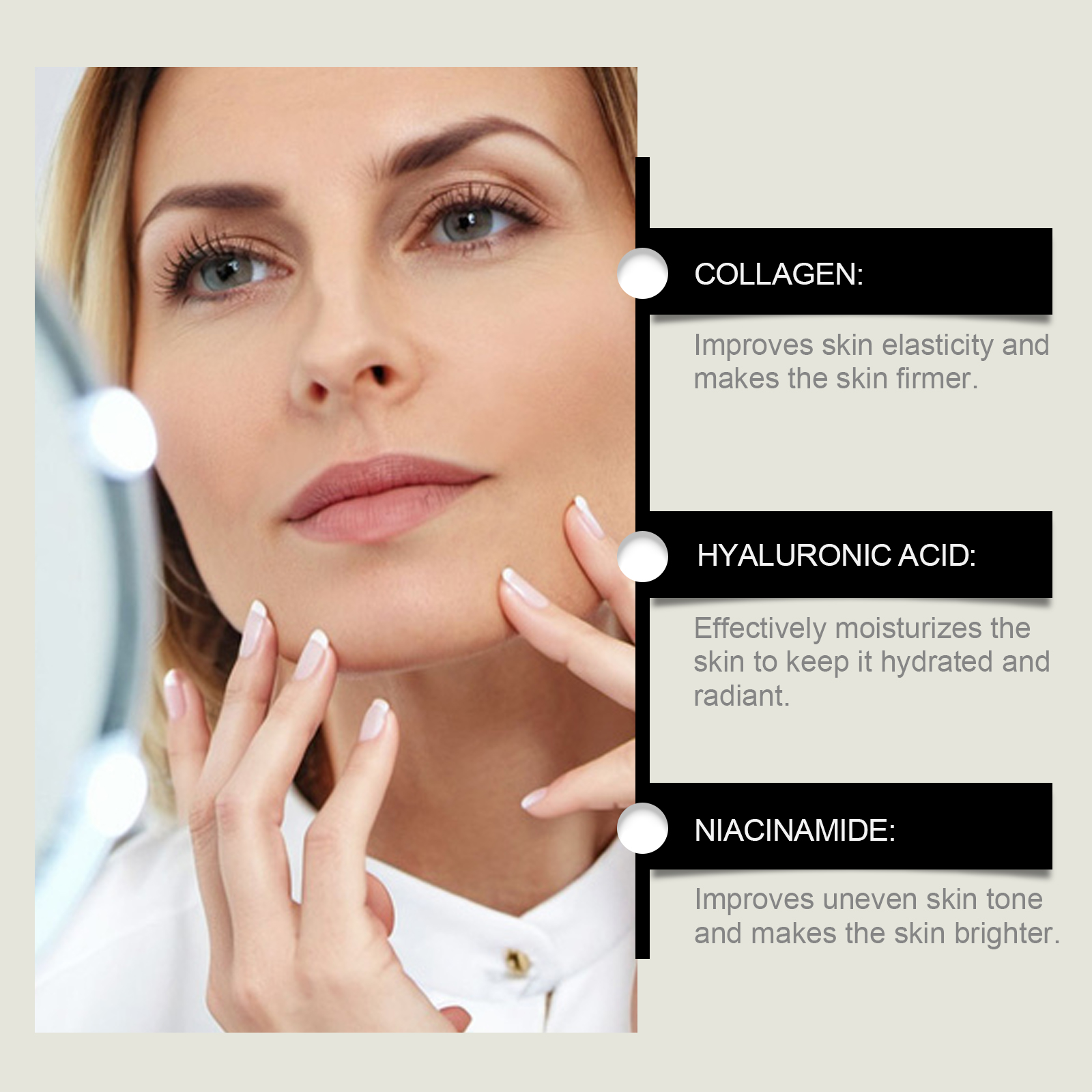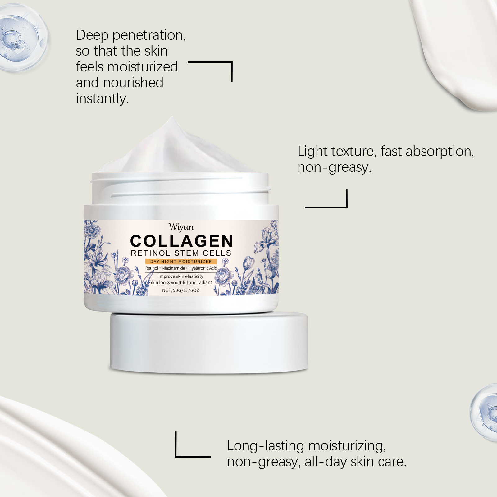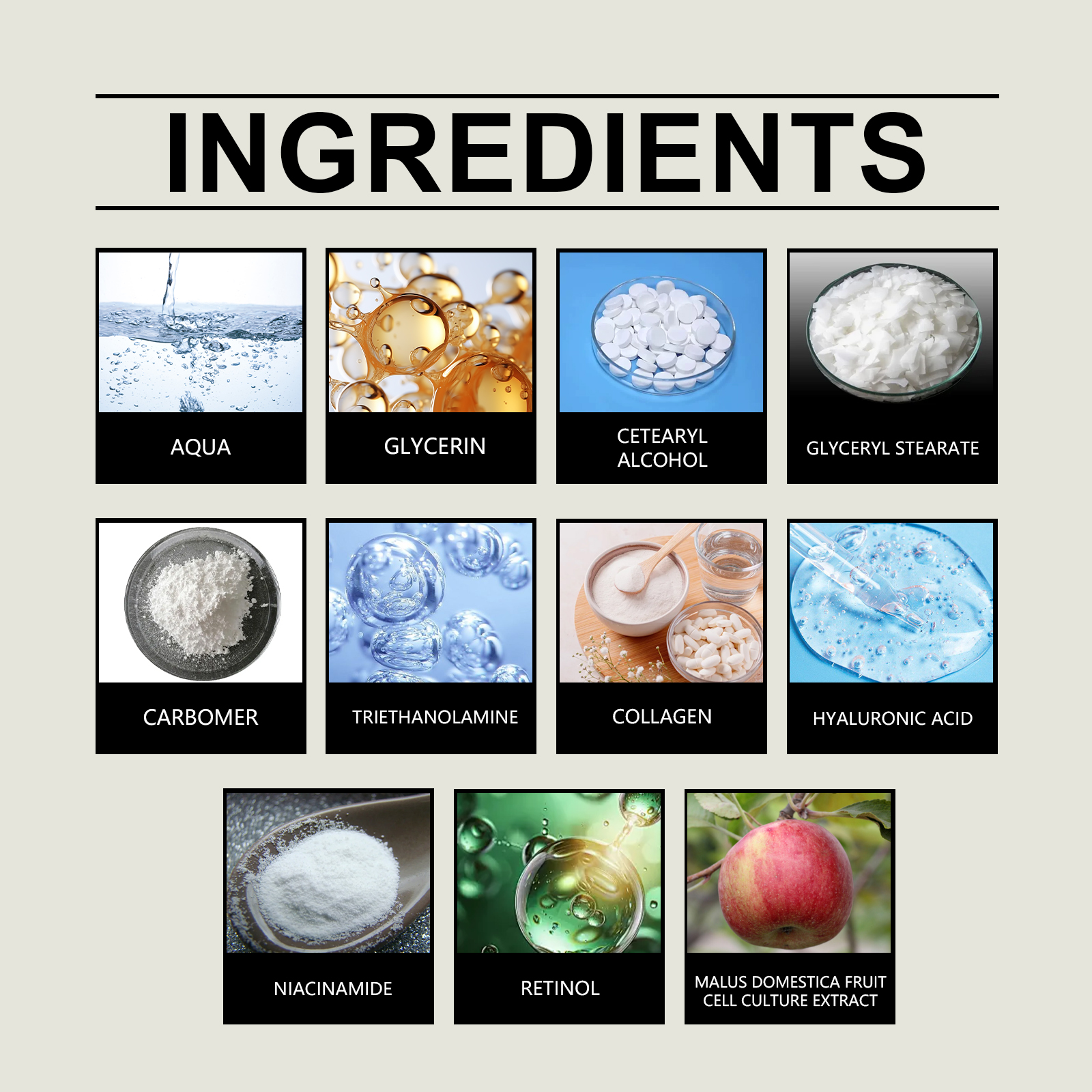 Our collagen moisturizing cream is carefully formulated with glycerin, cetyl alcohol and glycerin stearate. Specially designed to enhance skin luster and make the skin delicate and smooth. The usage method is extremely convenient: 1. Clean the skin and keep it dry. 2. Apply an appropriate amount of this product evenly to the face. 3. Gentle massage promotes absorption. And it can provide all-day moisturizing, keeping the skin hydrated at all times. Light and non-greasy, it keeps the skin fresh for a long time.