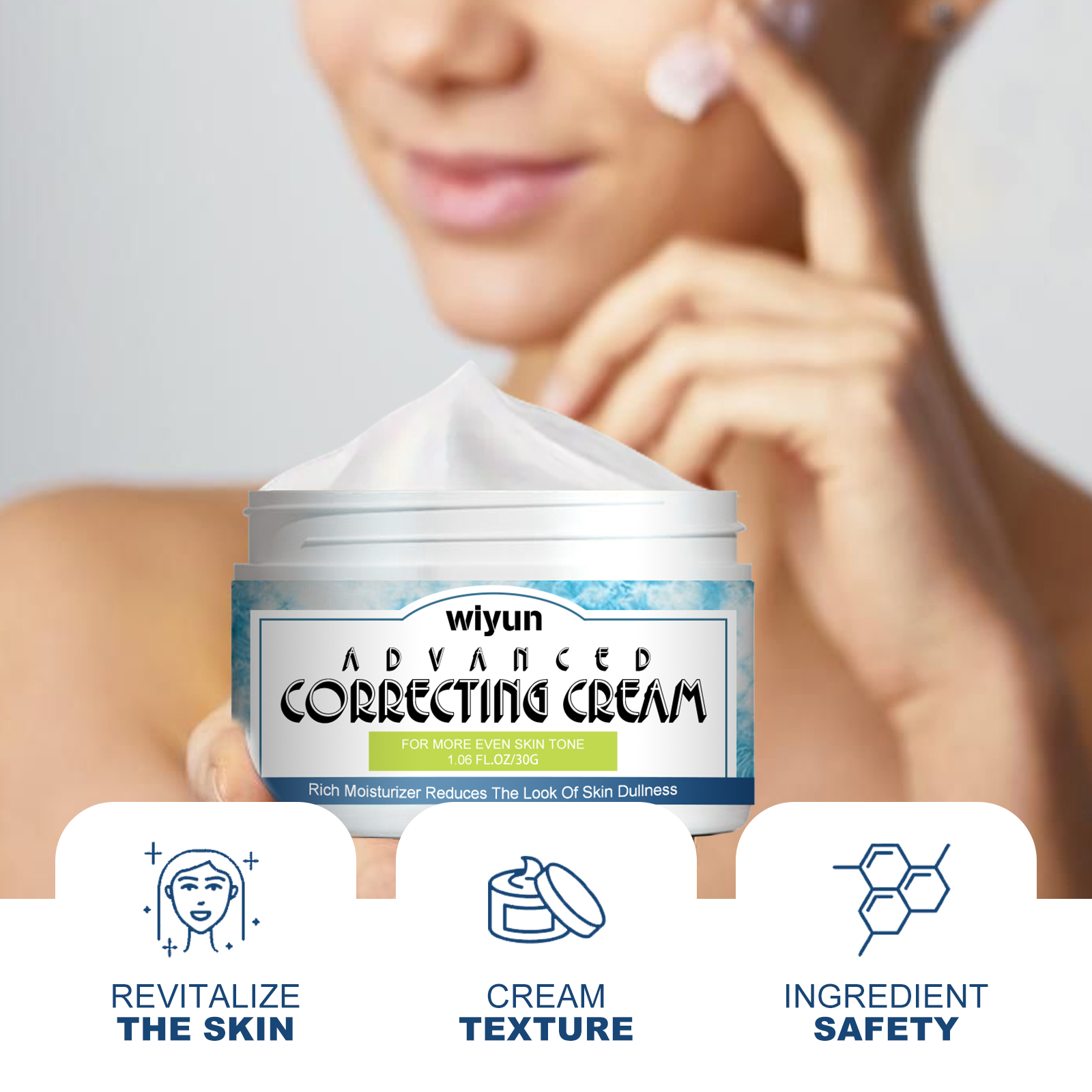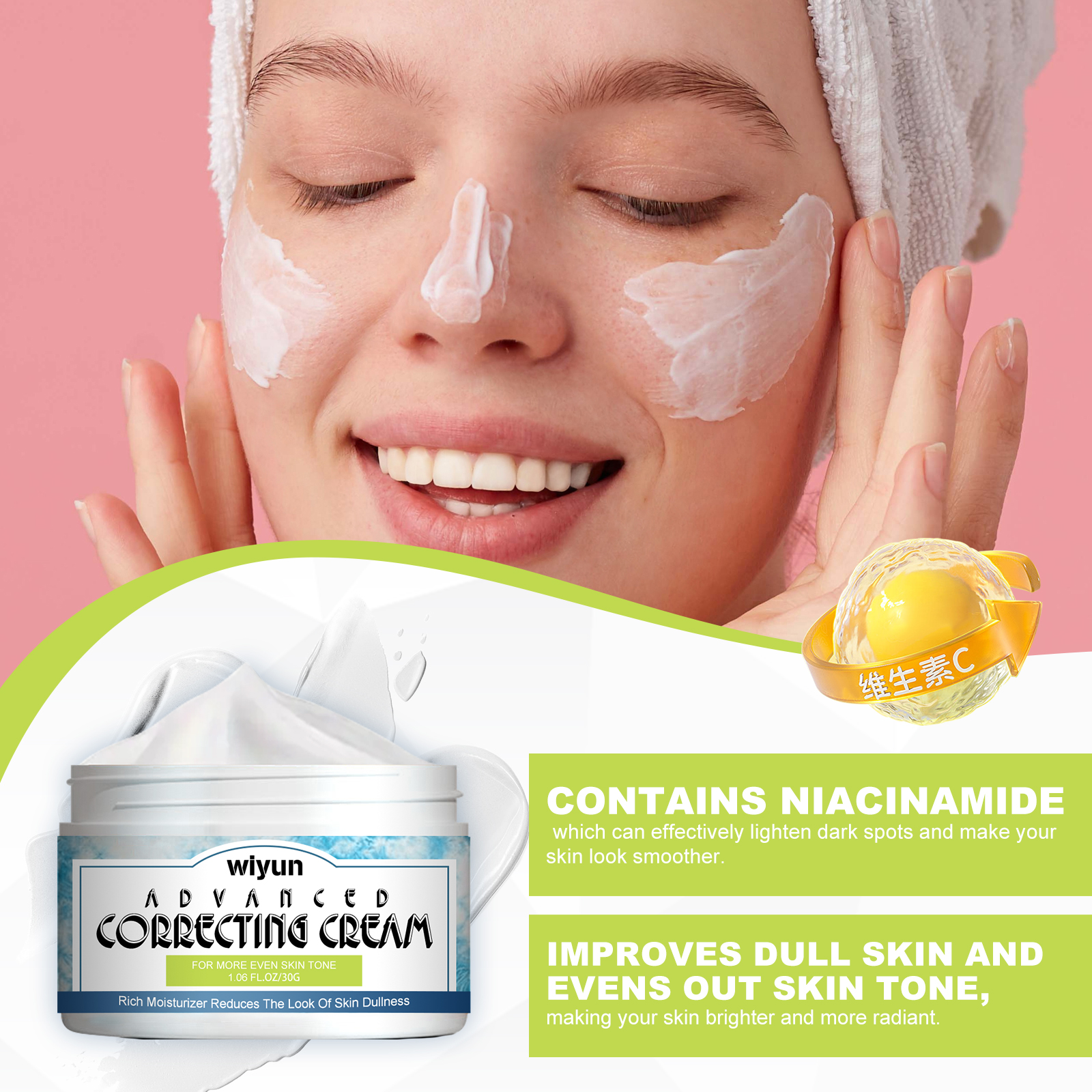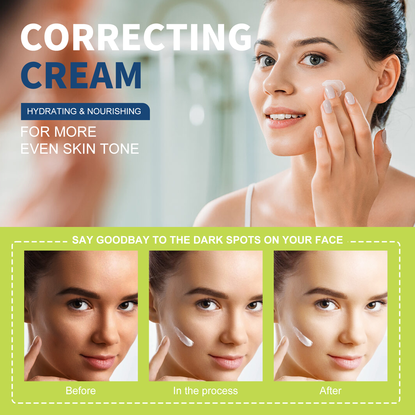 Our Correcting Cream contains vitamin E, niacinamide and vitamin B5. It can effectively lighten dark spots, improve dull skin tone, even out skin tone, and make your skin brighter and more shiny. Its application method is very simple: after cleansing, evenly apply the cream to the face skin, gently massage until completely absorbed. After use, it can lighten the skin, fade freckles and melasma, and make your skin smoother and fairer.
