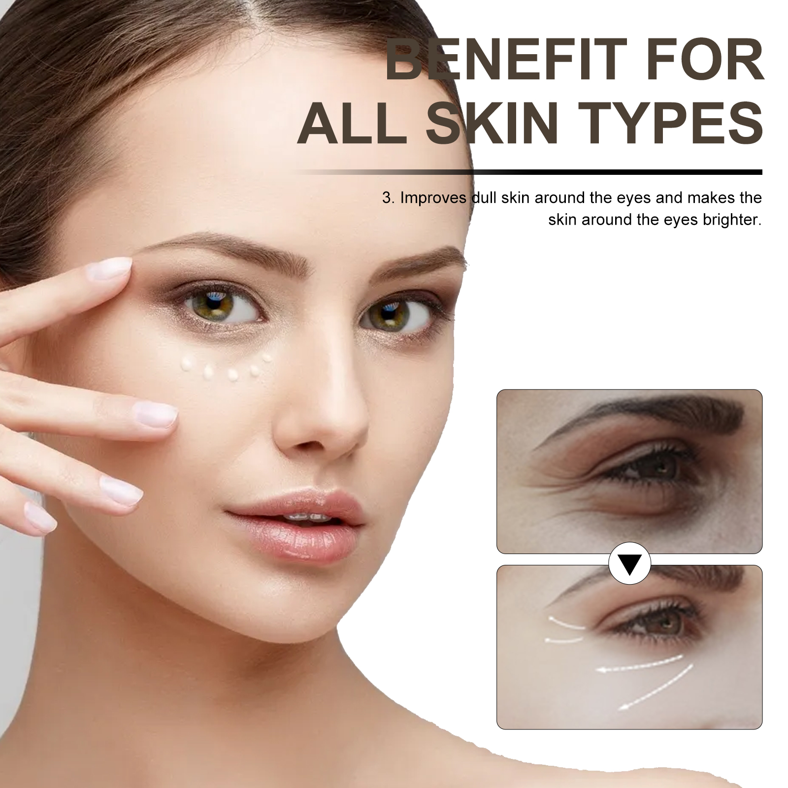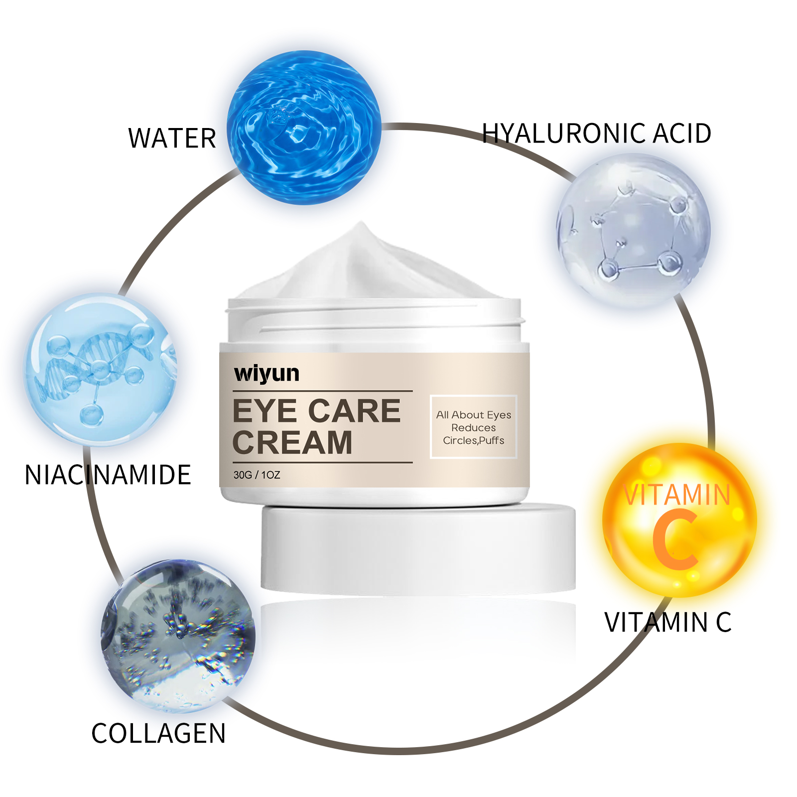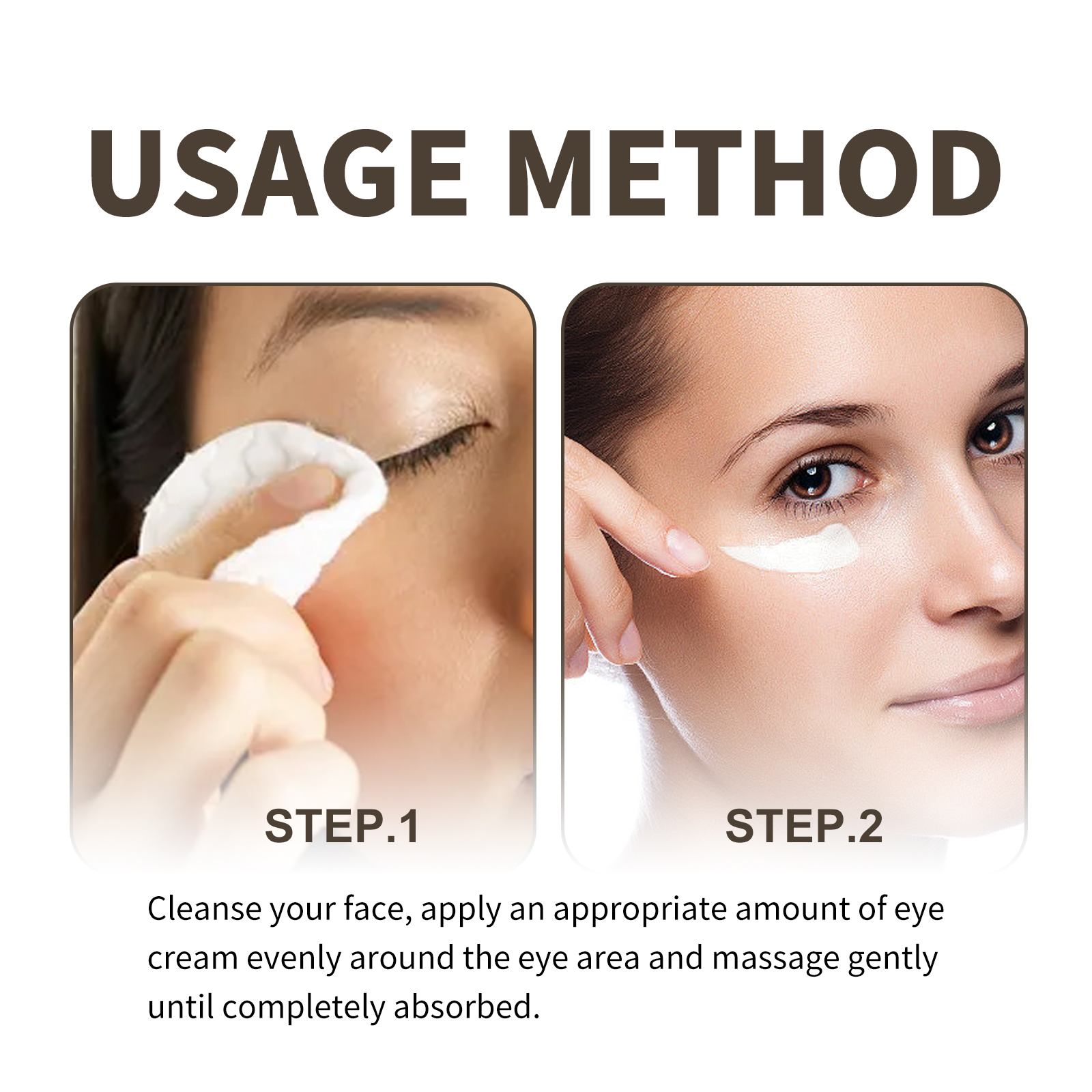 Our eye care cream contains niacinamide, vitamin C, collagen. It can effectively reduce eye fine lines and wrinkles, improve skin elasticity, and make eye skin firmer and younger. Its use method is very simple: after cleansing, take appropriate amount of eye cream evenly apply around the eyes, gently massage until completely absorbed. Improves dull skin around the eyes and makes the skin around the eyes brighter.