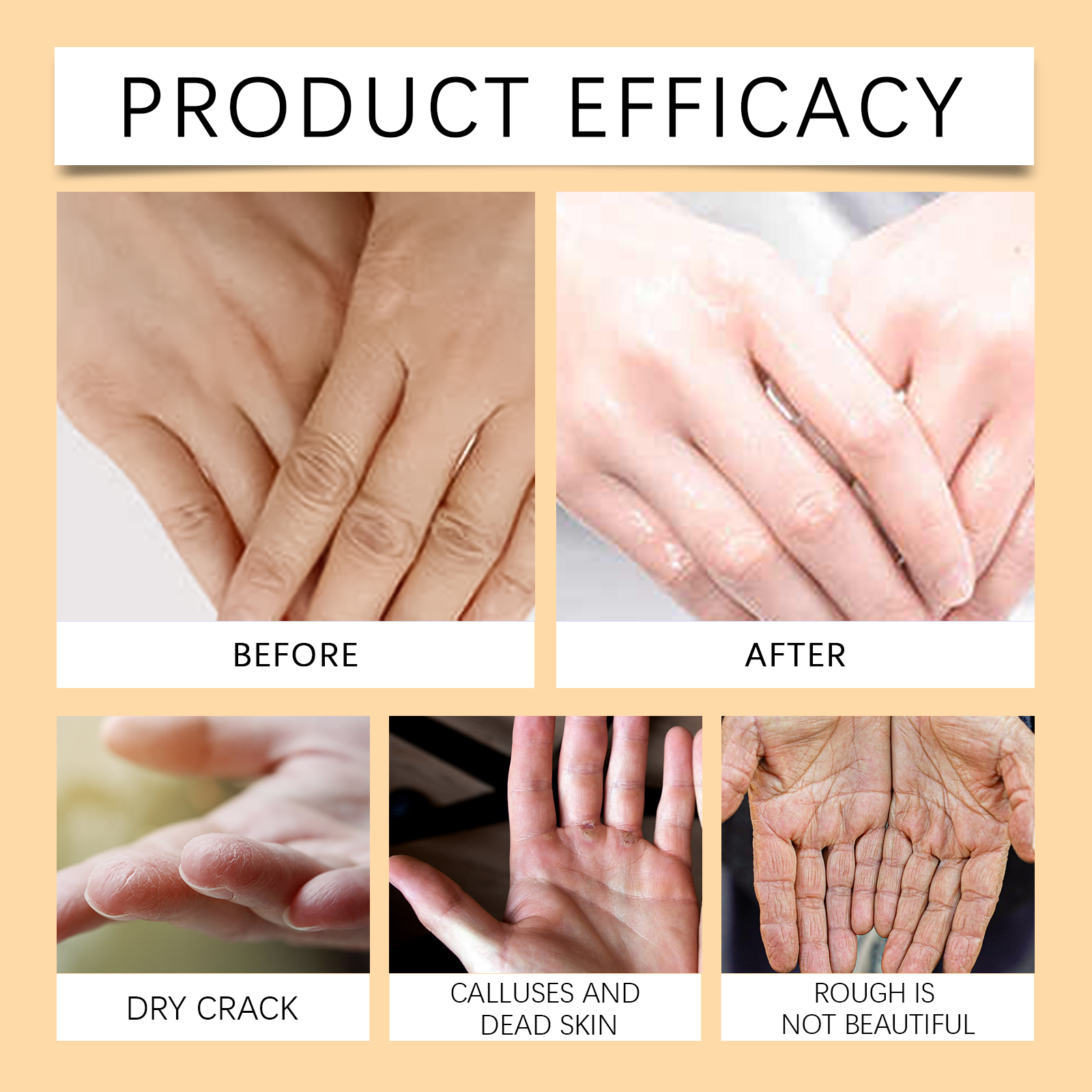Our honey peel film contains beeswax and sodium hyaluronate. It has a long-lasting moisturizing formula that locks in moisture and keeps the hand skin hydrated all day long, bringing a pleasant use experience and relaxing body and mind. Its application method is very simple: completely clean hand skin, take appropriate amount of this product, evenly apply to the hand skin. Wait 25-30 minutes until the essence has been absorbed before peeling the mask off. And can effectively repair dry, rough skin, improve the health of hand skin.