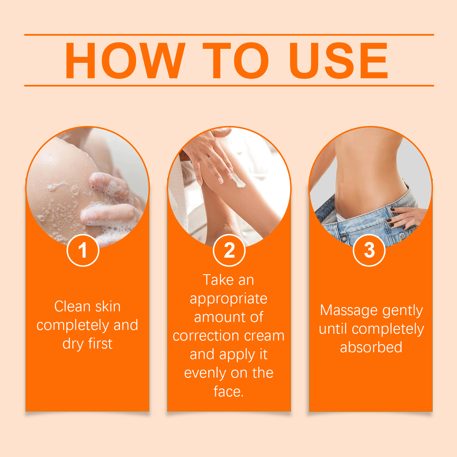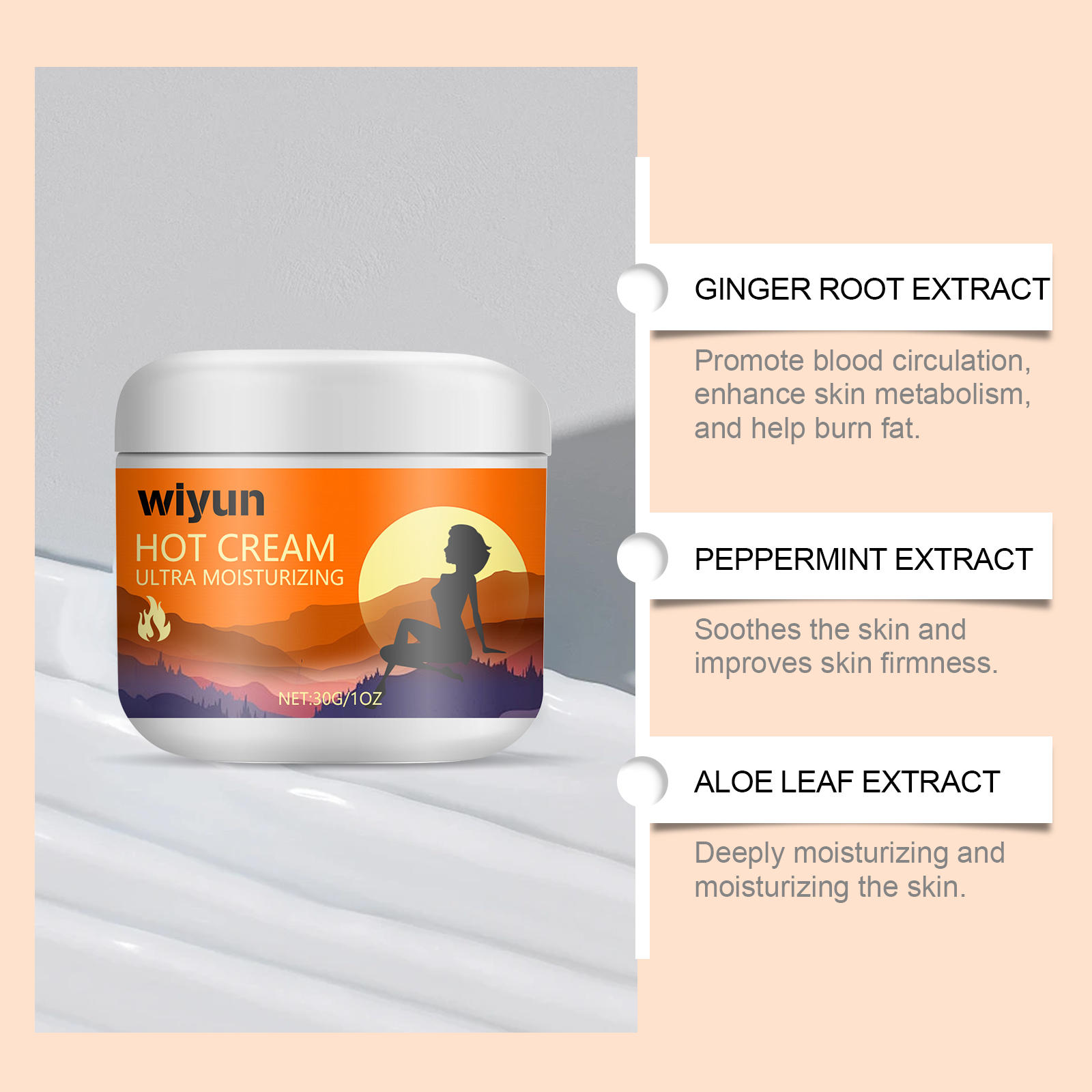 Our body care cream contains ginger root extract and mint extract. It can promote fat breakdown, rapidly reduce body circumference, create an ideal figure, penetrate deep into the skin layer, activate fat cells, and enhance fat-burning effects. Its usage is very simple: Thoroughly clean the skin, dry it first, take an appropriate amount of the correction cream, apply it evenly to the face, and gently massage until it is fully absorbed. It can promote blood circulation, enhance skin metabolism and help burn fat.
