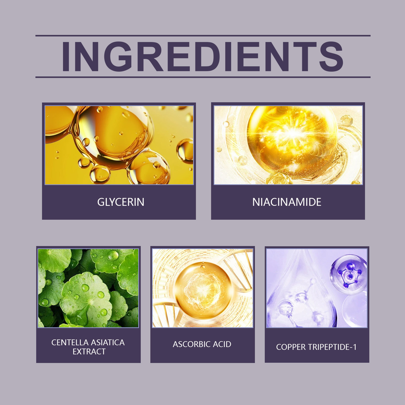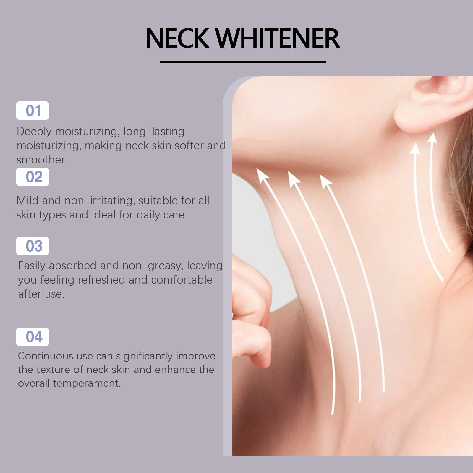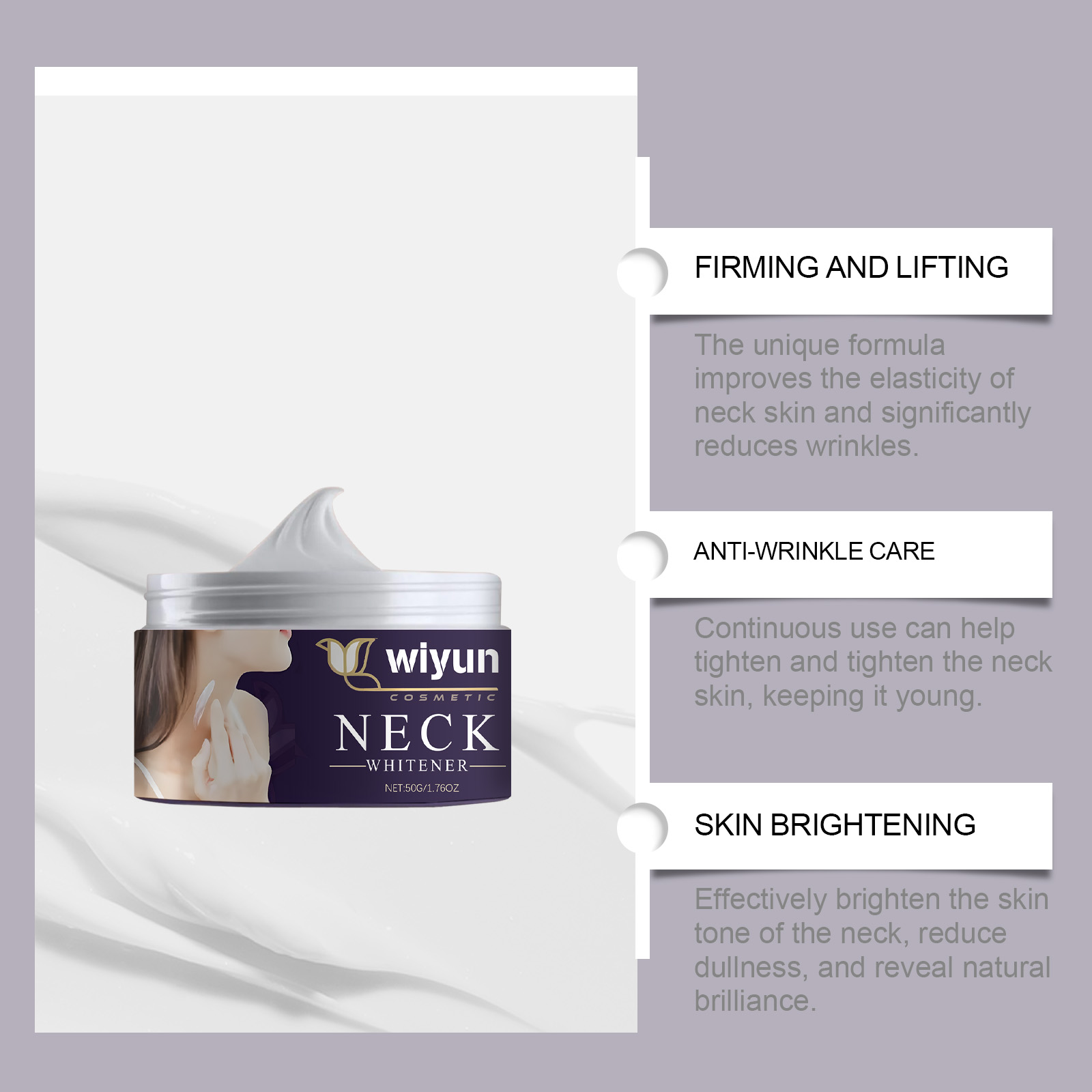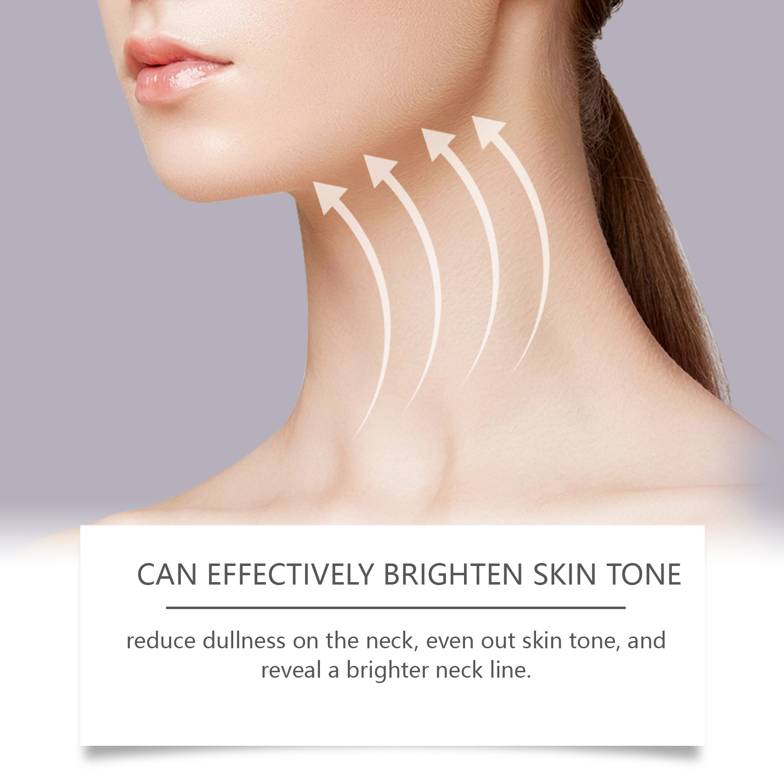 Our neck cream contains glycerin, nicotinamide and Asiaticum extract. It can effectively lighten the skin tone of the neck, reduce dullness, and present a natural glow. The way to use it is simple: 1. Clean the skin on the neck and keep it dry. 2. Apply proper amount of face cream to neck skin evenly. 3. Massage gently to promote absorption. Helps fade dark spots and blemishes, and improves evenness of neck skin.