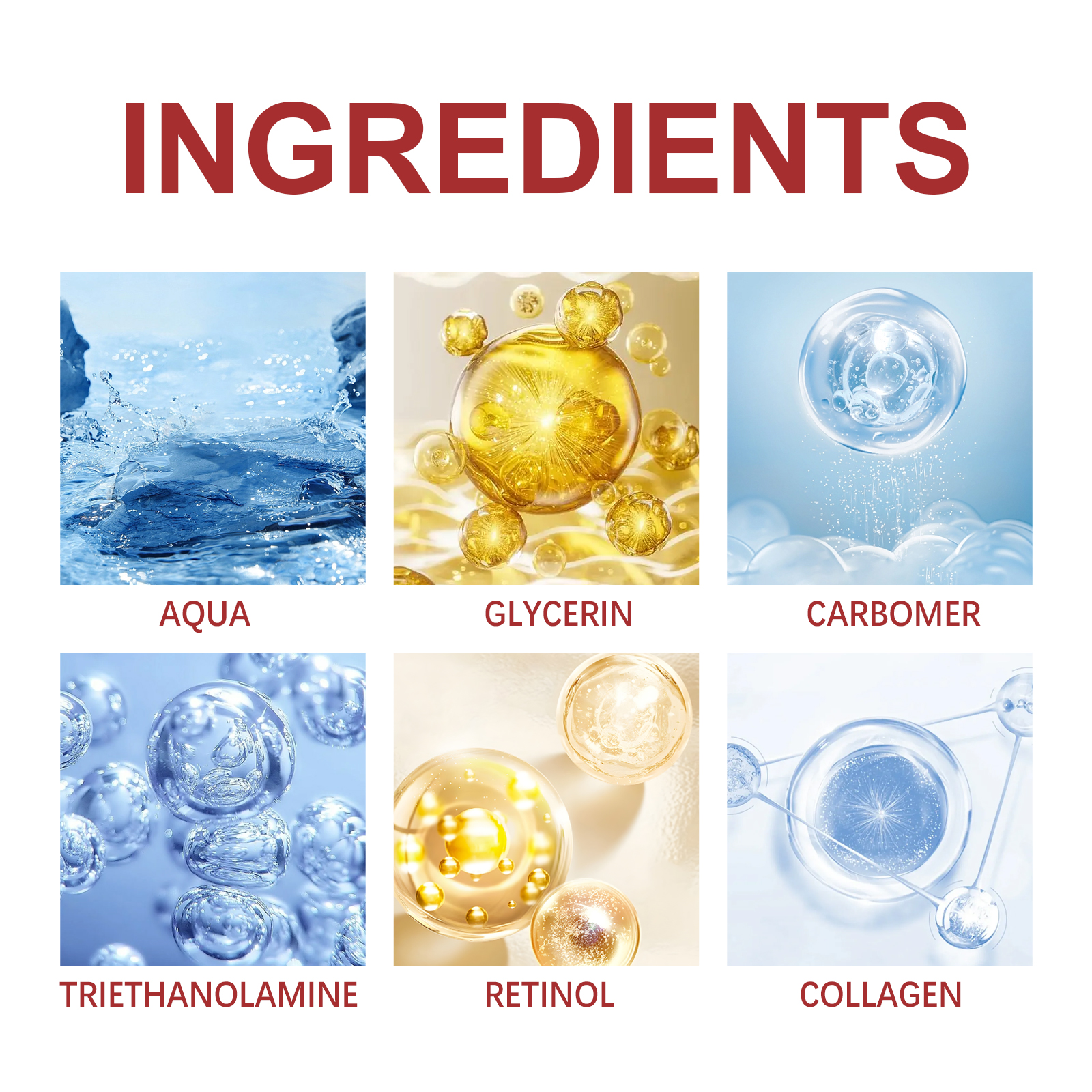 Our retinol whitening fine line cream contains glycerin, carbomer. It can improve skin quality, moisturize dry skin, reduce fine lines and wrinkles, long-lasting moisturizing effect, improve dull skin, suitable for all skin types. The way to use it is simple: after cleansing, apply the cream evenly to the face and gently massage until it is completely absorbed. Adding retinol can effectively reduce fine lines and wrinkles, restore skin vitality, improve skin elasticity, and make skin firm and young; The ingredients are gentle and suitable for all skin types, including sensitive skin.