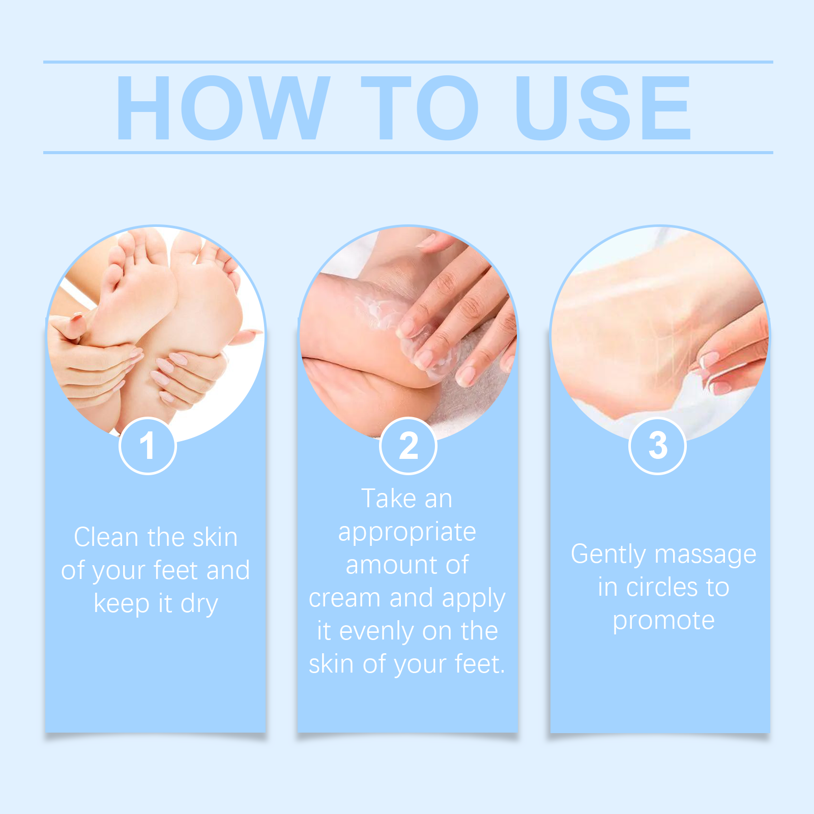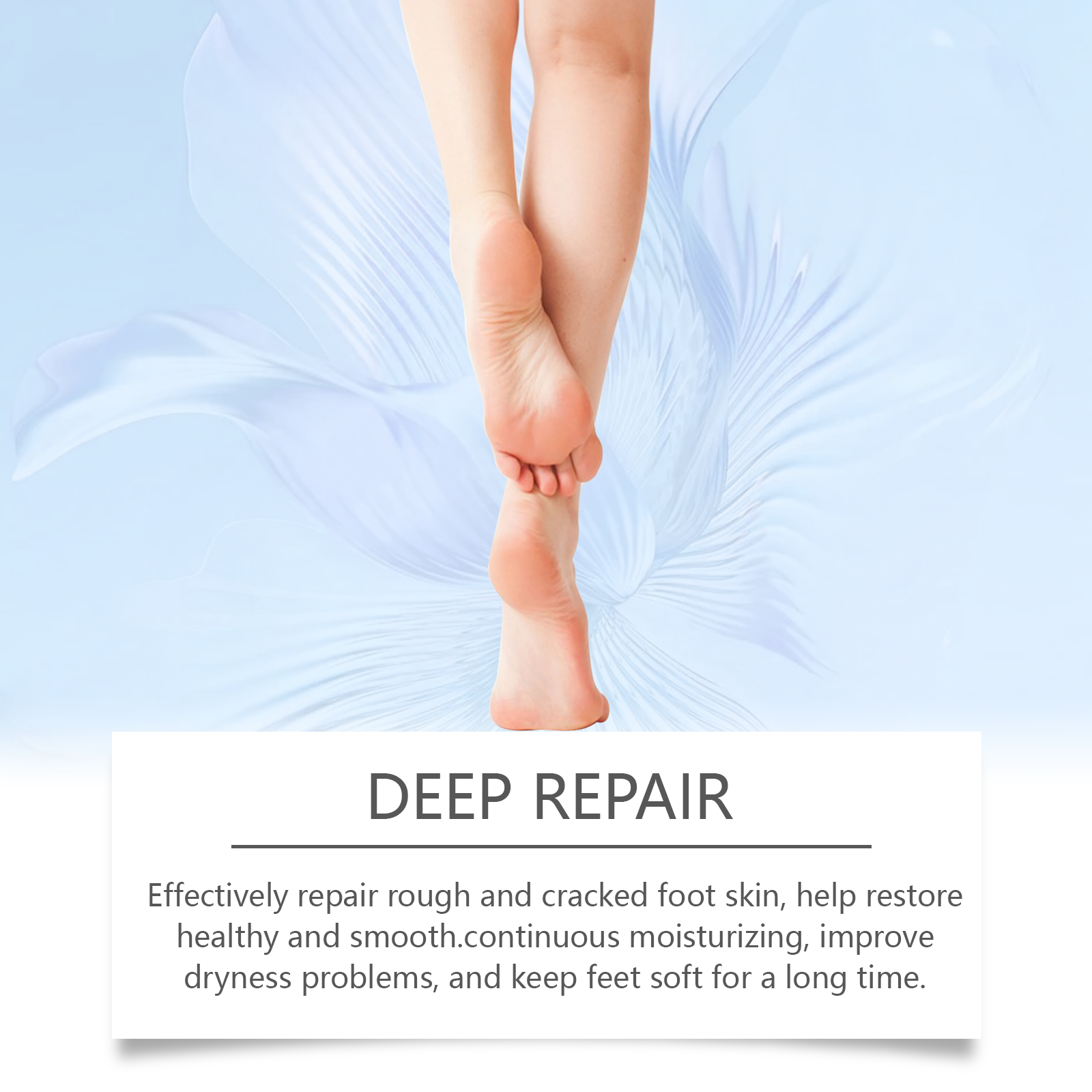 Our urea moisturizing foot repair cream contains aloe vera leaf extract and salicylic acid. It can deeply moisturize, relieve dry feet and restore soft touch. The way to use it is very simple: clean the skin of the feet and keep it dry, take an appropriate amount of cream, evenly apply it to the skin of the feet, massage it gently in circles, promote health, and can repair cracked and rough skin, and let your feet rejuvenate.