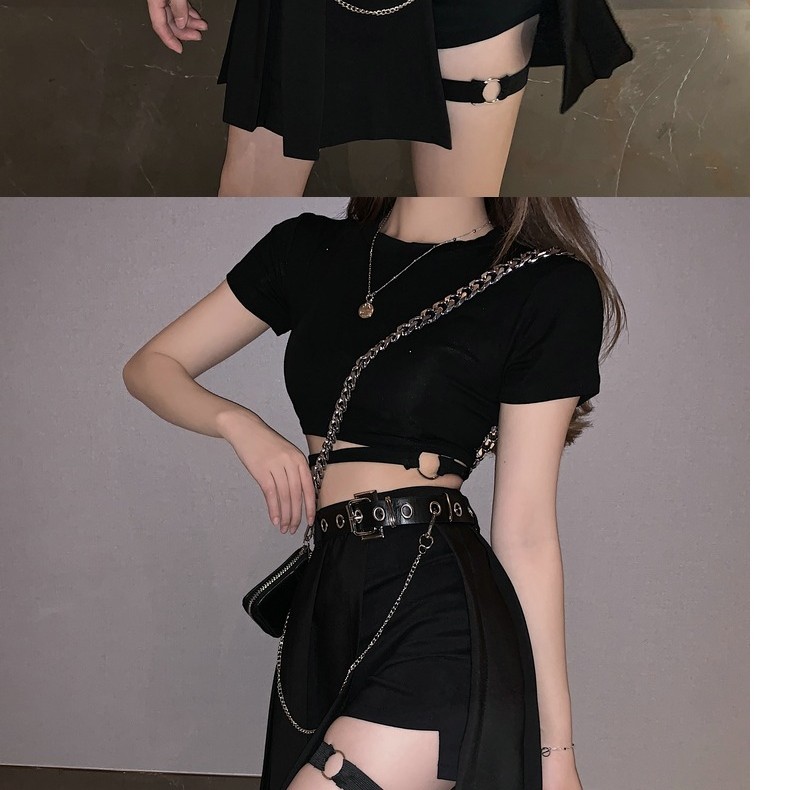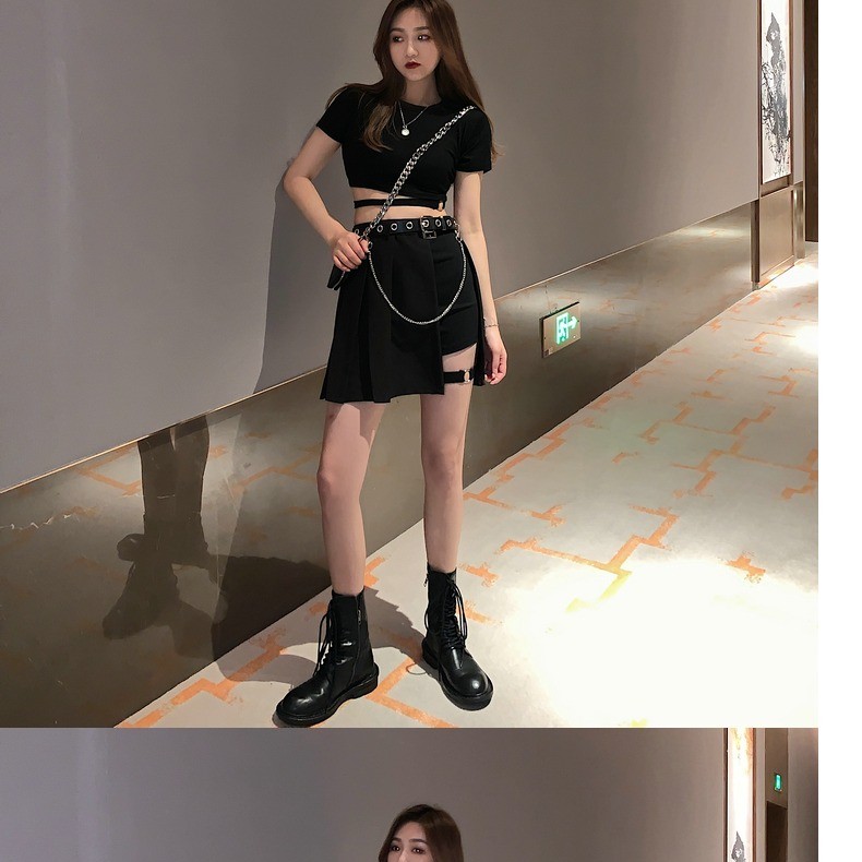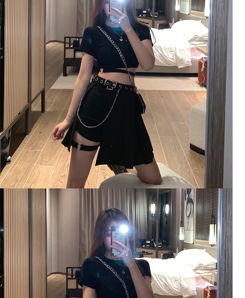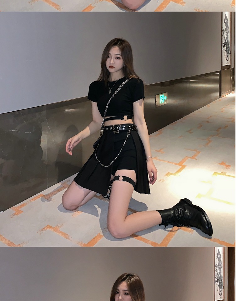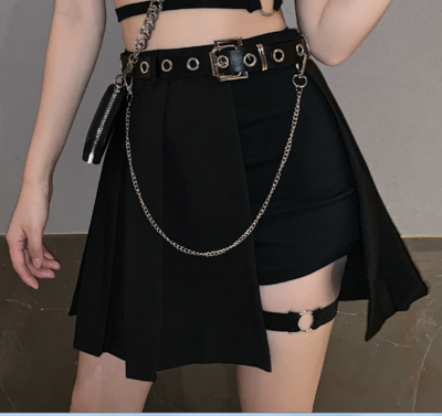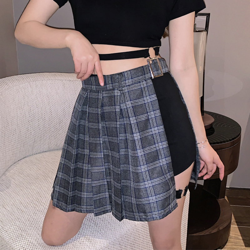Color: leg ring shorts+black skirt+belt, leg ring shorts+plaid skirt+belt
