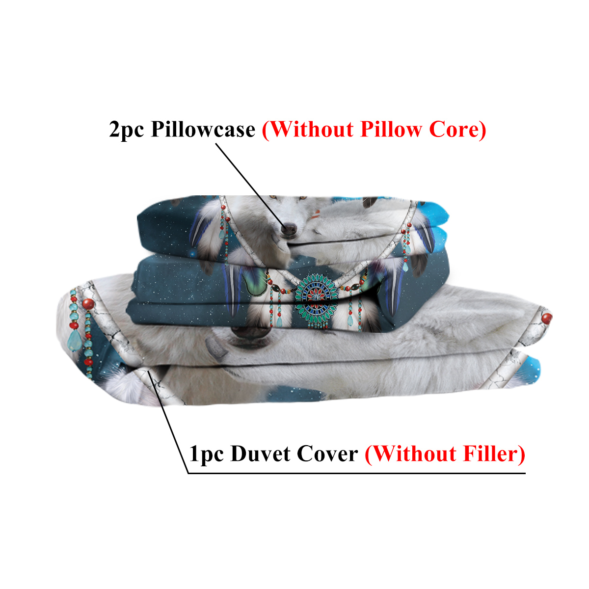 1.ATTENTION: Twin set come with one duvet cover 68" by 86" and two standard pillow shams 20" by 26"; Full set come with one duvet cover 80" by 90" and two standard pillow shams 20" by 26"; Queen set come with one duvet cover 90" by 90" and two standard pillow shams 20" by 36"; King set come with one duvet cover 104" by 90" and two standard pillow shams 20" by 36". DOES NOT include any inside fillers and accessories.