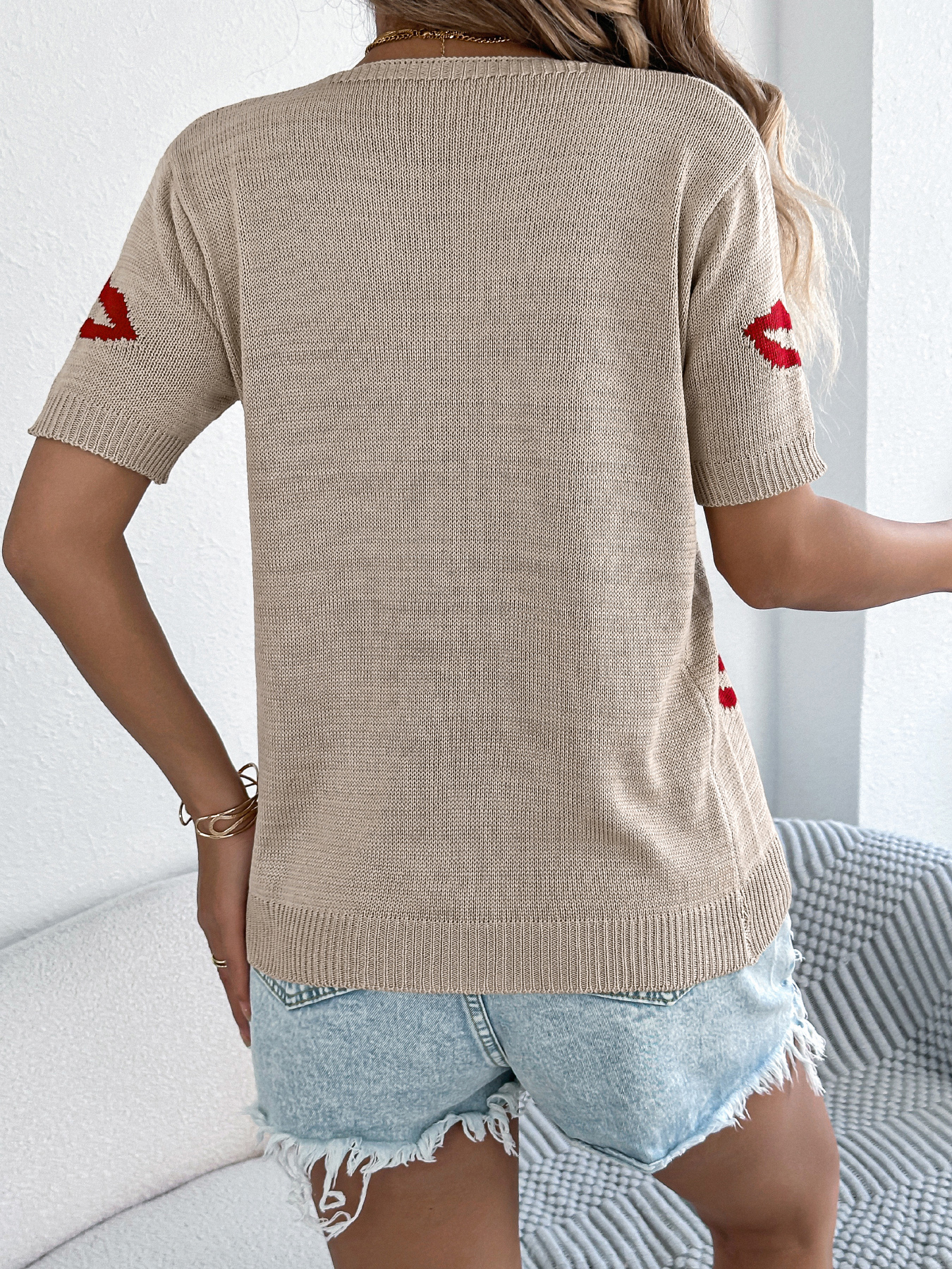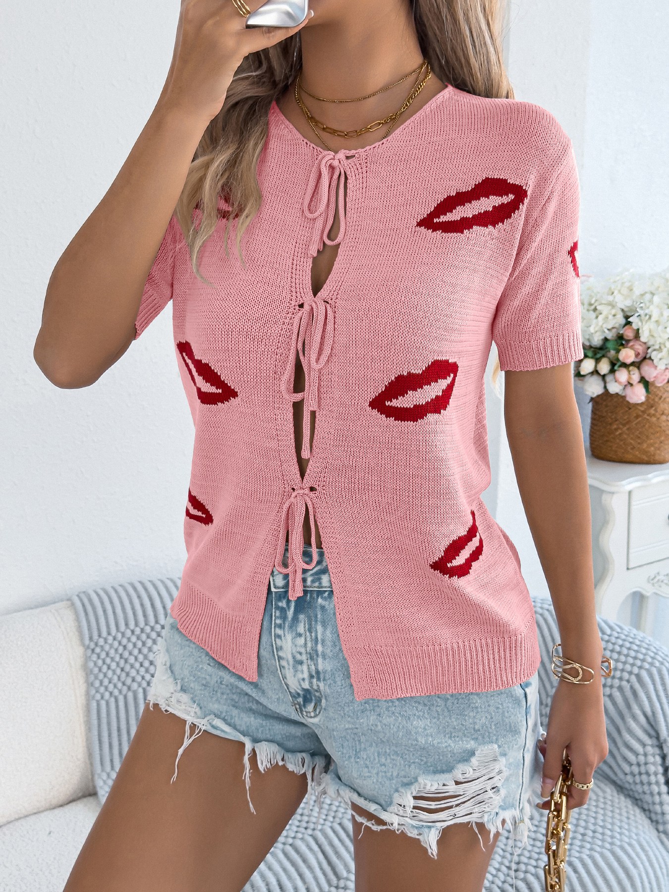 Women Casual Sexy Lips Jacquard Tie Knit Valentine Top