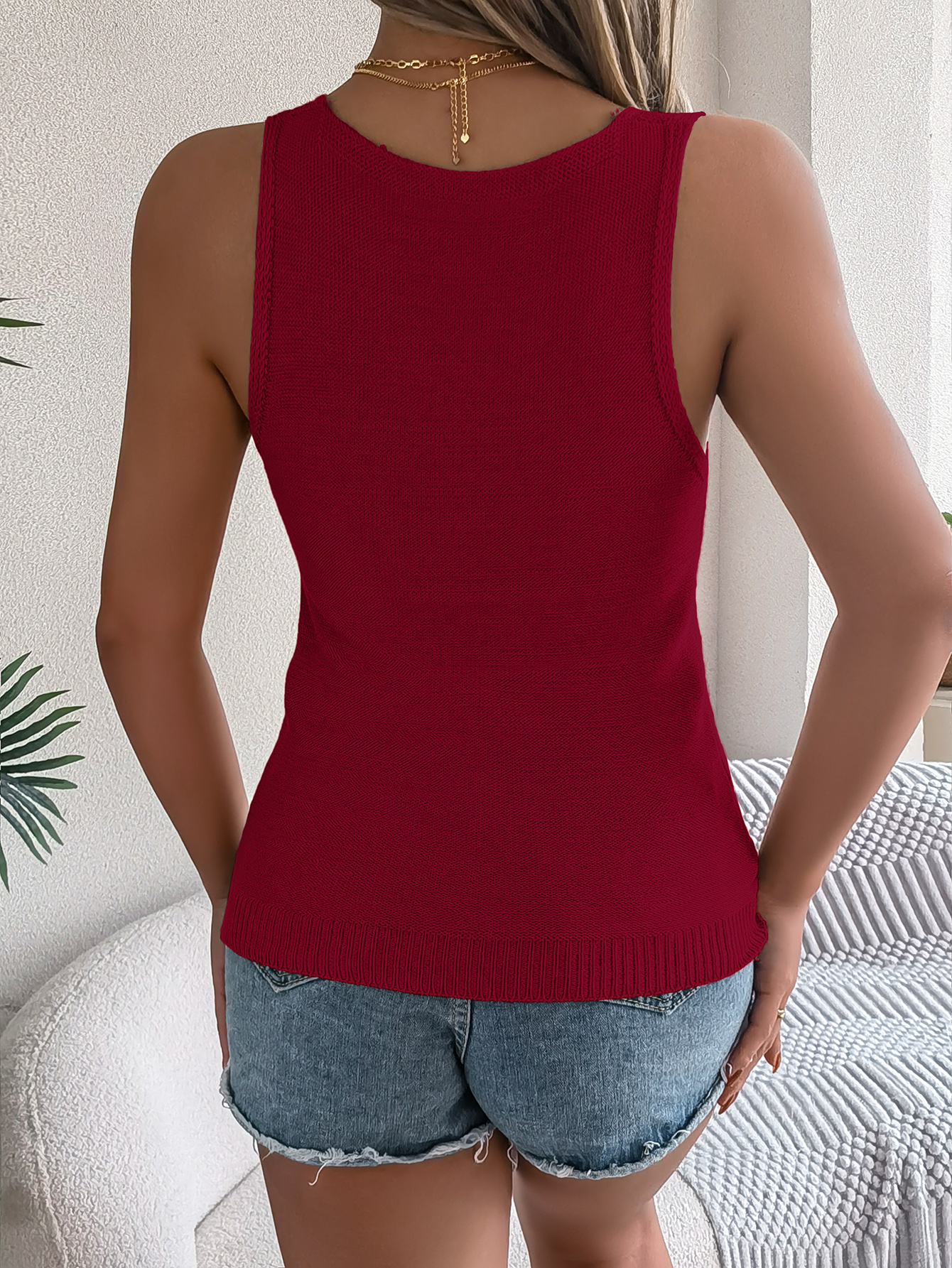 Women Casual V-Neck Hollow Out Knit Vacation Top