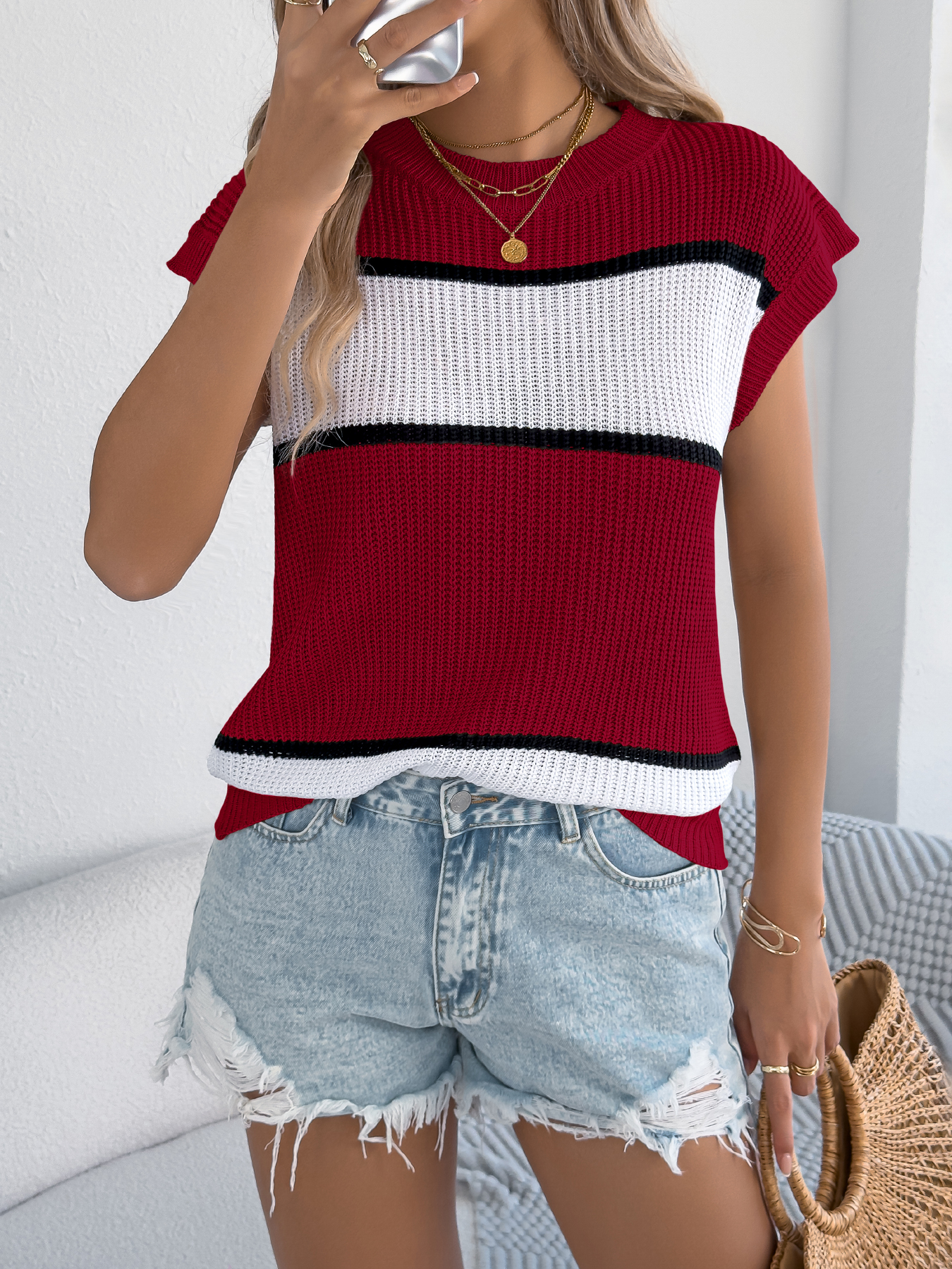 Women Color Block Stripe Casual Loose Knit Vacation Top