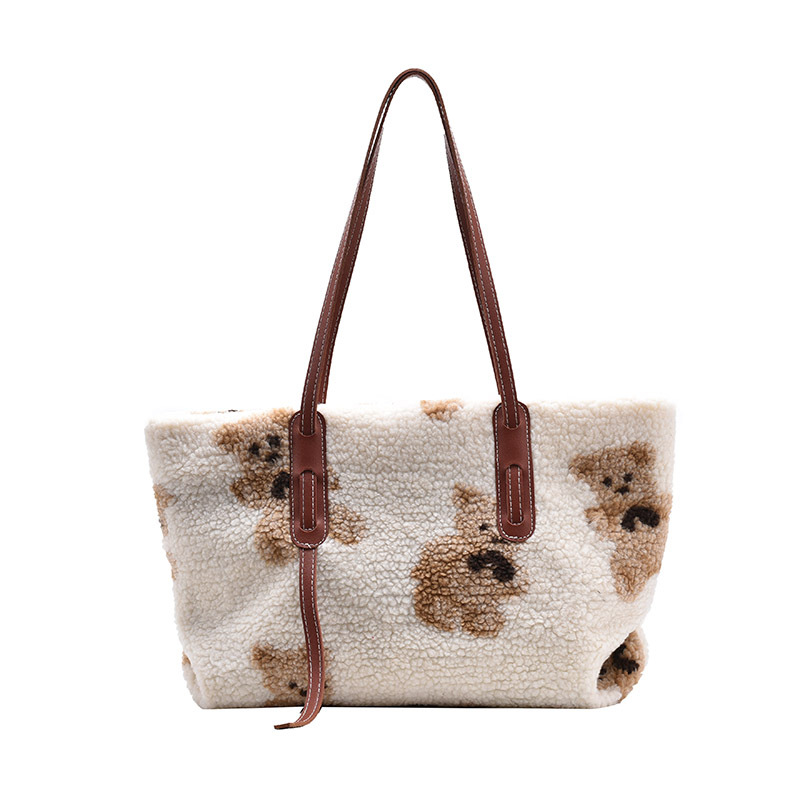 Women Cute Bear Plush Shoulder Bag Large Tote Handbag Purse