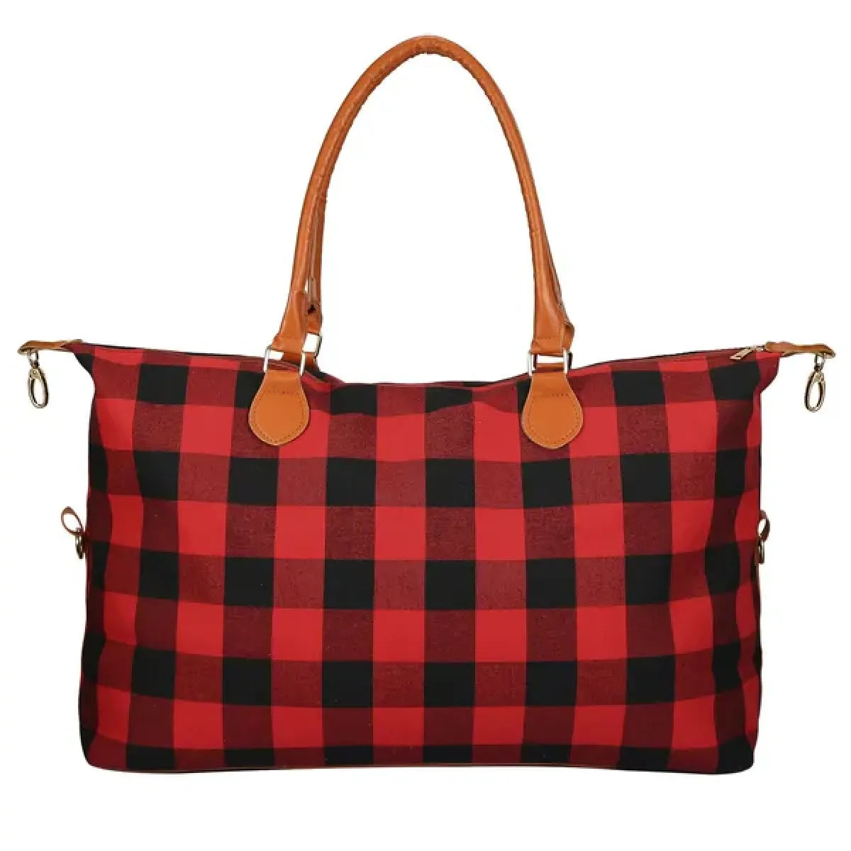 Product Type: Women Tote Bags Max Load: 50kg/110lbs Suitable Occasions: Travelling, Shopping, and Studying Material: All Cotton Woven Fabric, PU Leather and Bronze Y-shaped Zipper Color: Red Buffalo Plaid, White Buffalo Plaid, and Leopard Grain Shoulder Strap Length: 60x2cm/23.6x0.81inches (L x W) Item Size: 60x58.5x20cm /23.6x23x7.9 inches Item Weight: 530g/1.2lbs