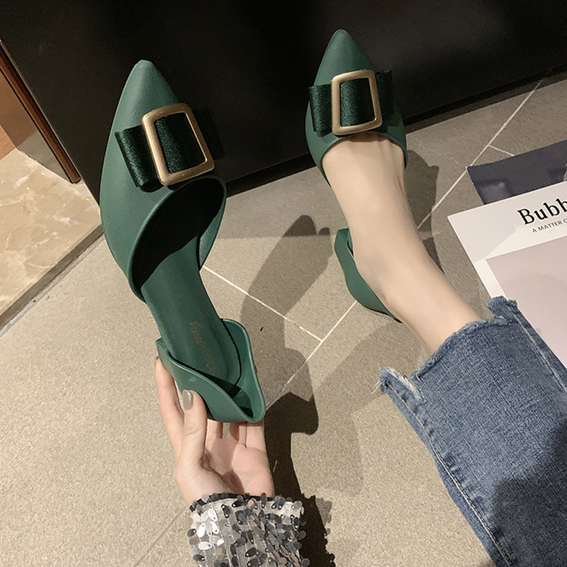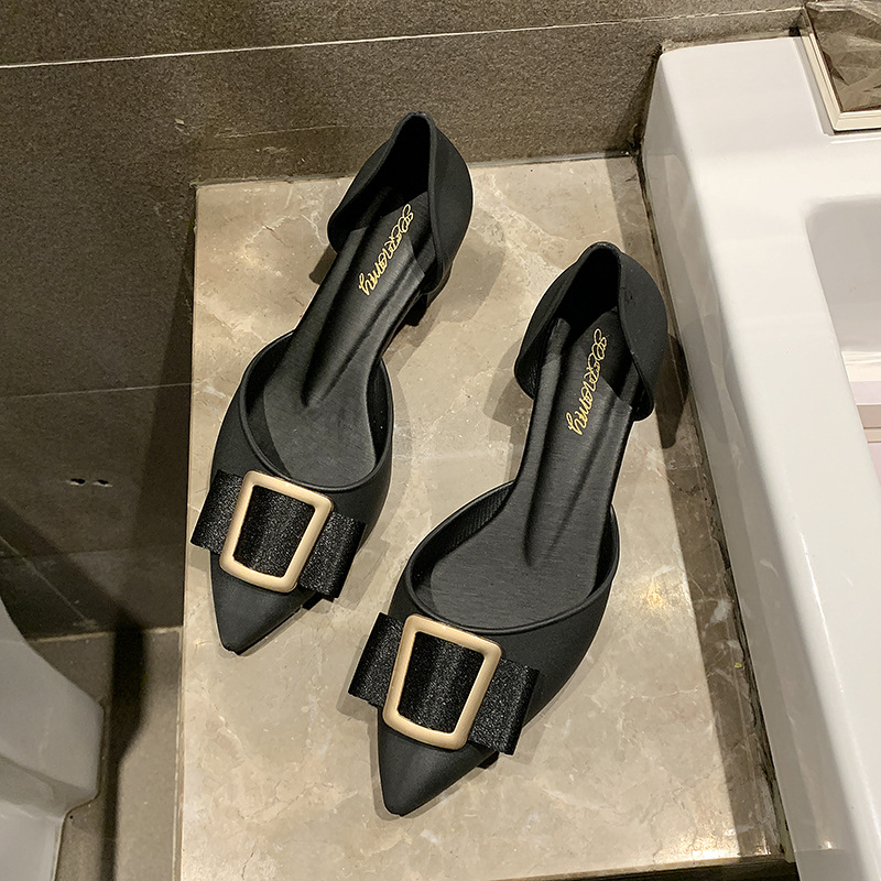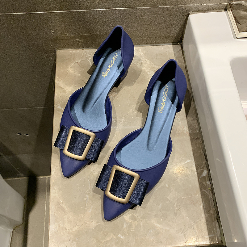 Popular elements: metal, bow, shallow mouth, thick heel, belt buckle