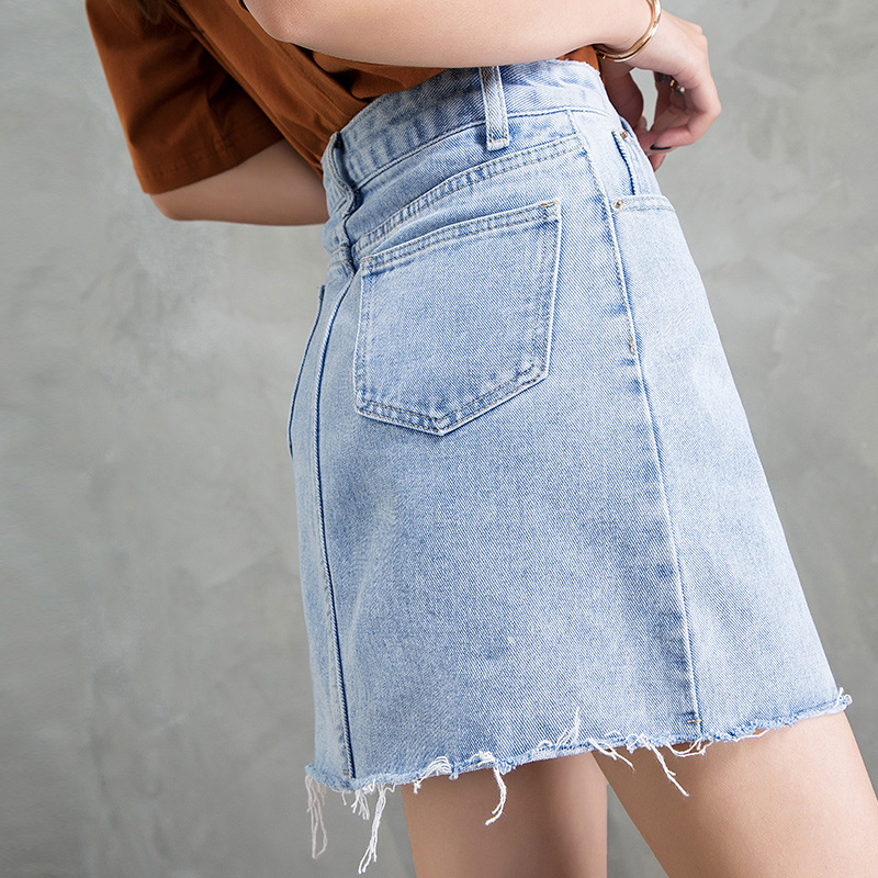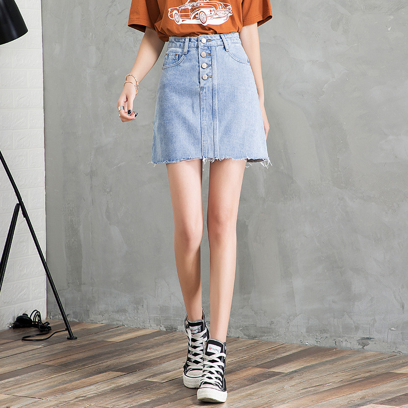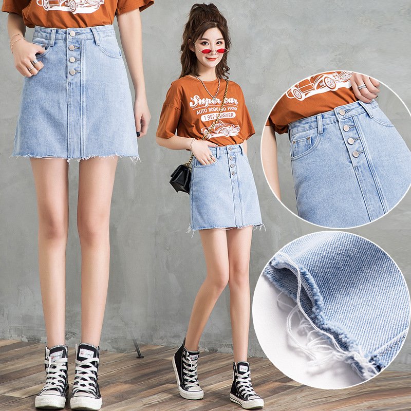 Women New Korean Style High Waist Breasted A-line Skirt