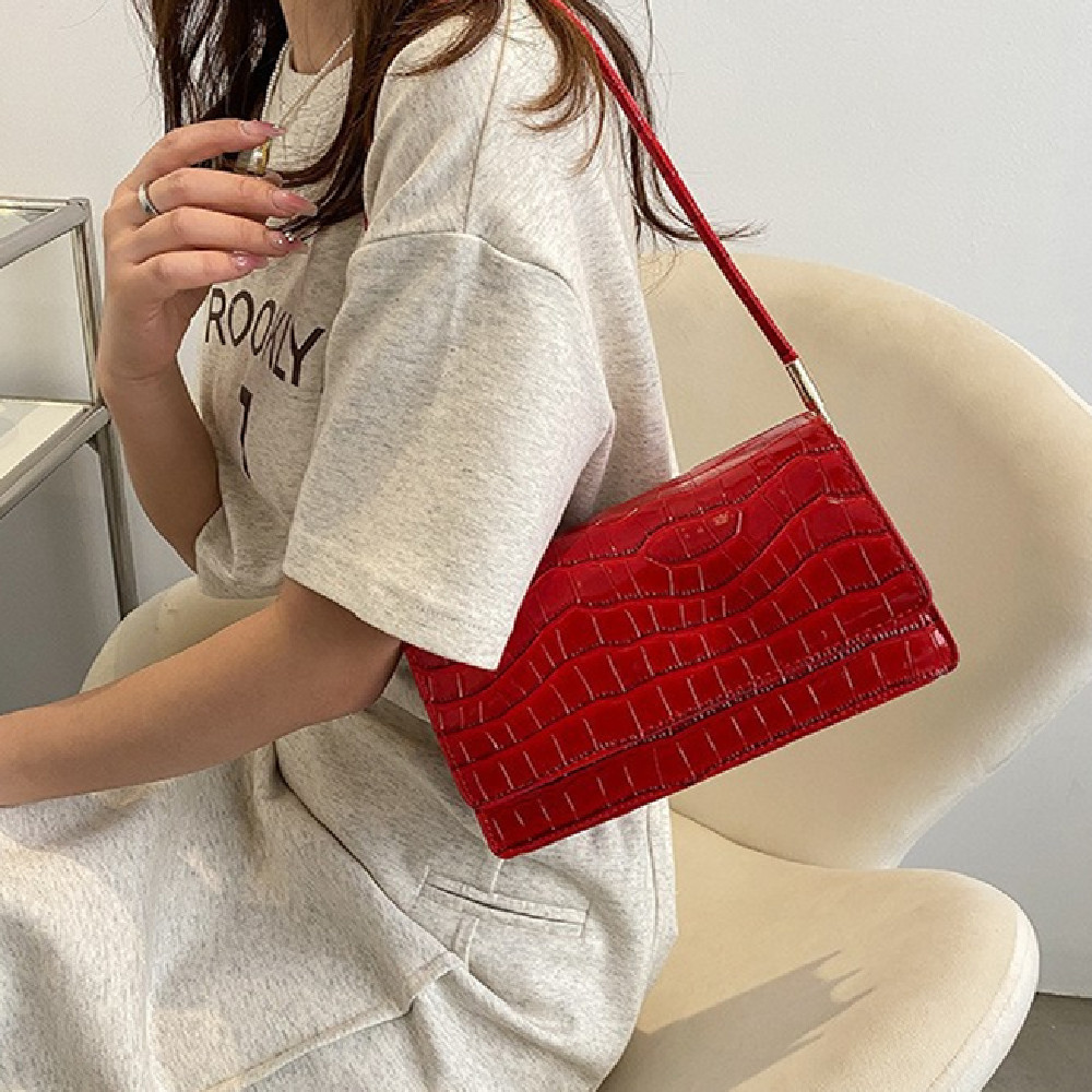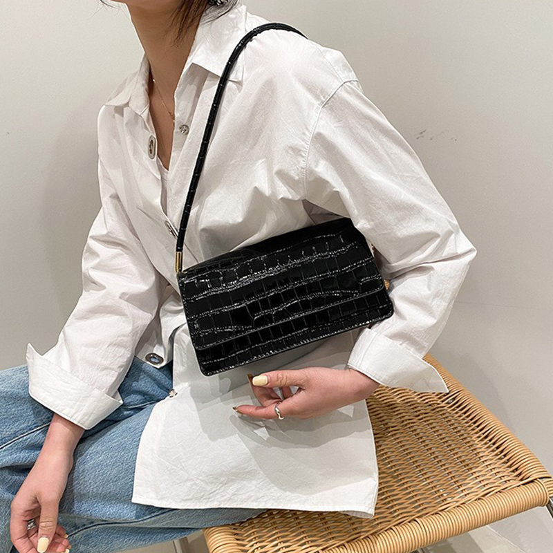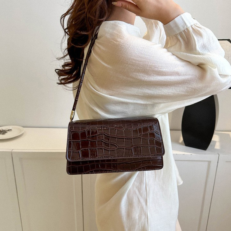 Women Shoulder Bgas Stone Pattern Solid Color Elegant Bag