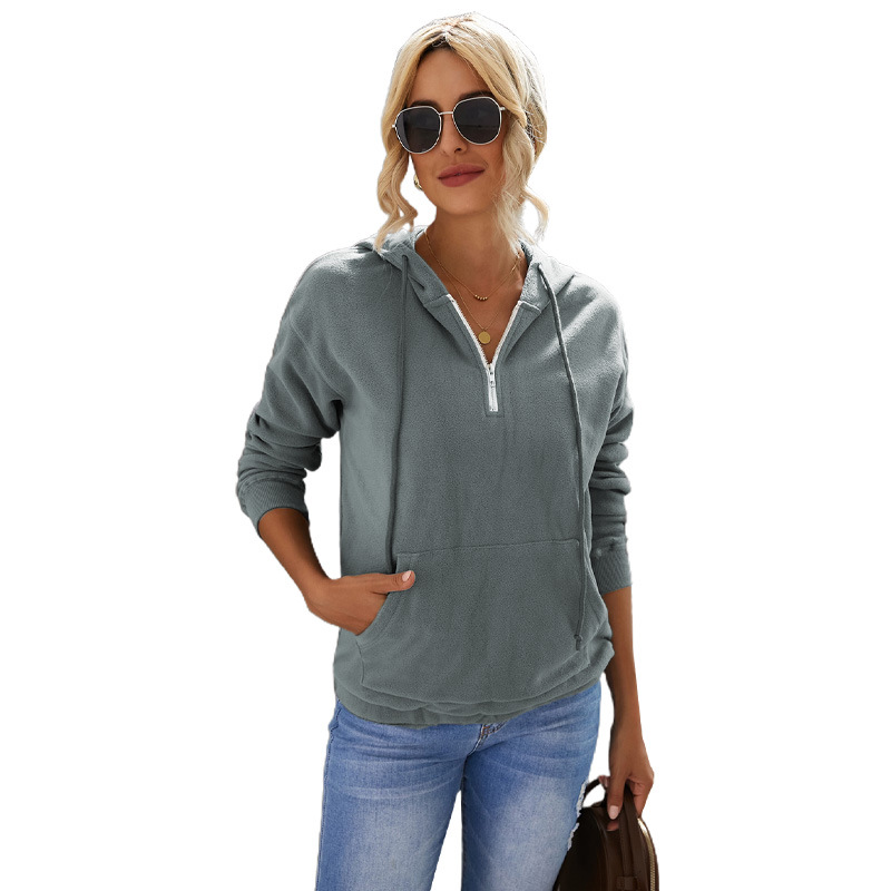 Women Solid Color Hooded Long Sleeve Sweatshirt