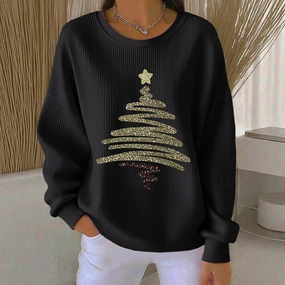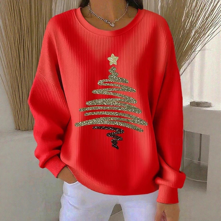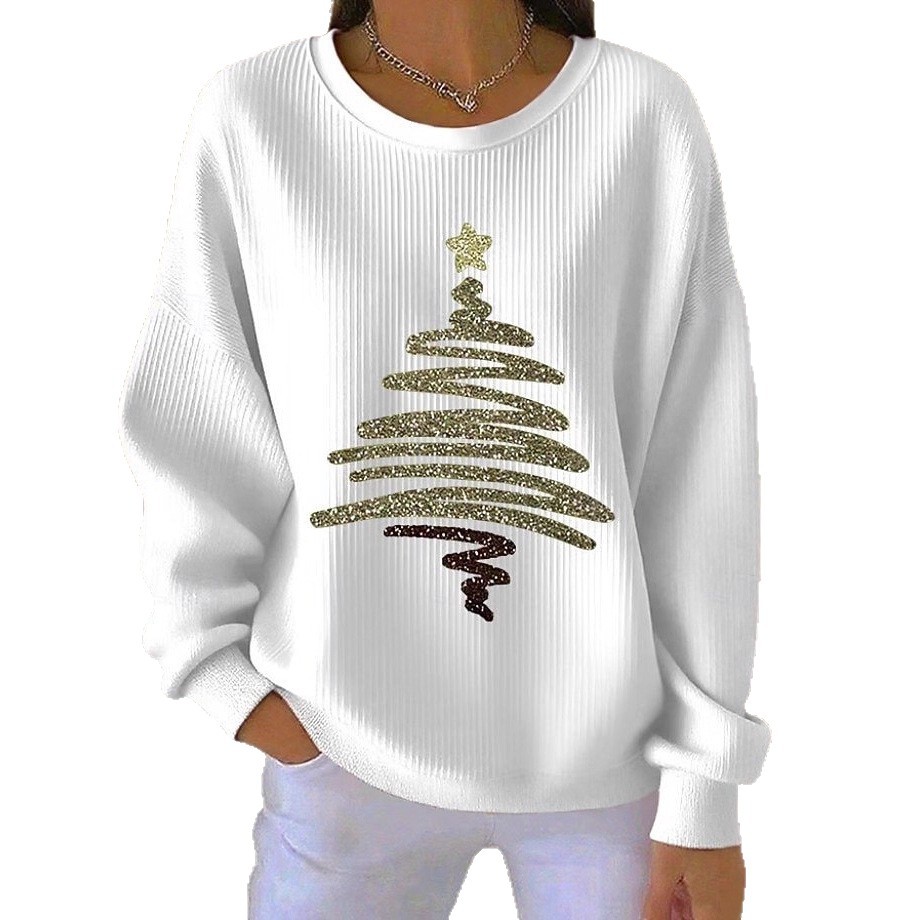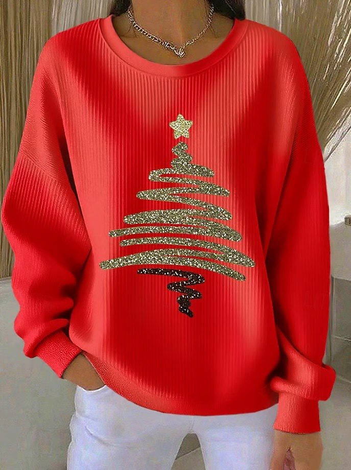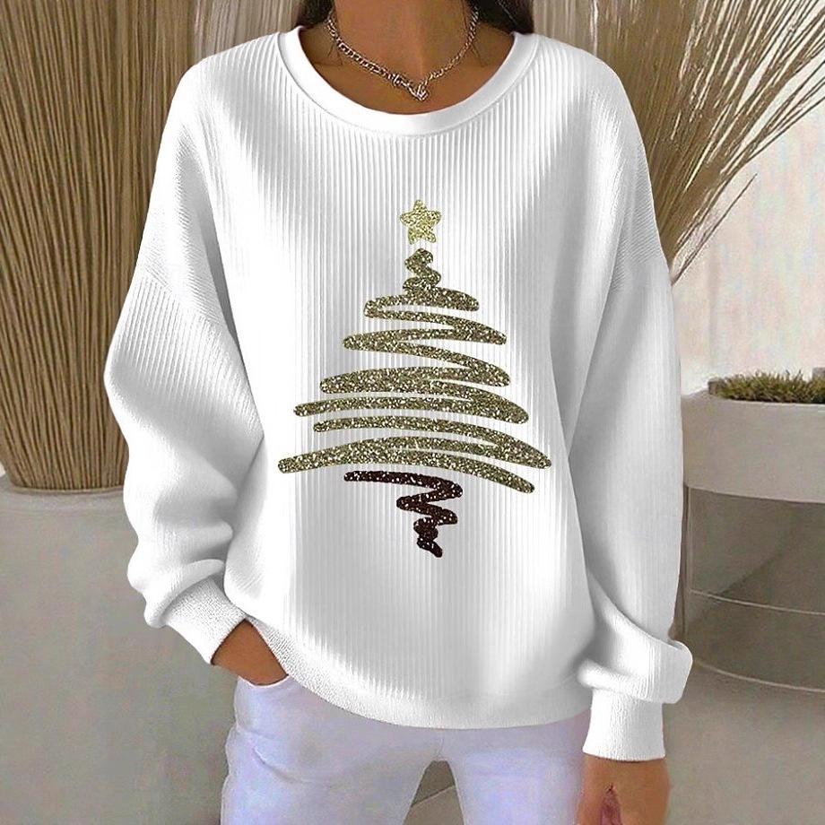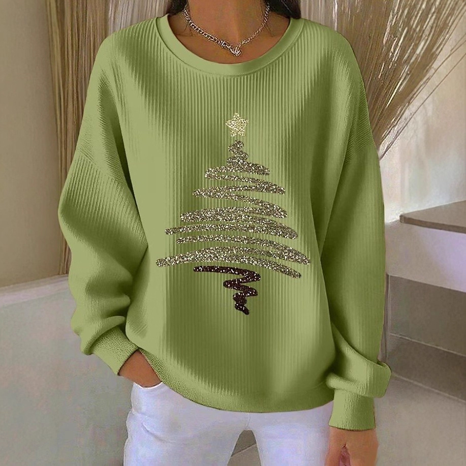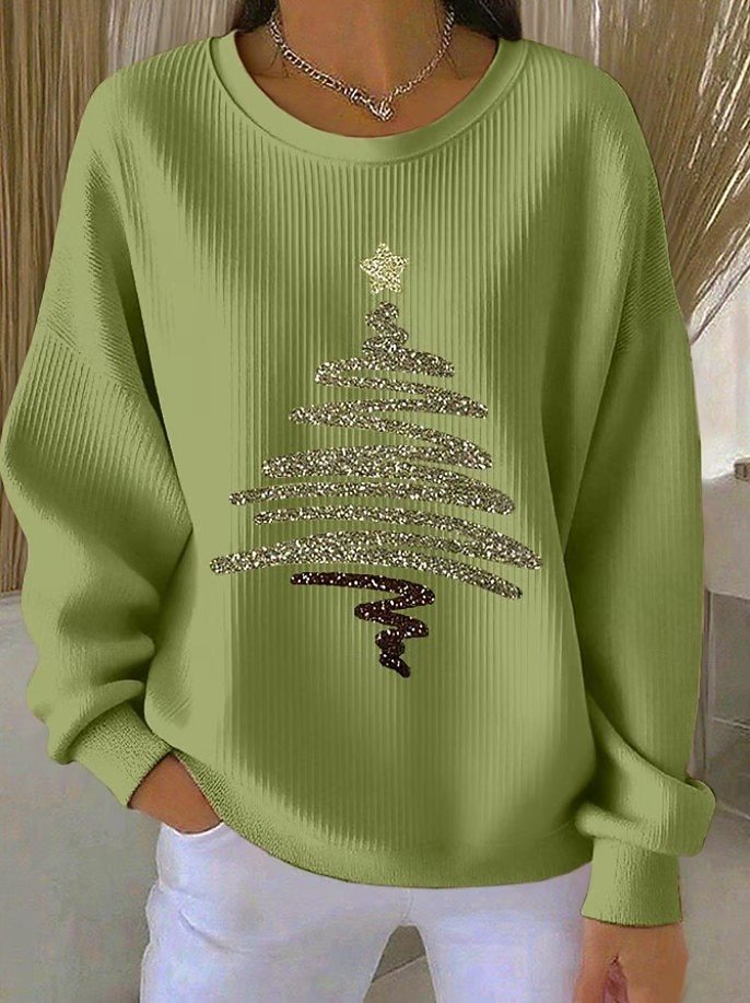 Womens 3D Christmas Tree-Print Corduroy Hoodie