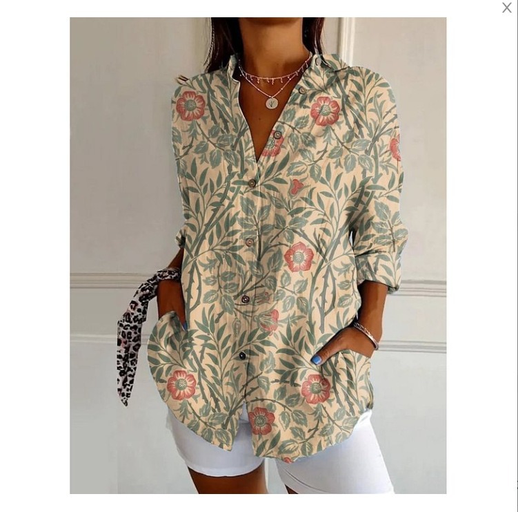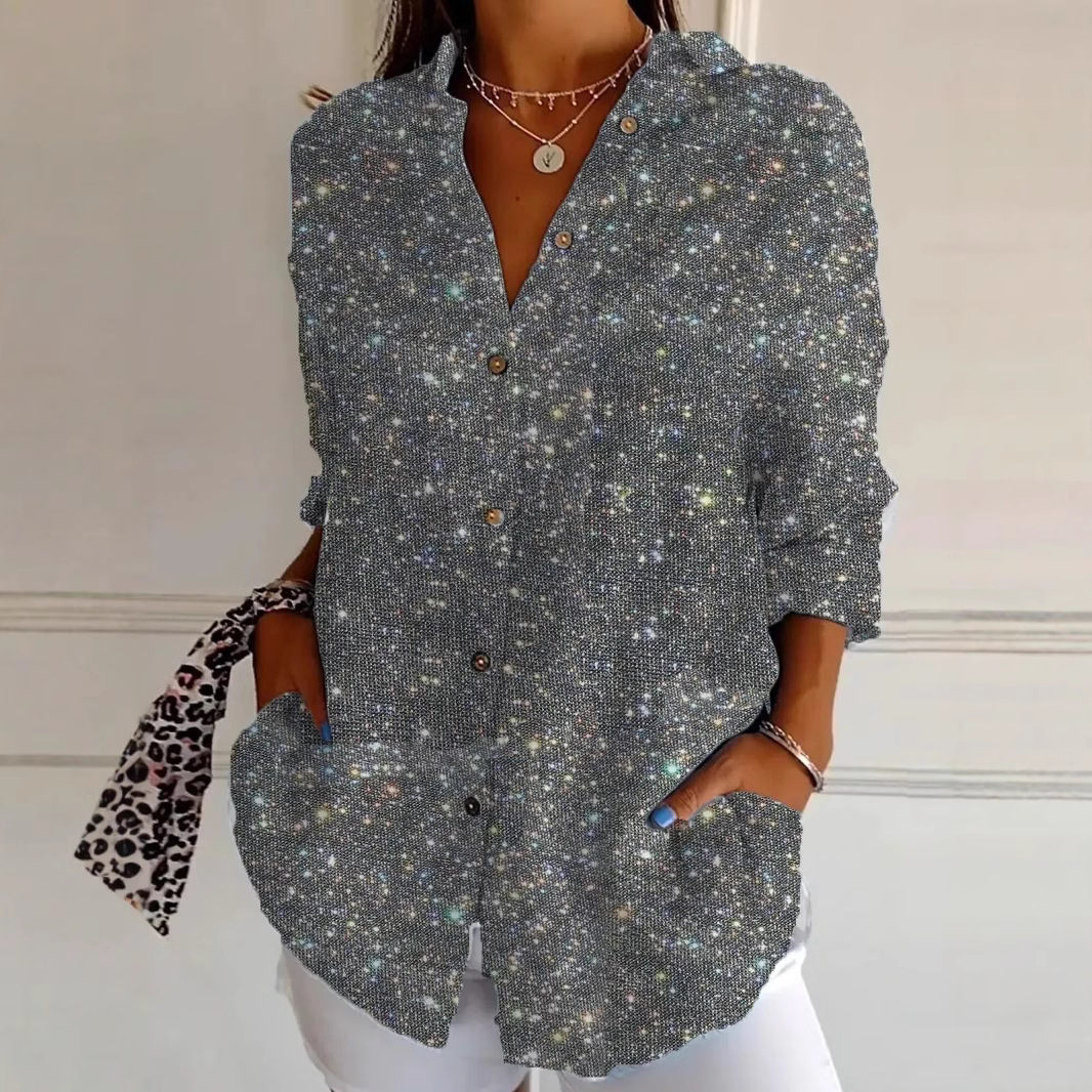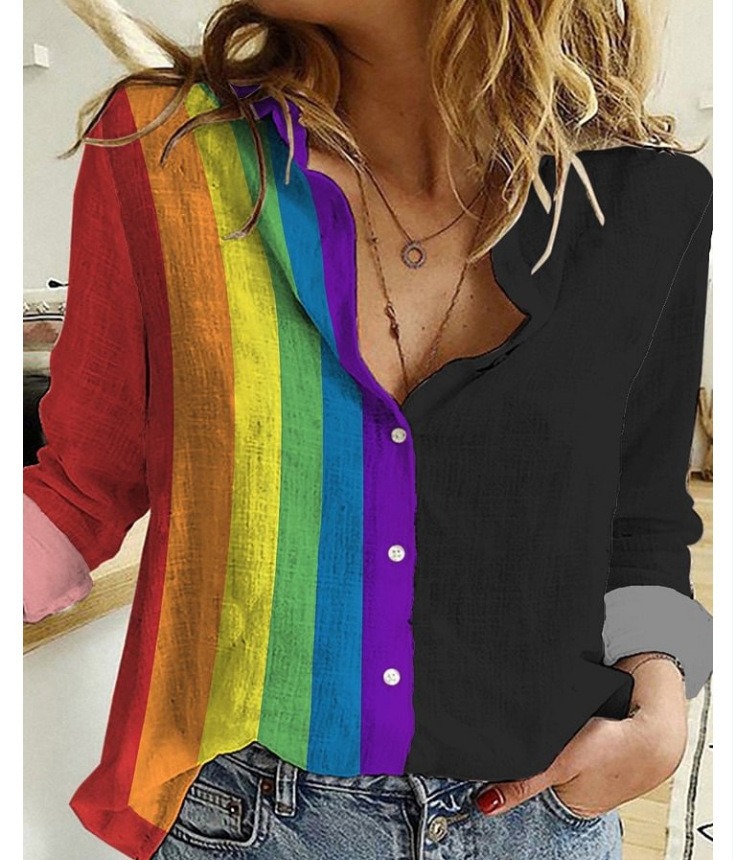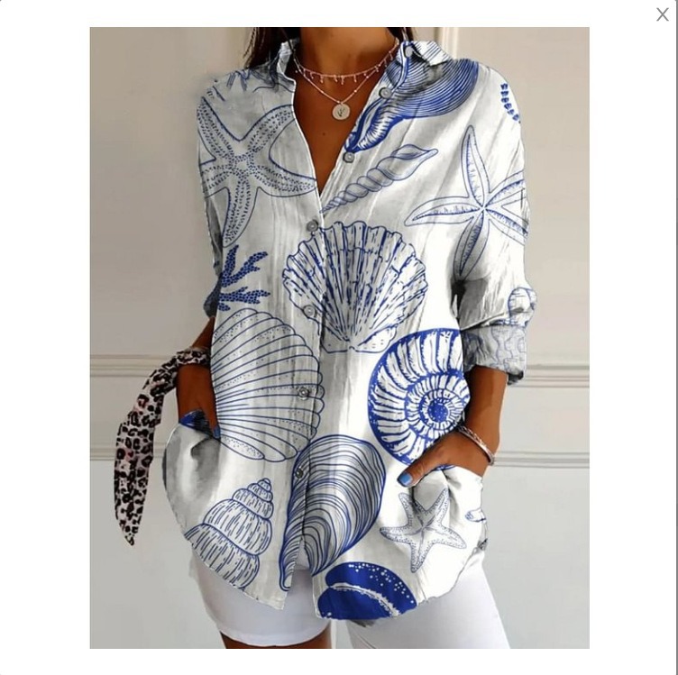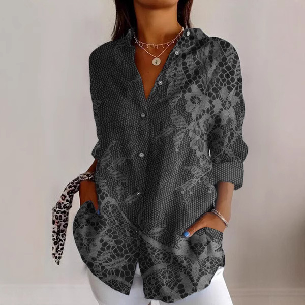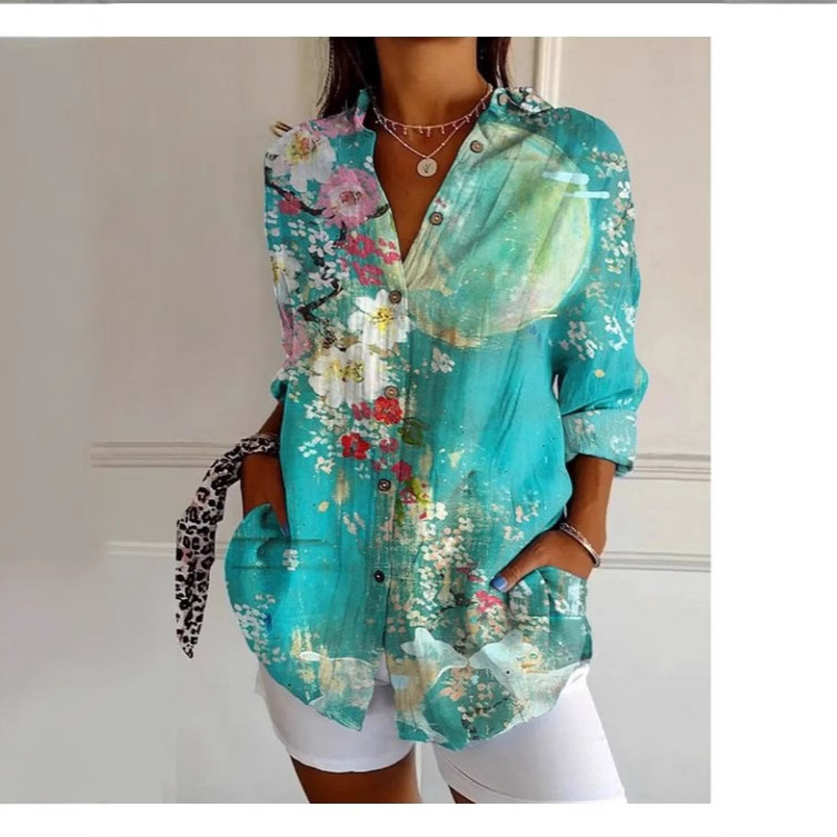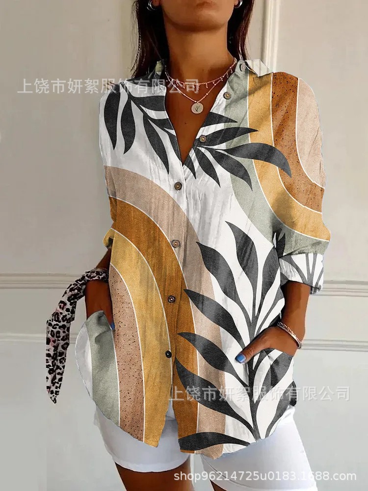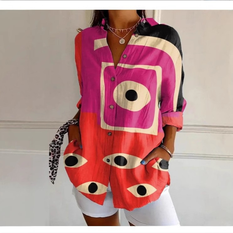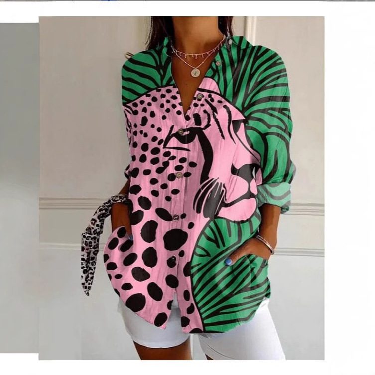 Women's 3D Digital Printing Fashion European And American Style Lapel Long Sleeve Shirt