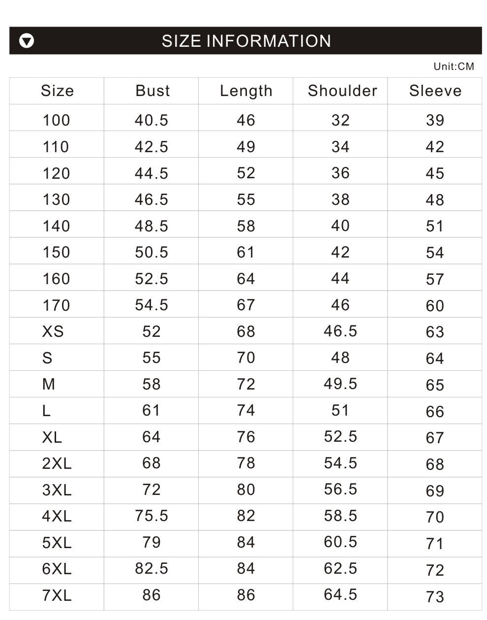 Size: XS, S, M, L, XL, 2XL, 3XL, 4XL, 5XL