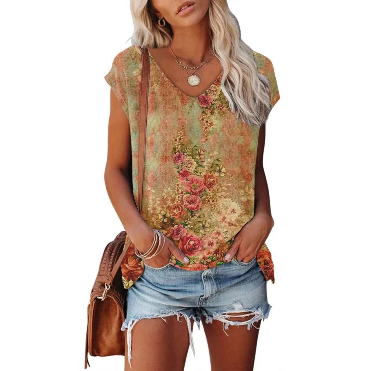 Women's 3D Digital Printing Sleeveless Multi-color Top
