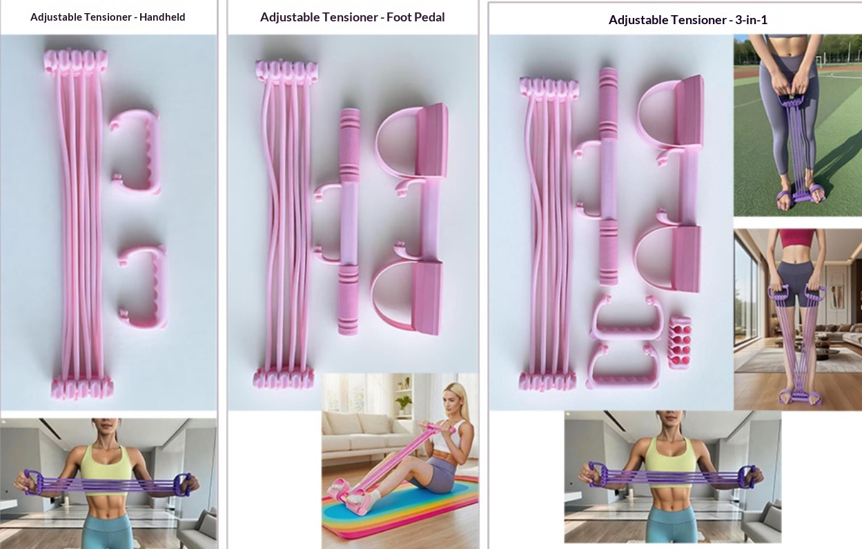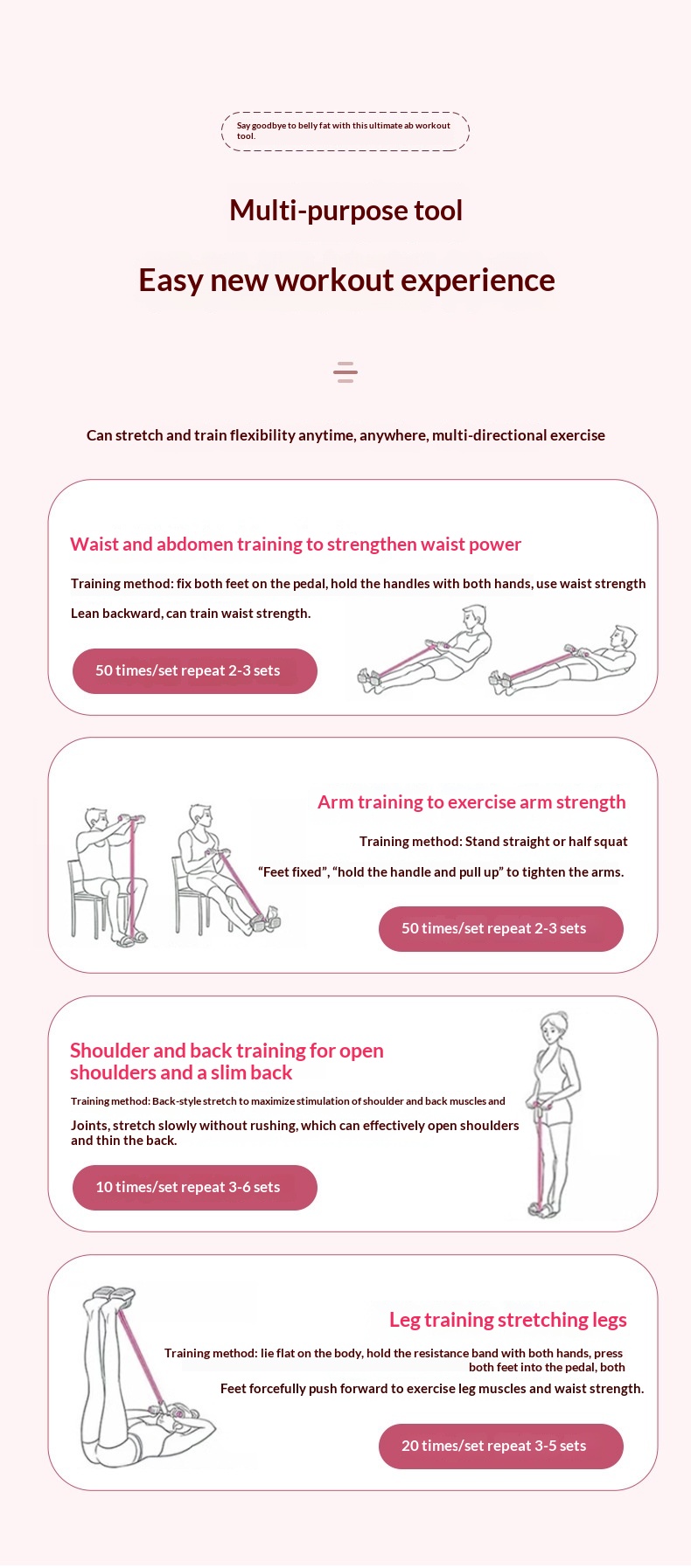 Colors: 8-strand adjustable resistance band—handheld pink, 8-strand adjustable resistance band—handheld purple, 8-strand adjustable resistance band—ankle loop pink, 8-strand adjustable resistance band—ankle loop purple, 8-strand adjustable resistance band—3-in-1 set pink, 8-strand adjustable resistance band—3-in-1 set purple
