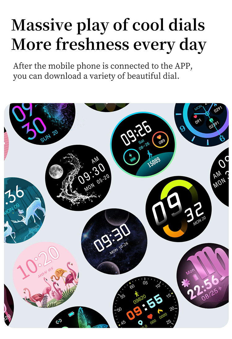 Functions: step counting, heart rate monitoring, smart reminder, remote control selfie, sleep monitoring, and information push