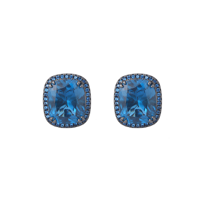 Color: Black Gold blue pointed crystal pendant with chain, black gold Blue pointed crystal ring, black gold Blue pointed crystal stud earrings