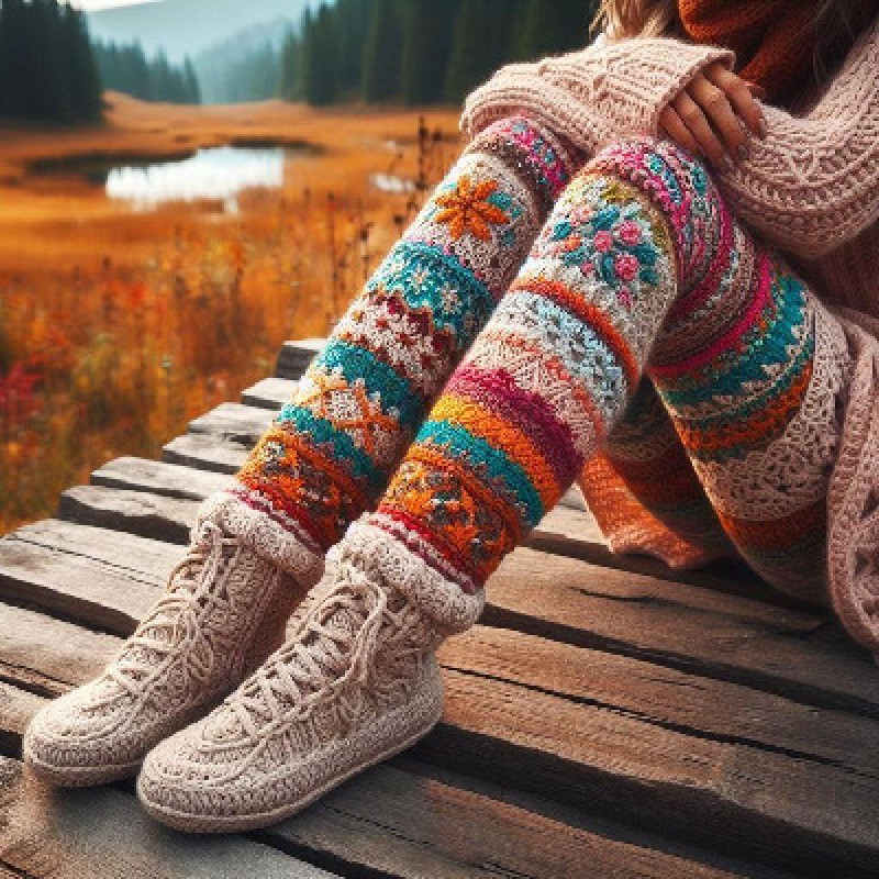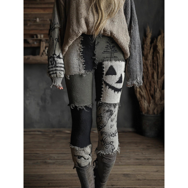 Womens All-Match Fashionable Printed Knitted Leggings