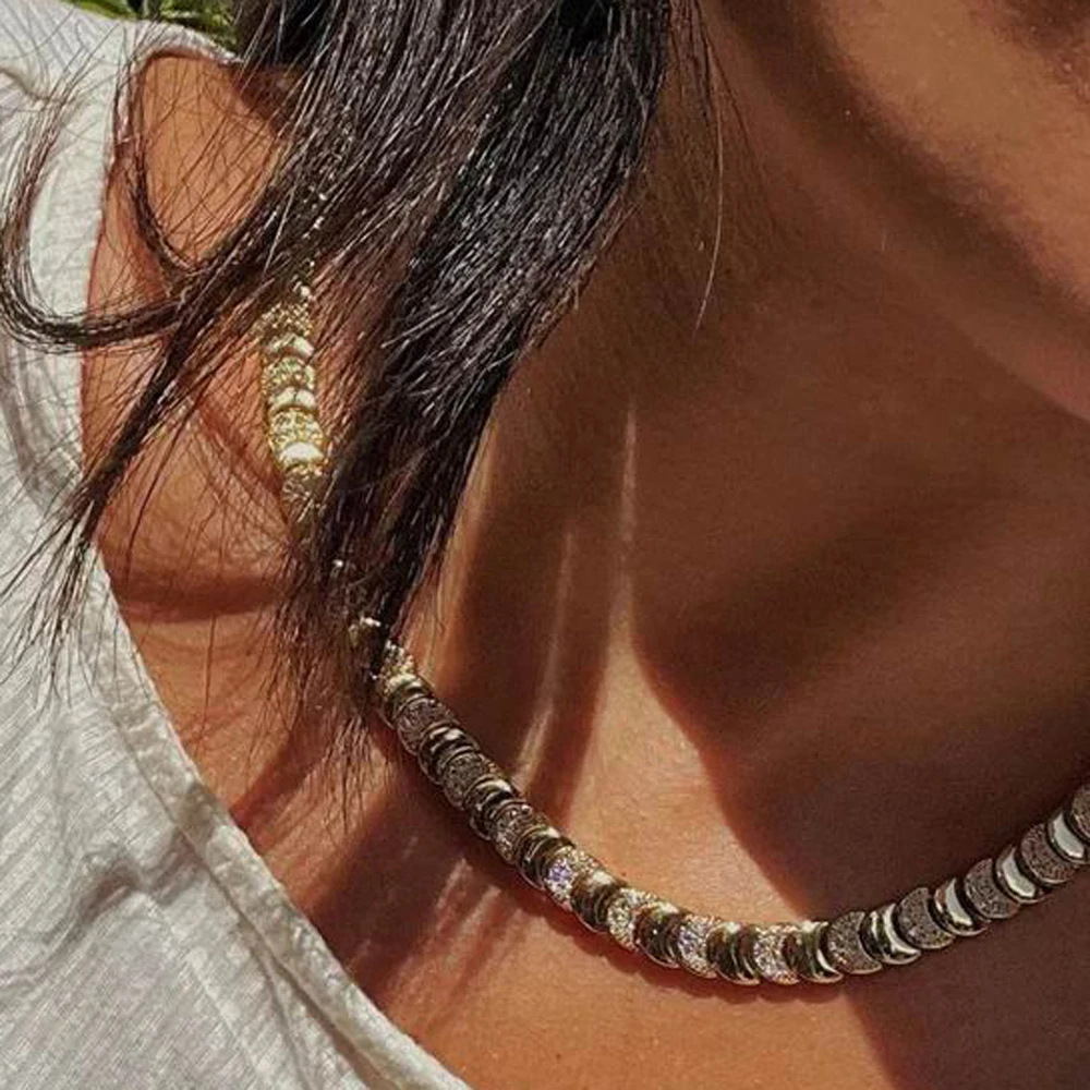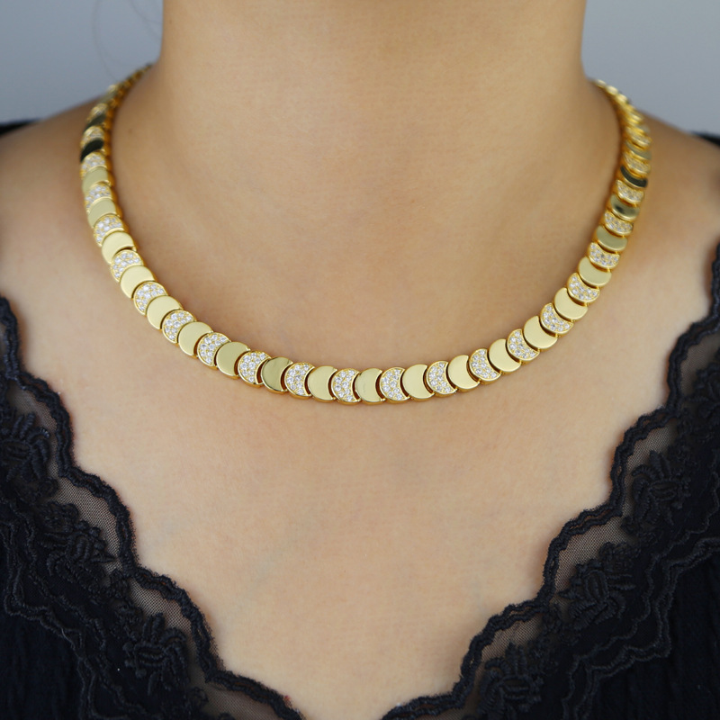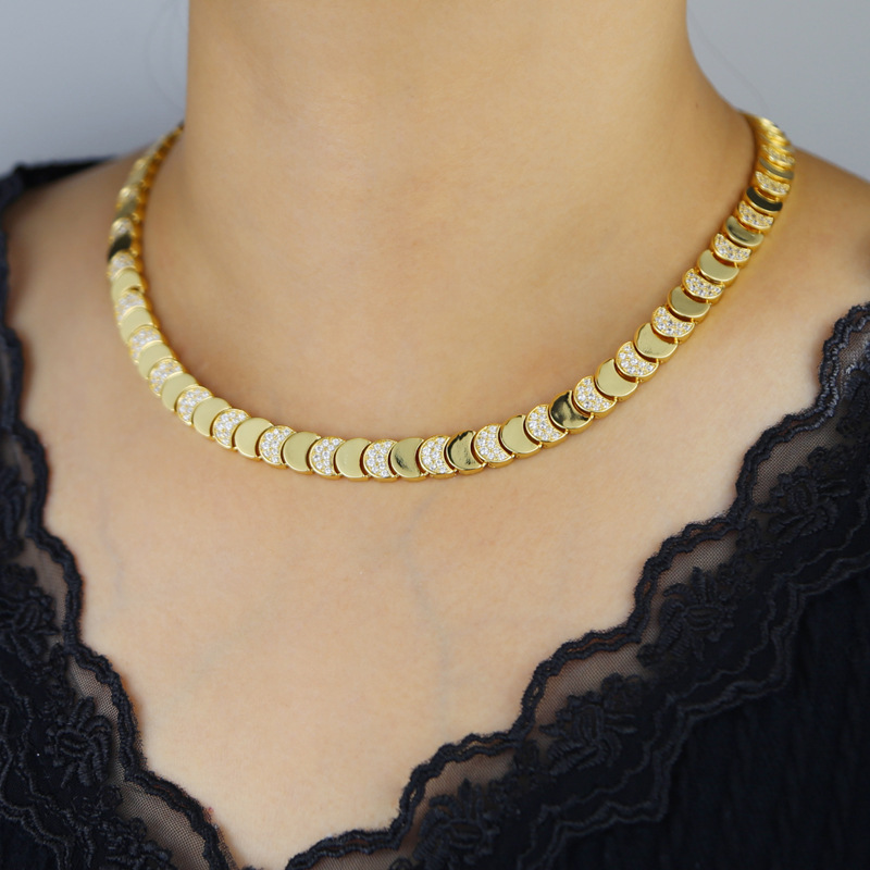 Women's All-match Golden Moon Zircon Fashion Necklace Bracelet