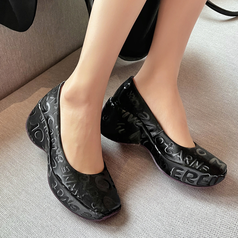 Leather features: printed shoes