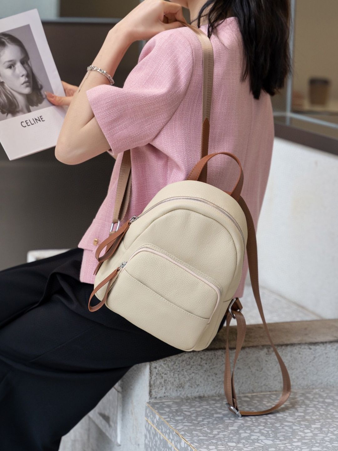 Women's All-match Simple Commute Travel Leather Backpack