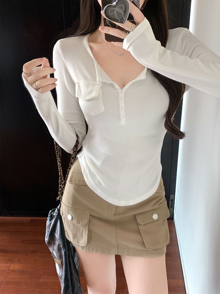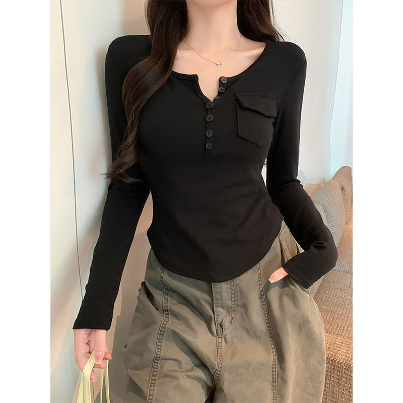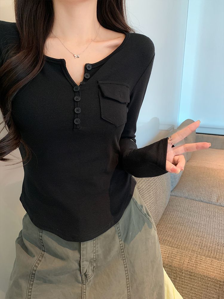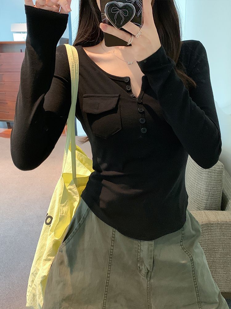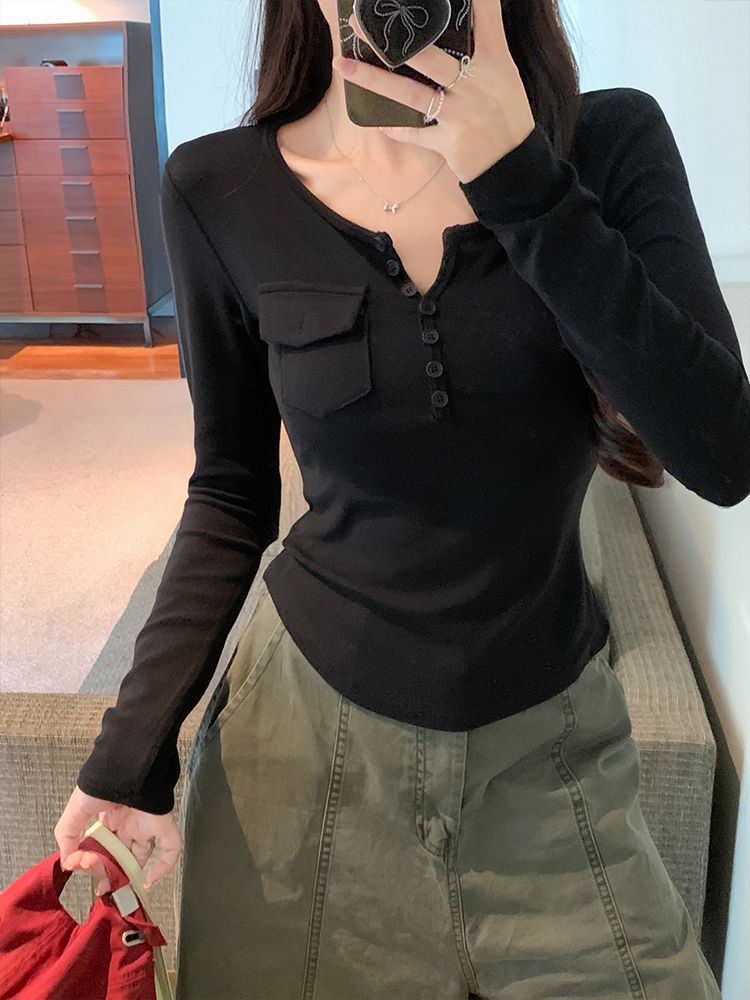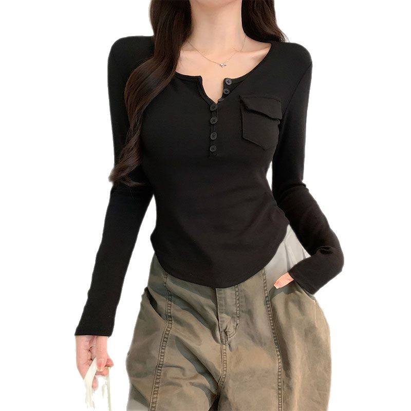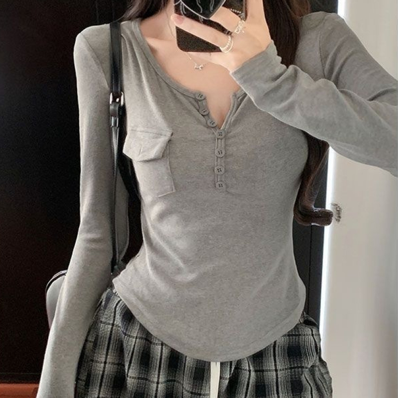 Womens Allure-Driven Slimming Fashionable Long-Sleeve Top With Buttons