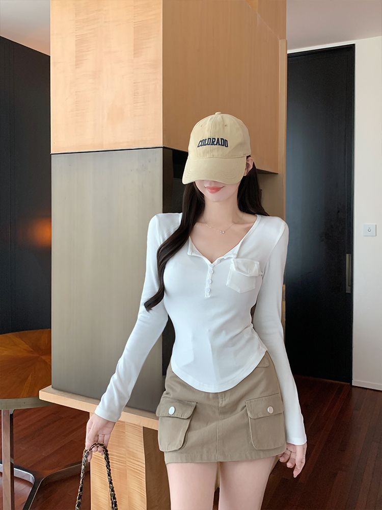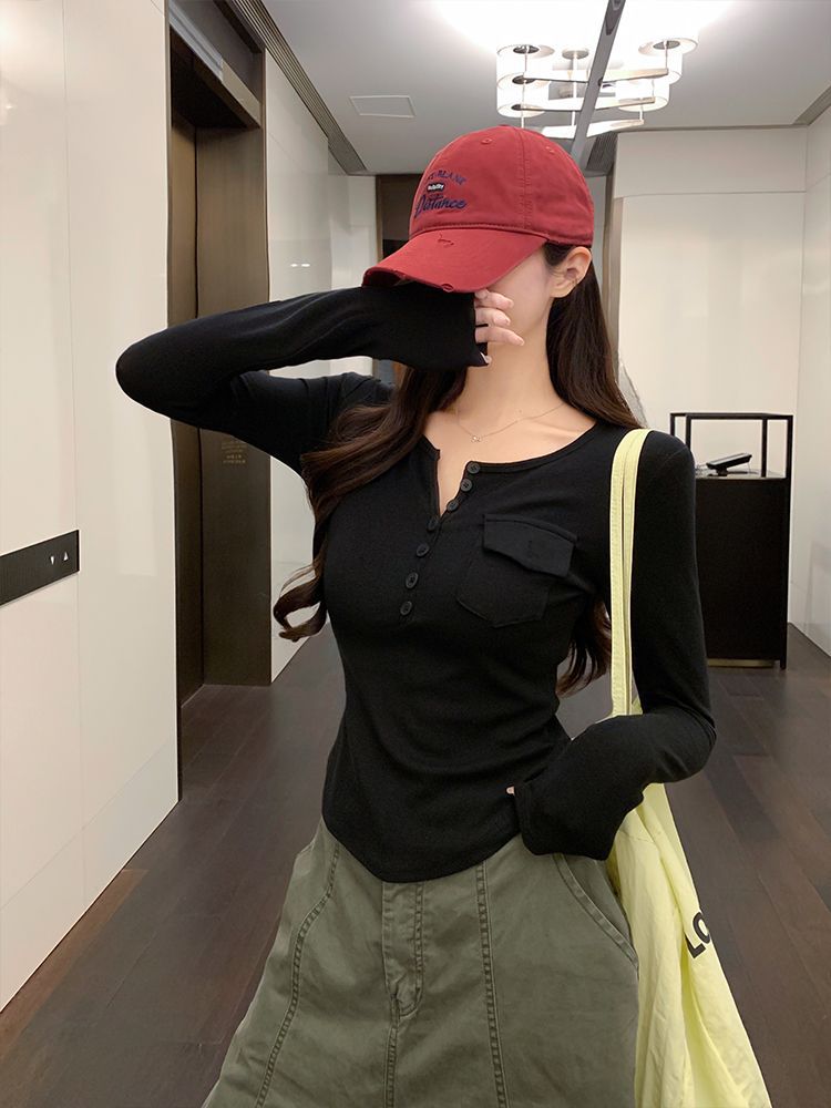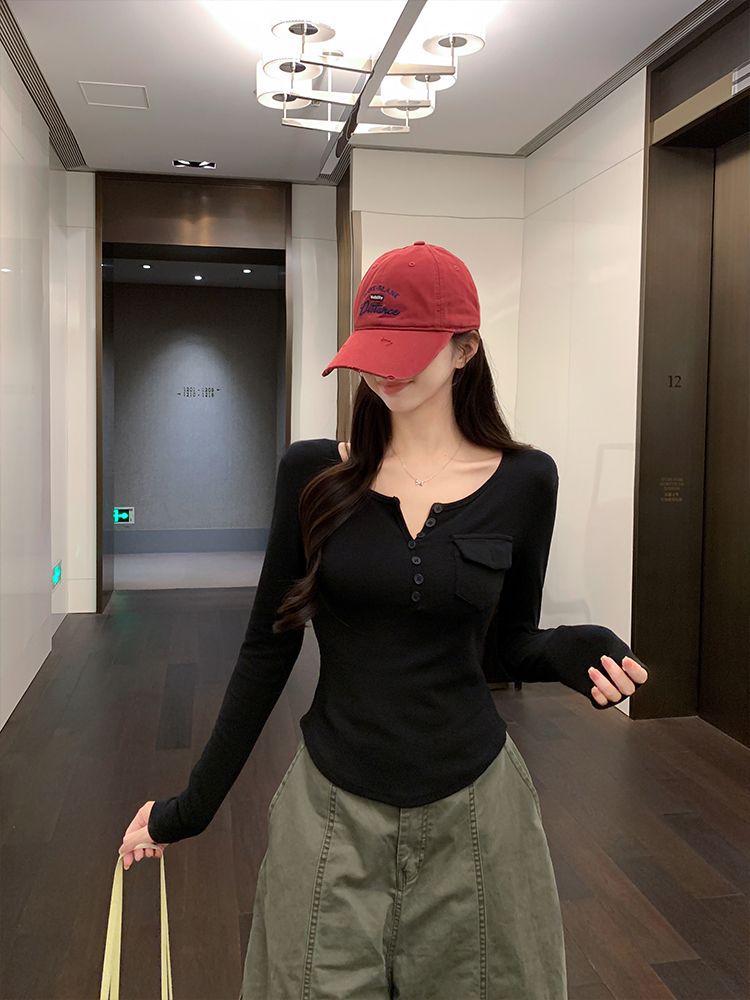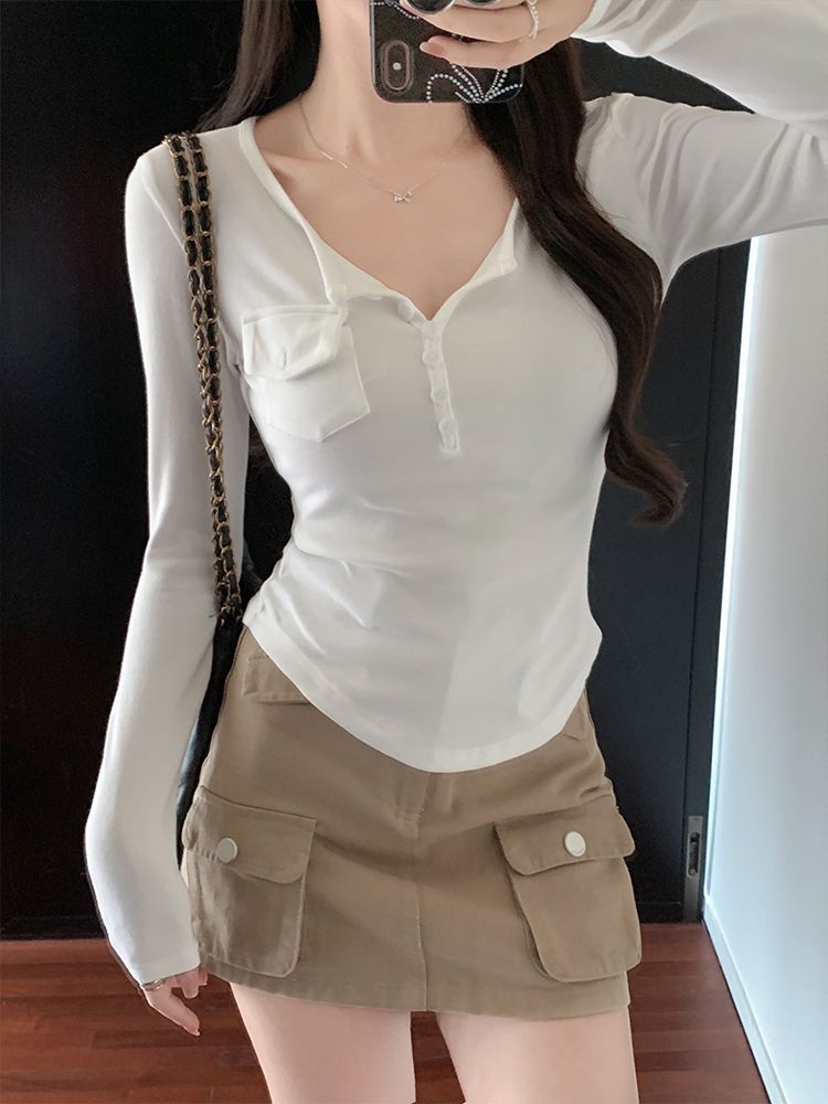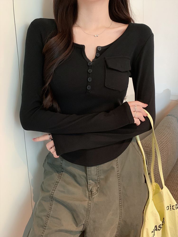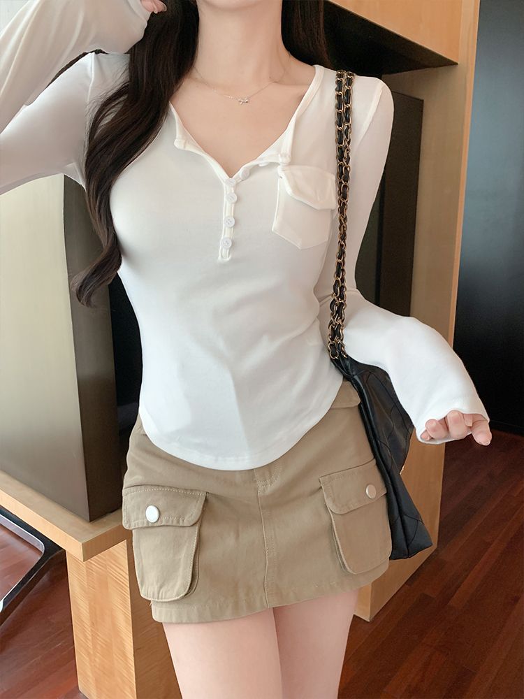 Womens Allure-Driven Slimming Fashionable Long-Sleeve Top With Buttons