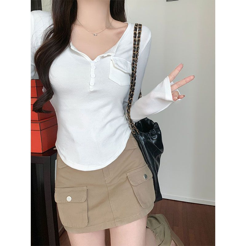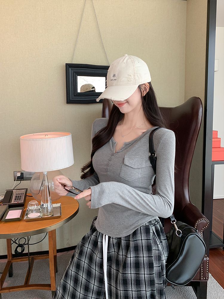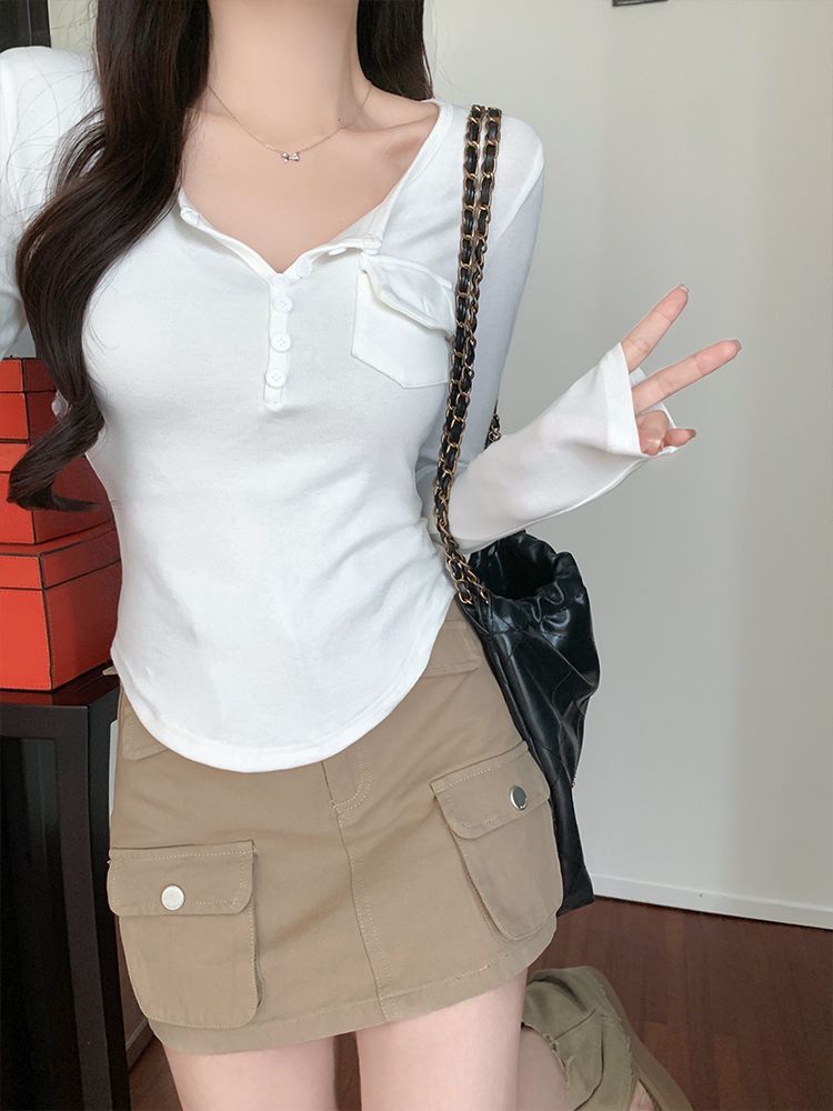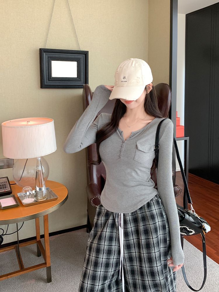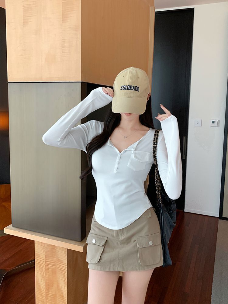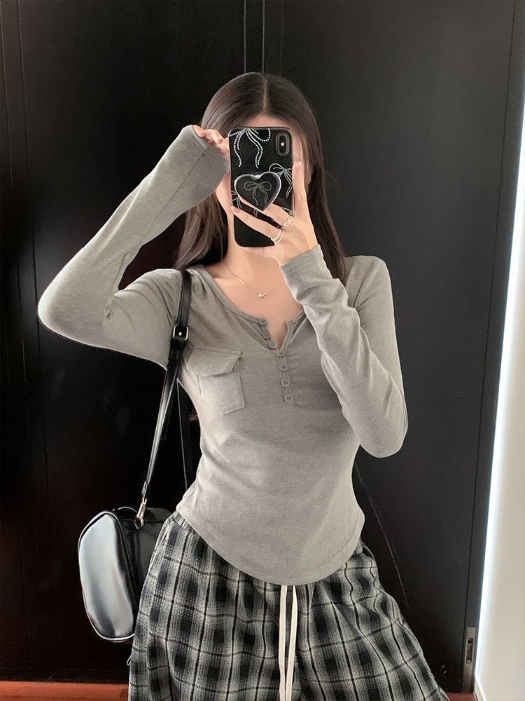 Womens Allure-Driven Slimming Fashionable Long-Sleeve Top With Buttons