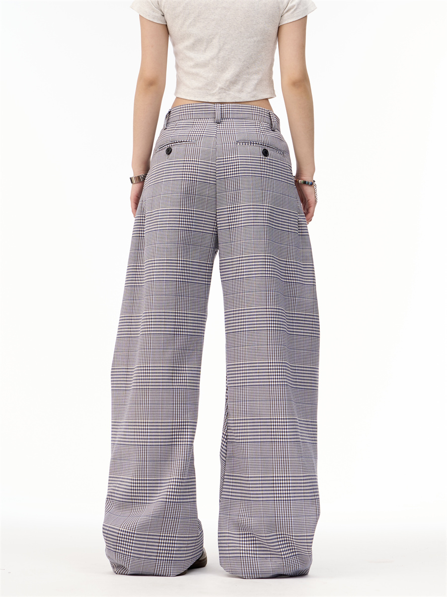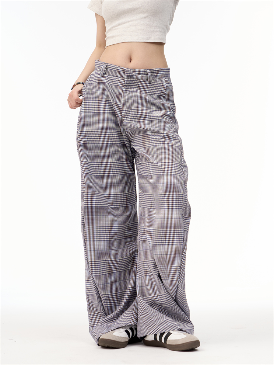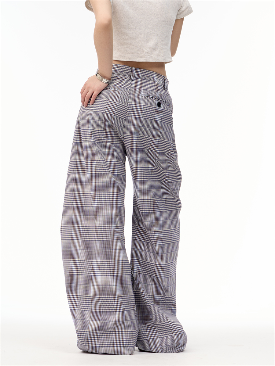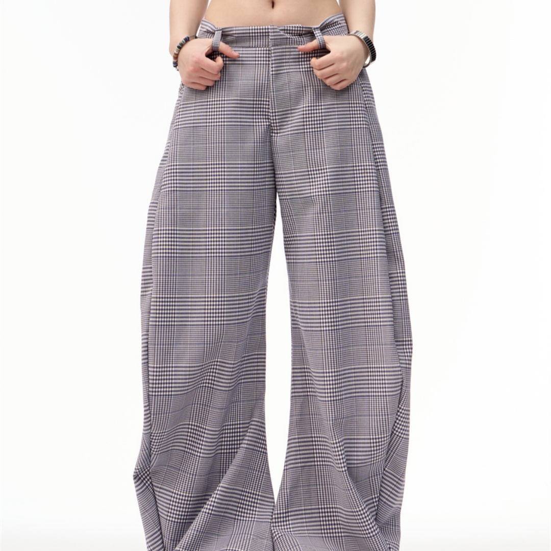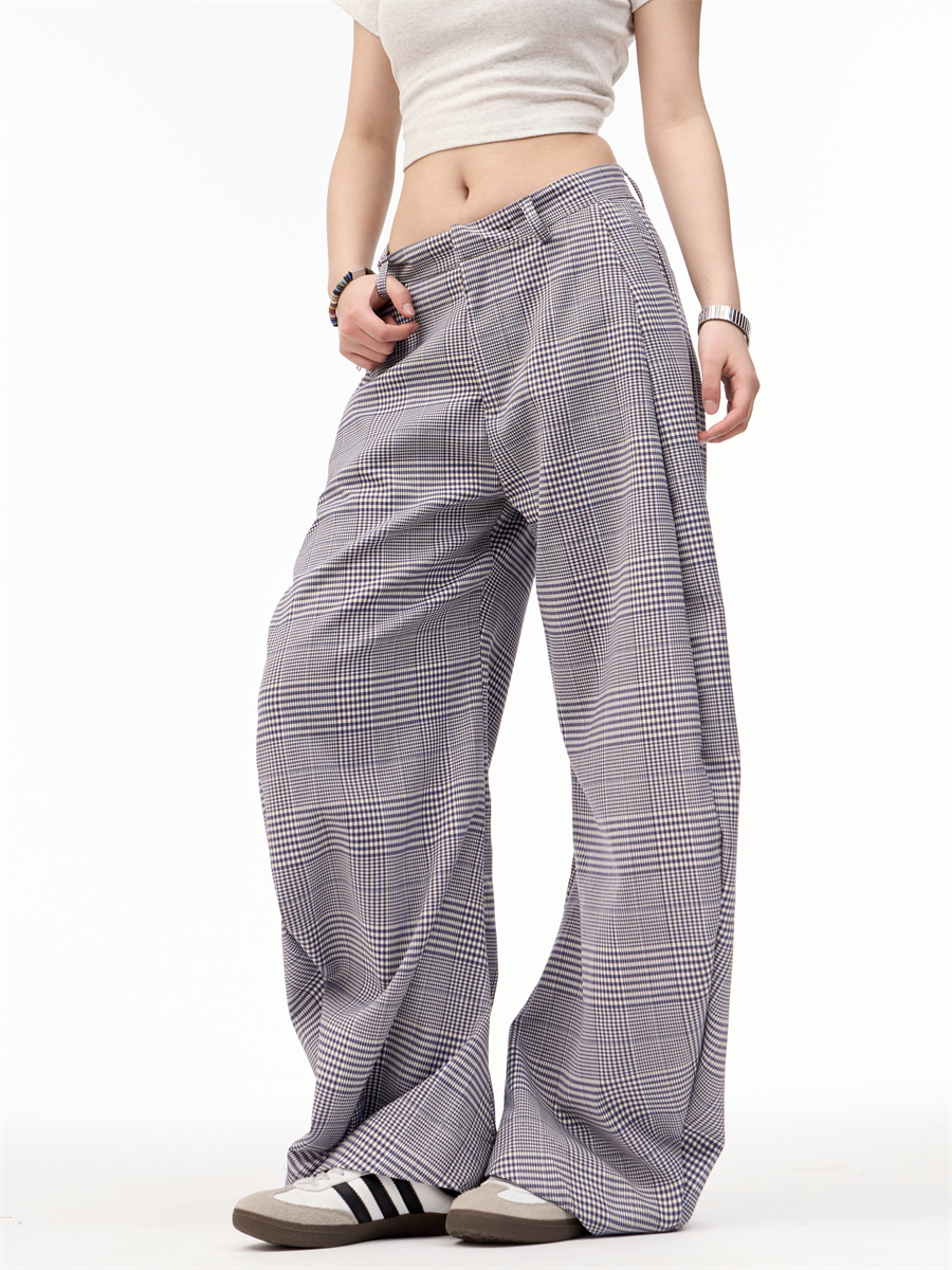 Women's American Retro Plaid Patchwork Wide Leg Pants