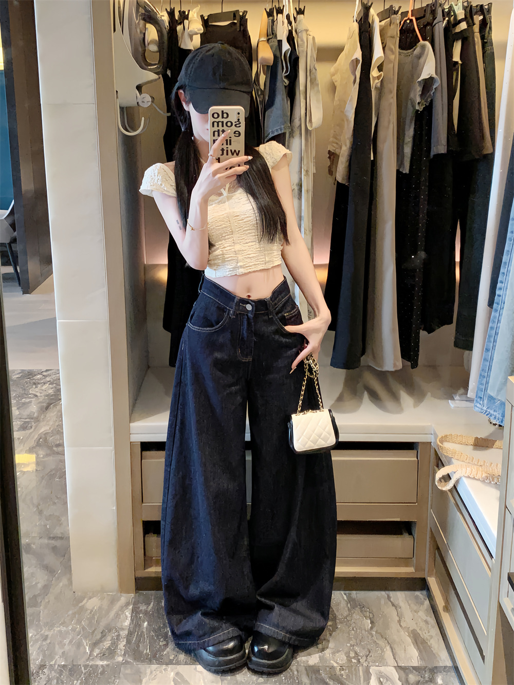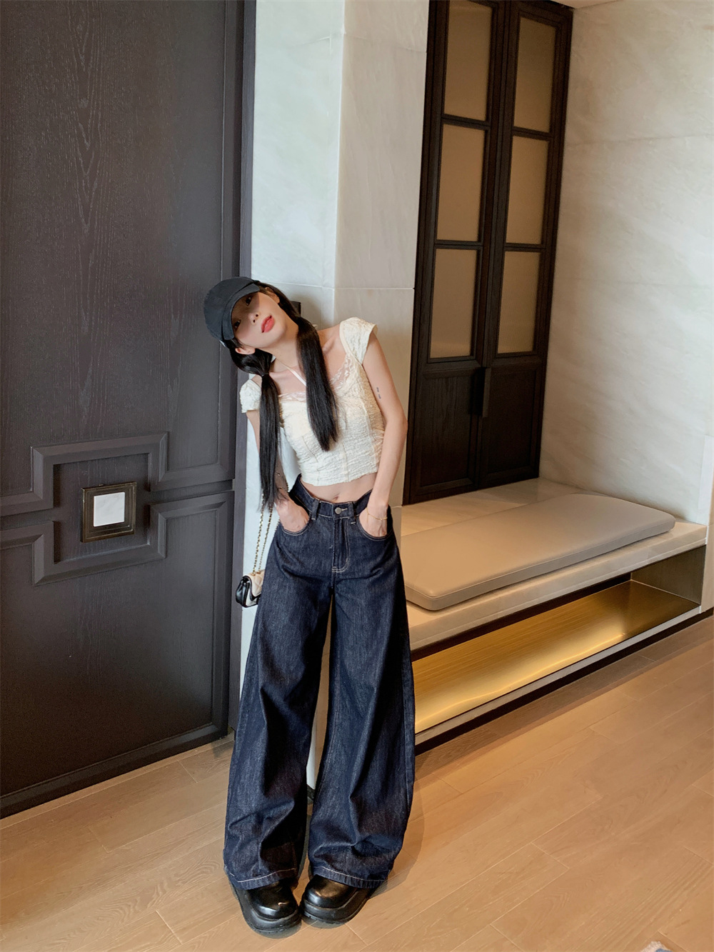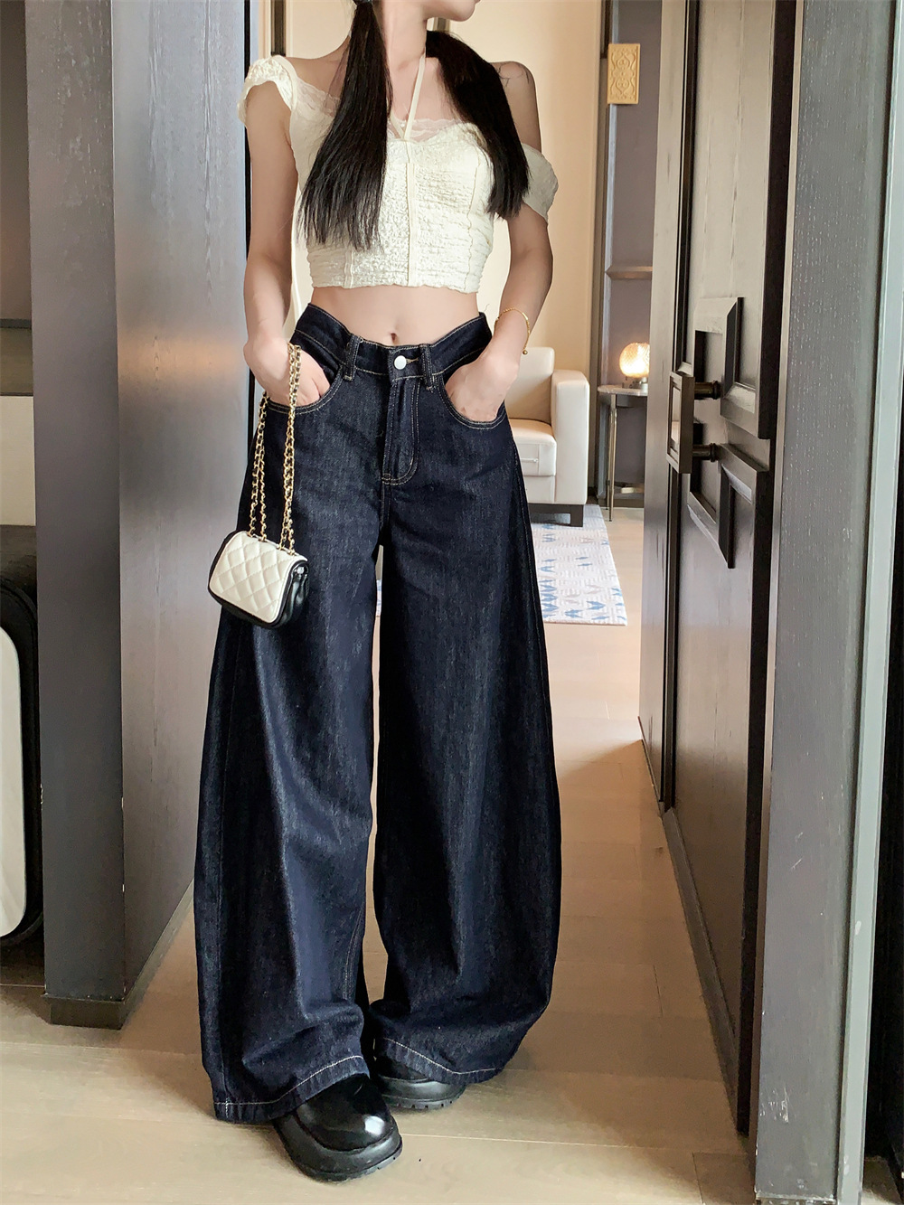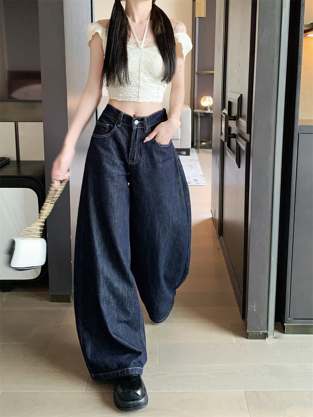 Women's American-style High Street Jeans Wide-leg Pants