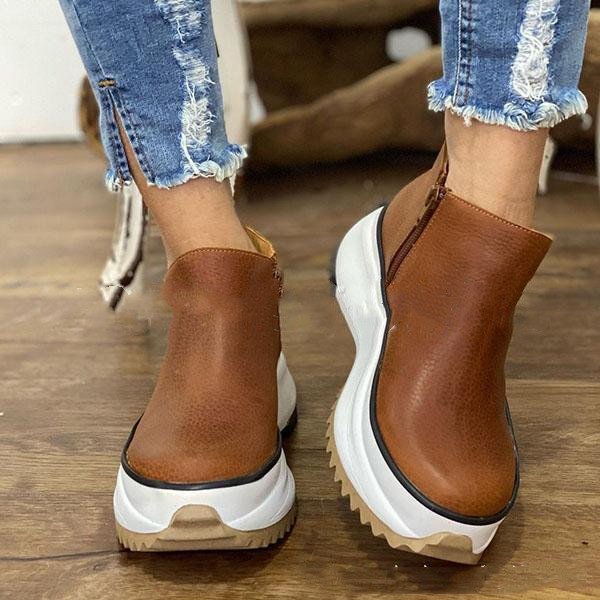 Women's Ankle Boots Platform Round Toe Non-slip Thick Soled Side Zipper Warm Shoes For Autumn And Winter